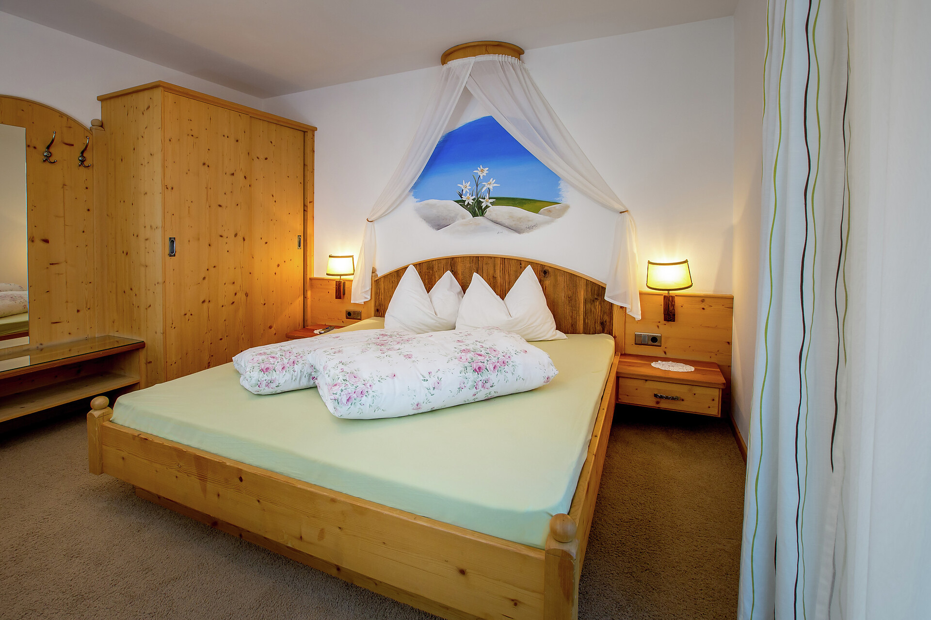 "Edelweiß" (19 sqm 2-3 sleeps) is a double room with a conversation pit. It offers a compound of antique spruce and walnut furniture. The large balcony invites you to stay and to enjoy the wonderful mountain landscape.