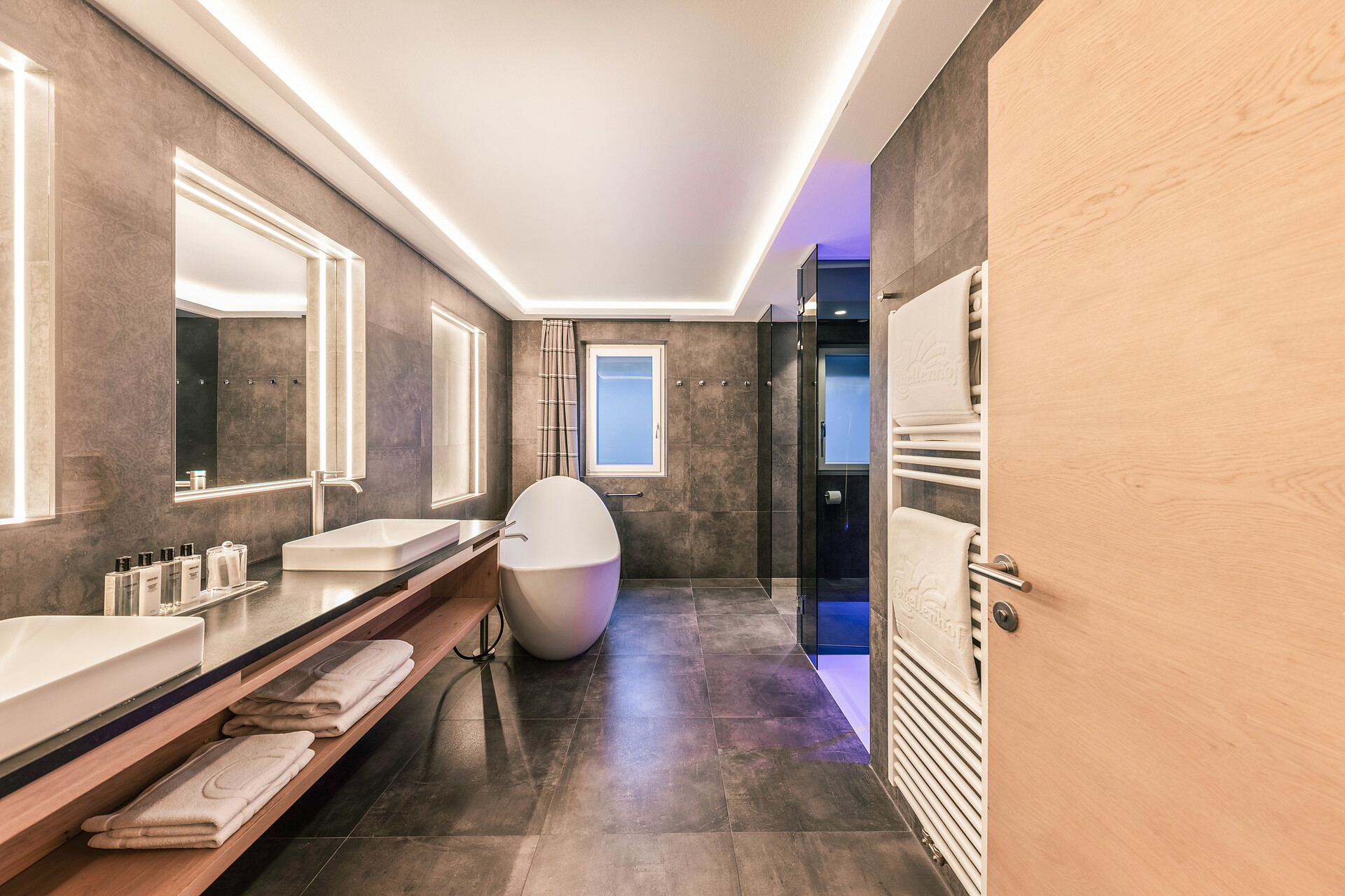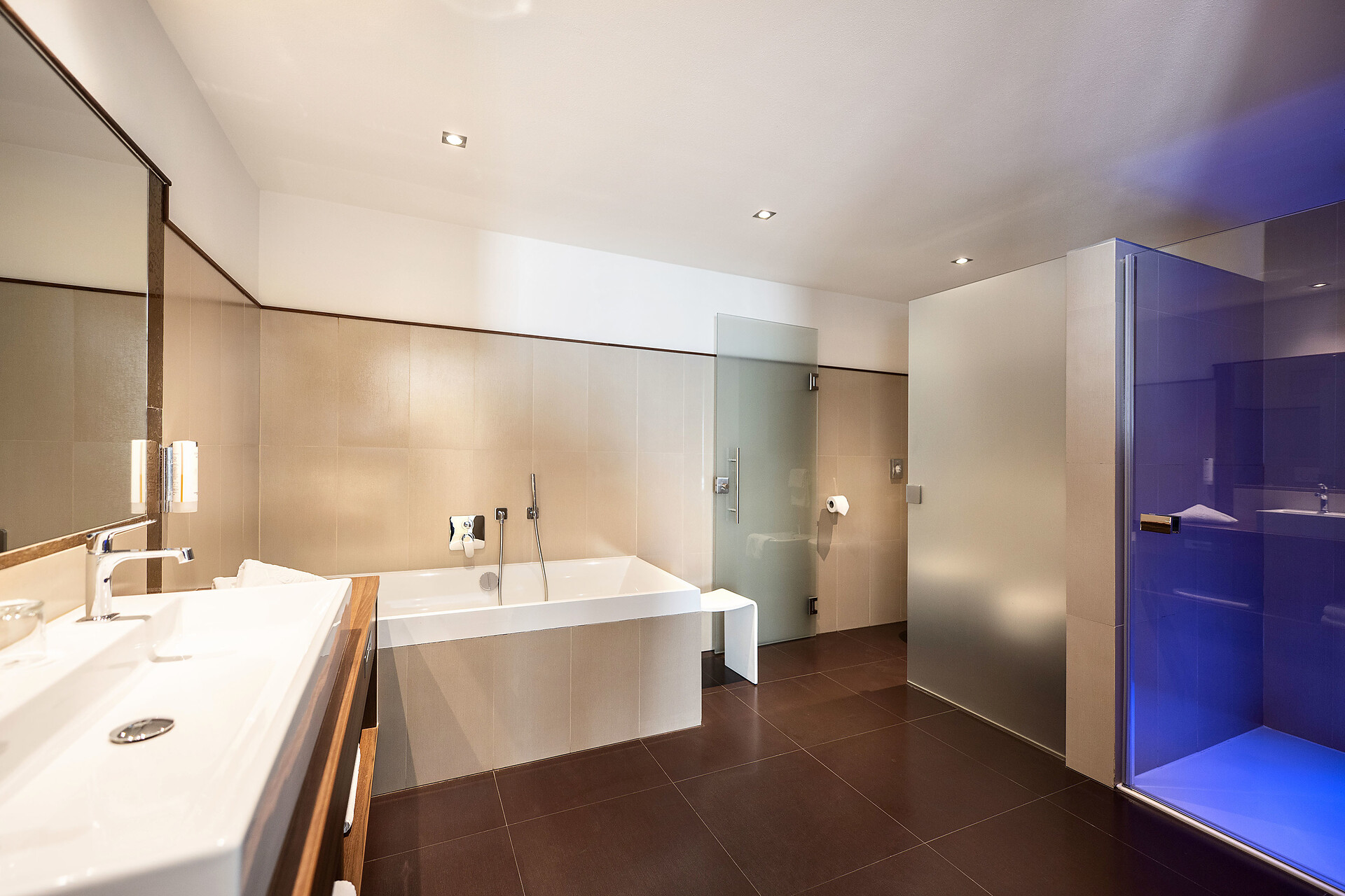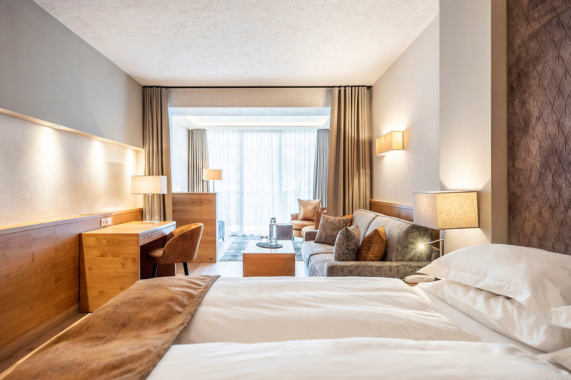 Including gourmet half board, 10,500 m² of wellness & spa, a diverse sports program, and all Quellenhof inclusive services.