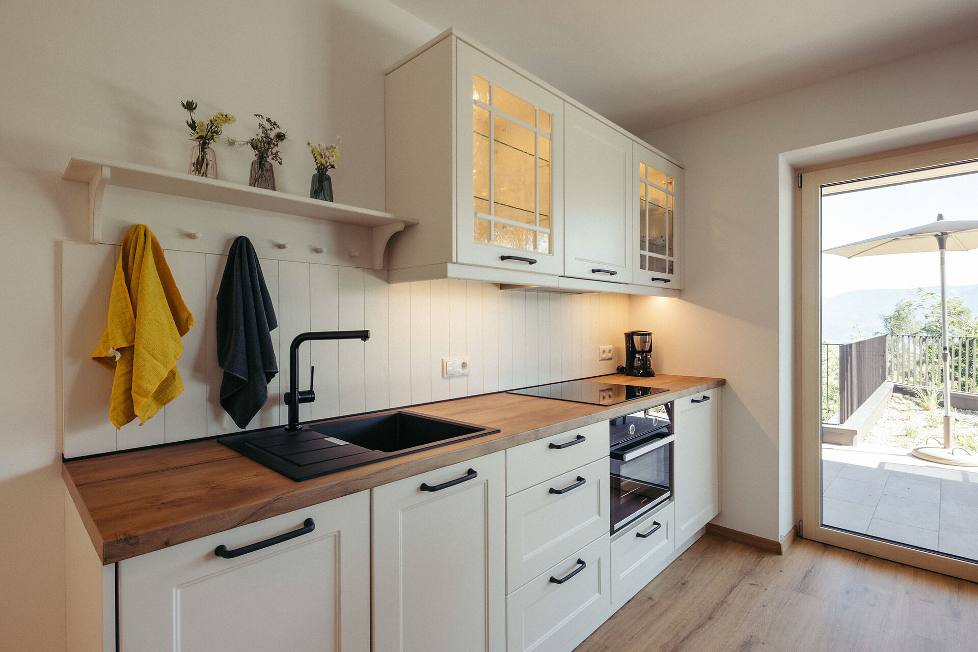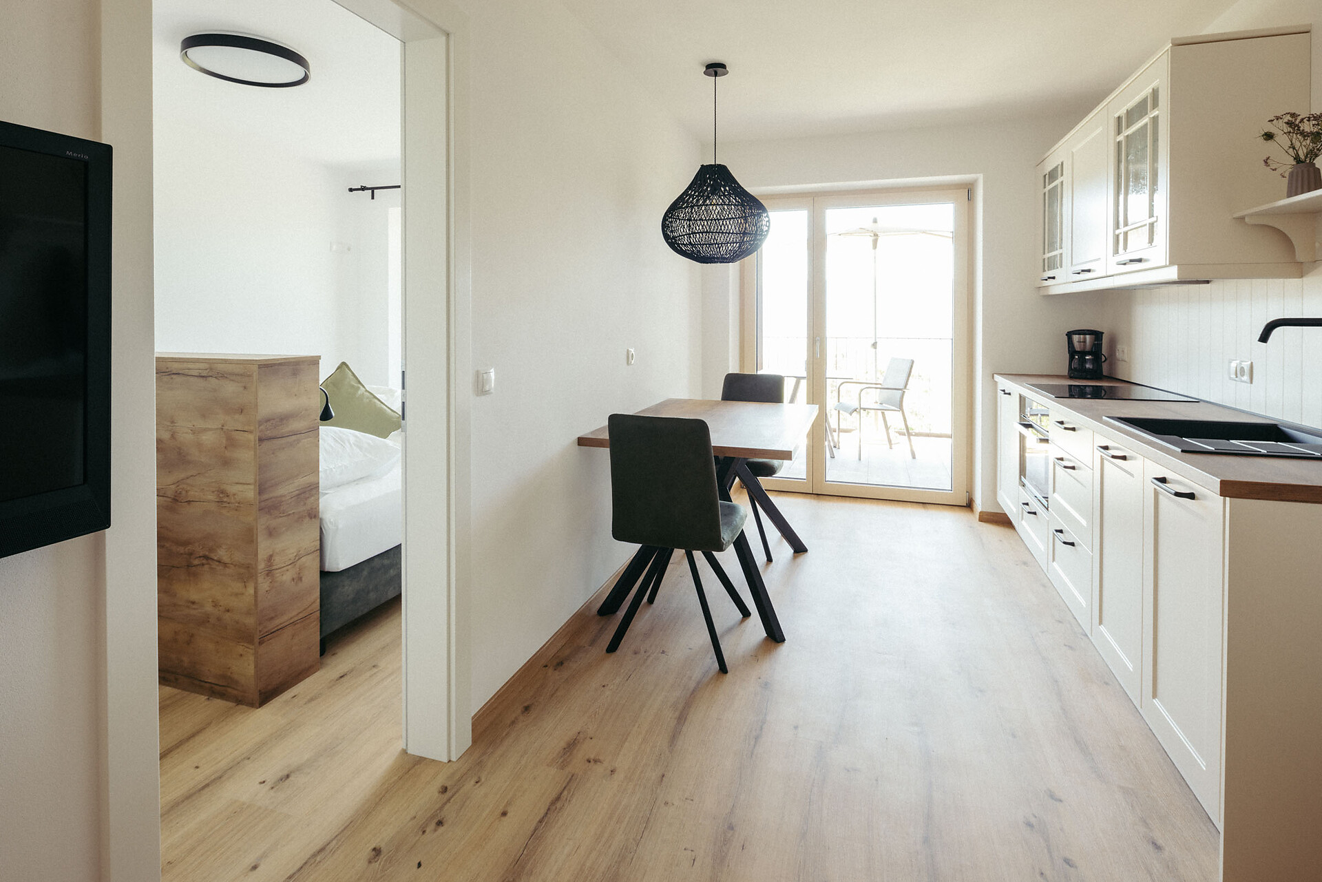 A terrace, accessible from the kitchen-living area, awaits you with a table and chairs where you can enjoy the wonderful morning sun.