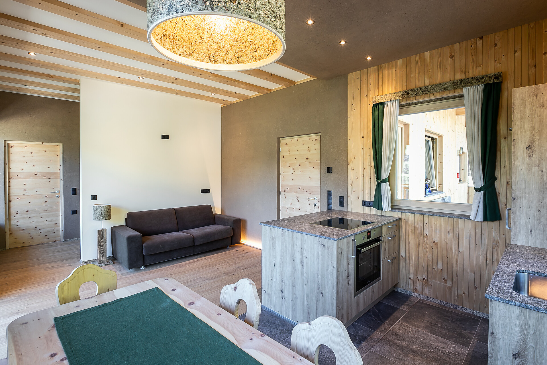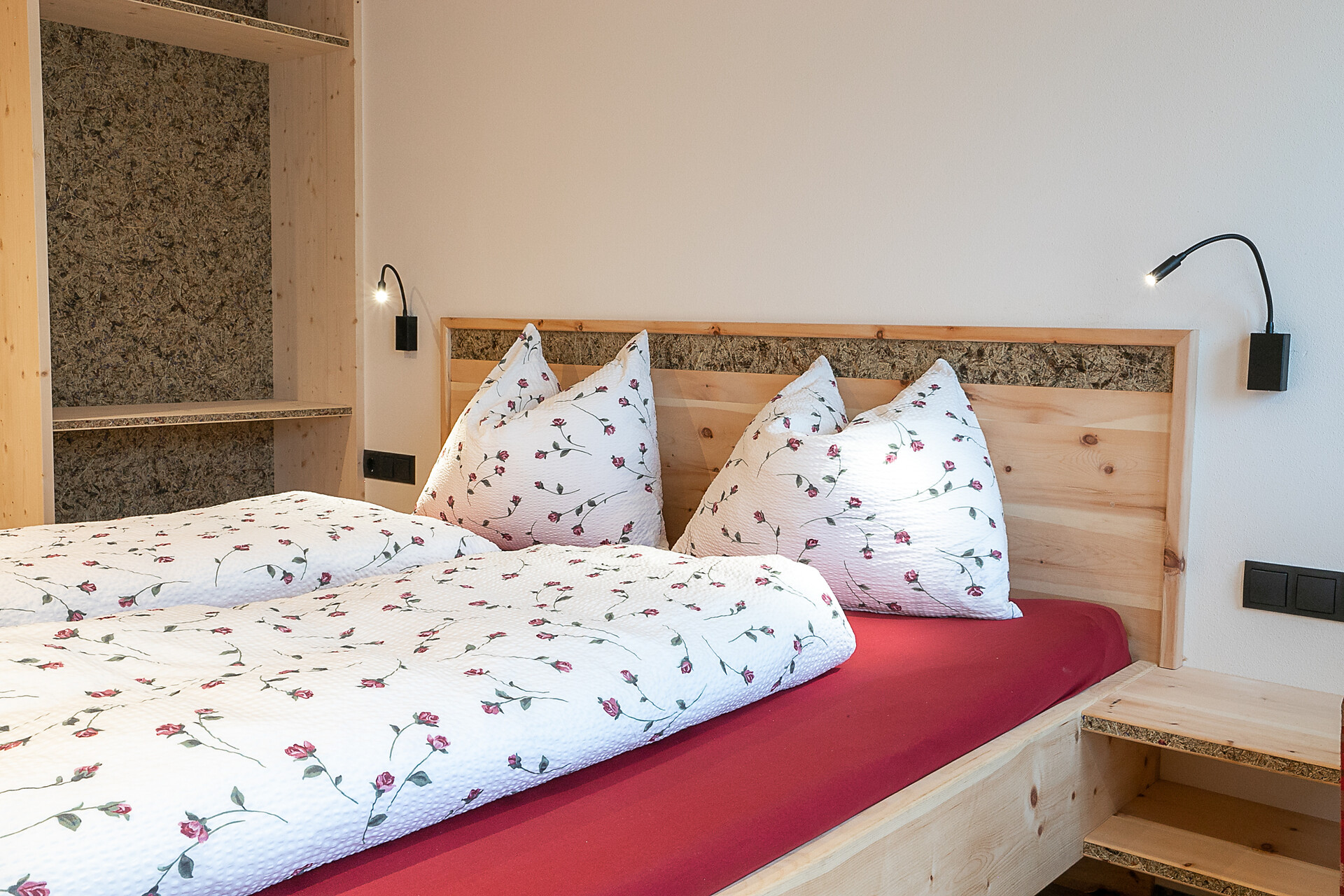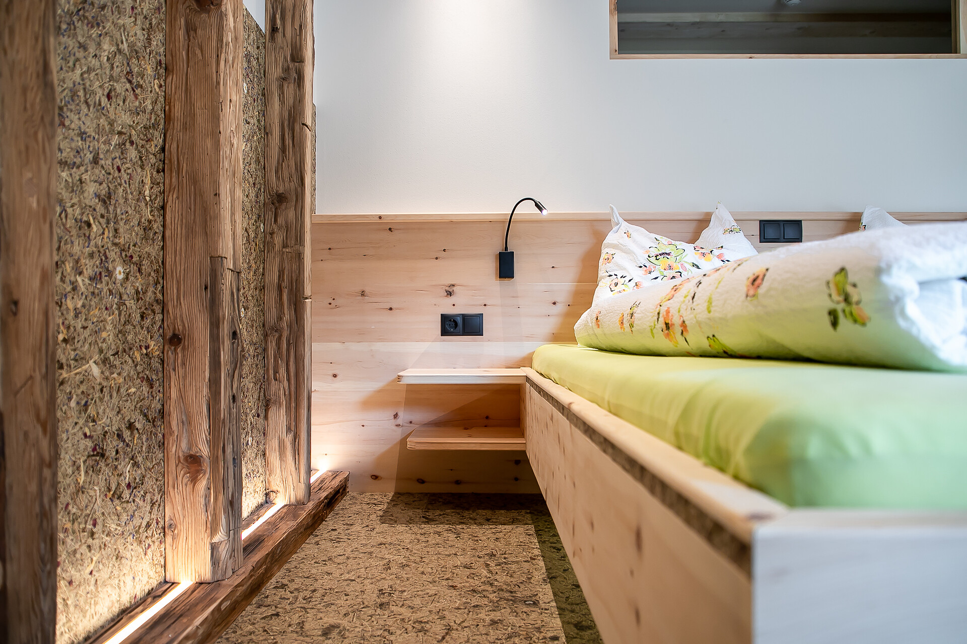 Our holiday apartments are furnished with great attention to detail. Natural materials such as wood, clay, stone and many "hay lights" from our organic South Tyrolean mountain meadow hay radiate a pleasant living environment. Let yourself be surprised which "hay lights" can be found in our new holiday apartments!