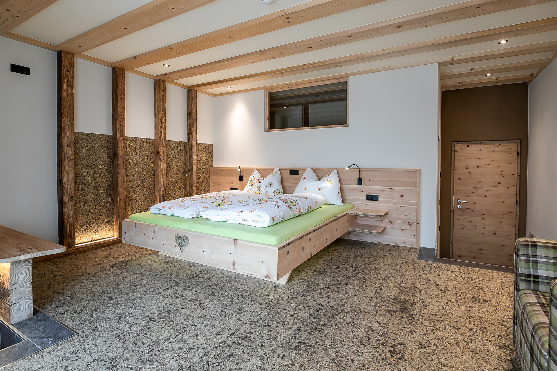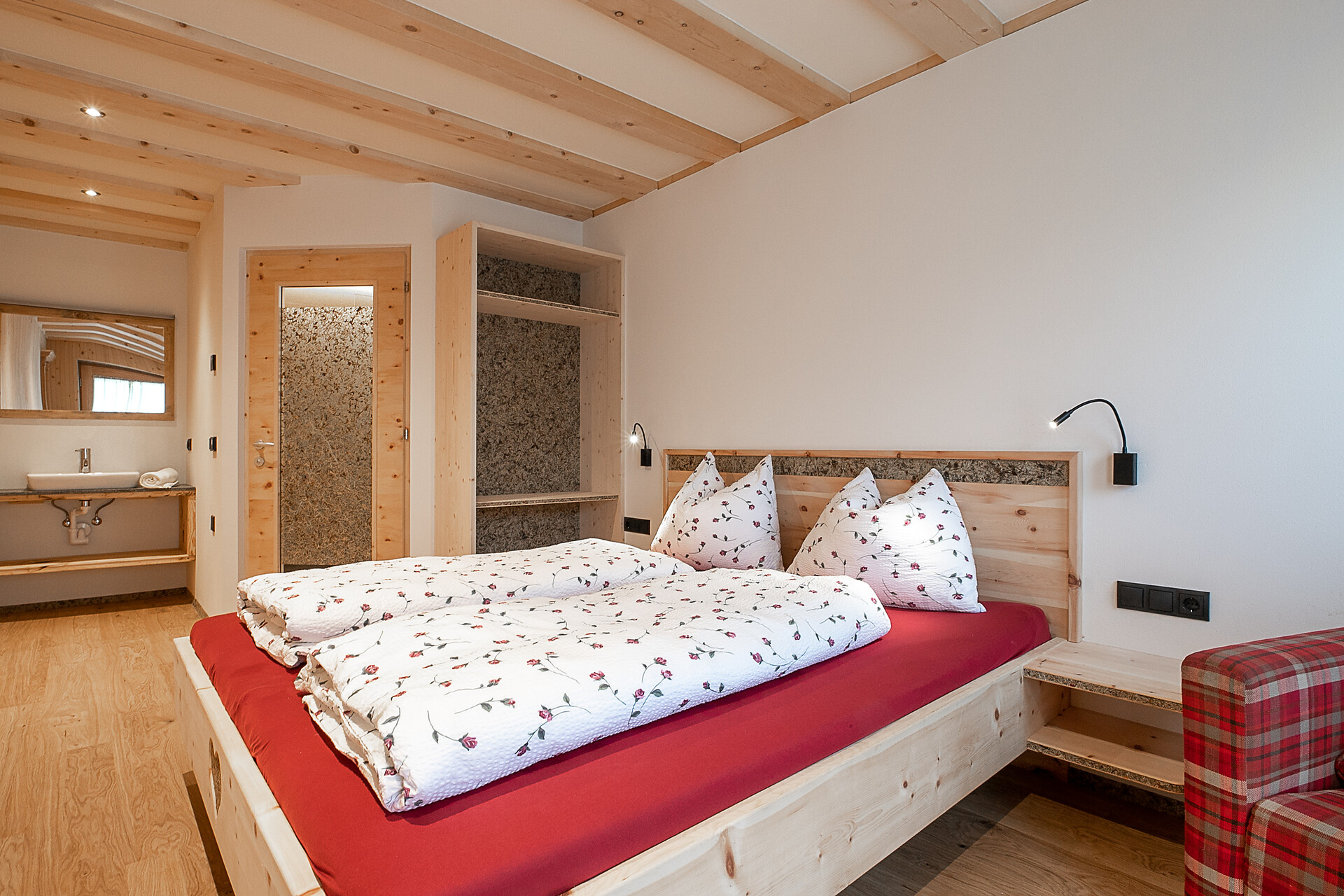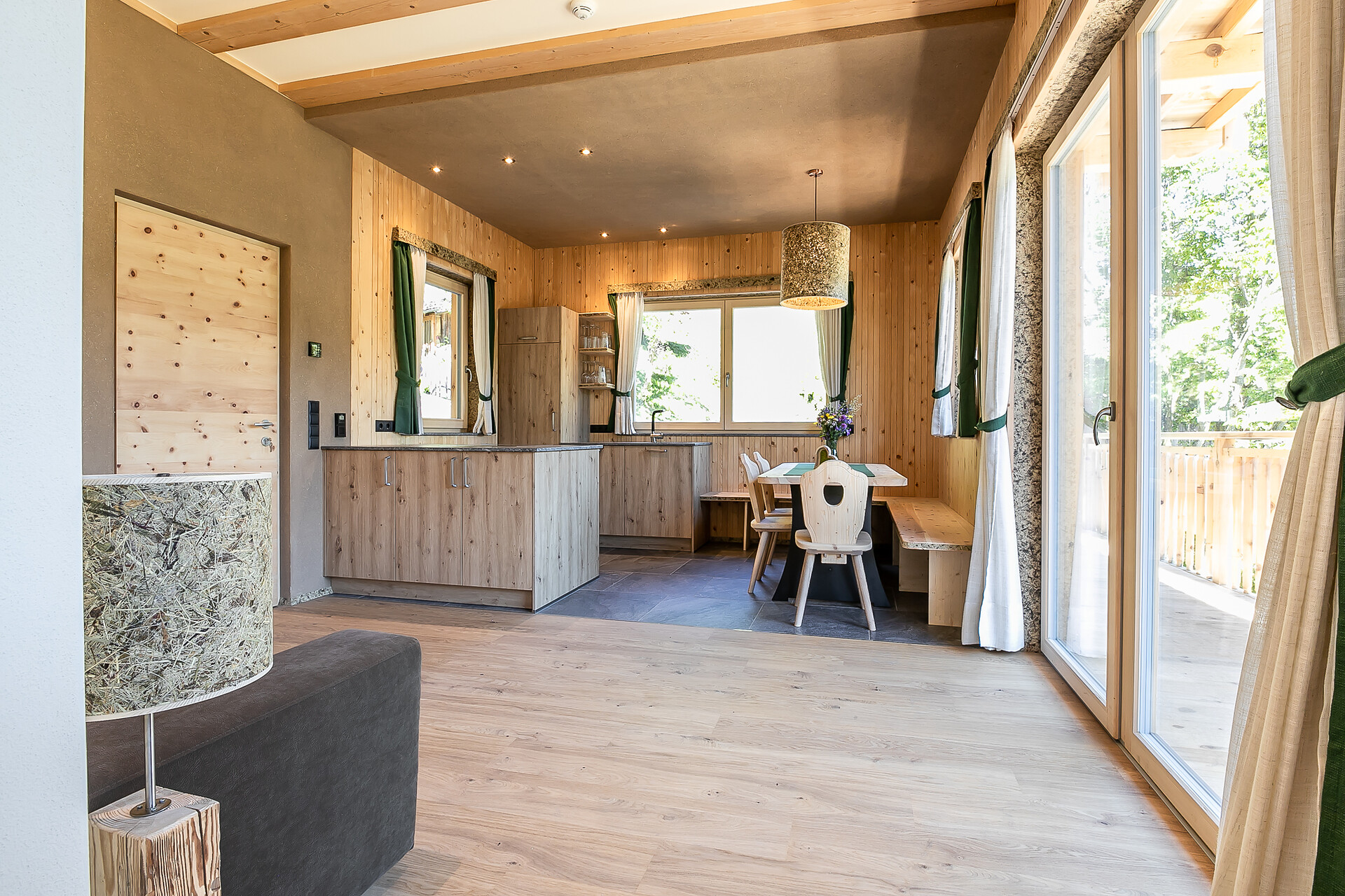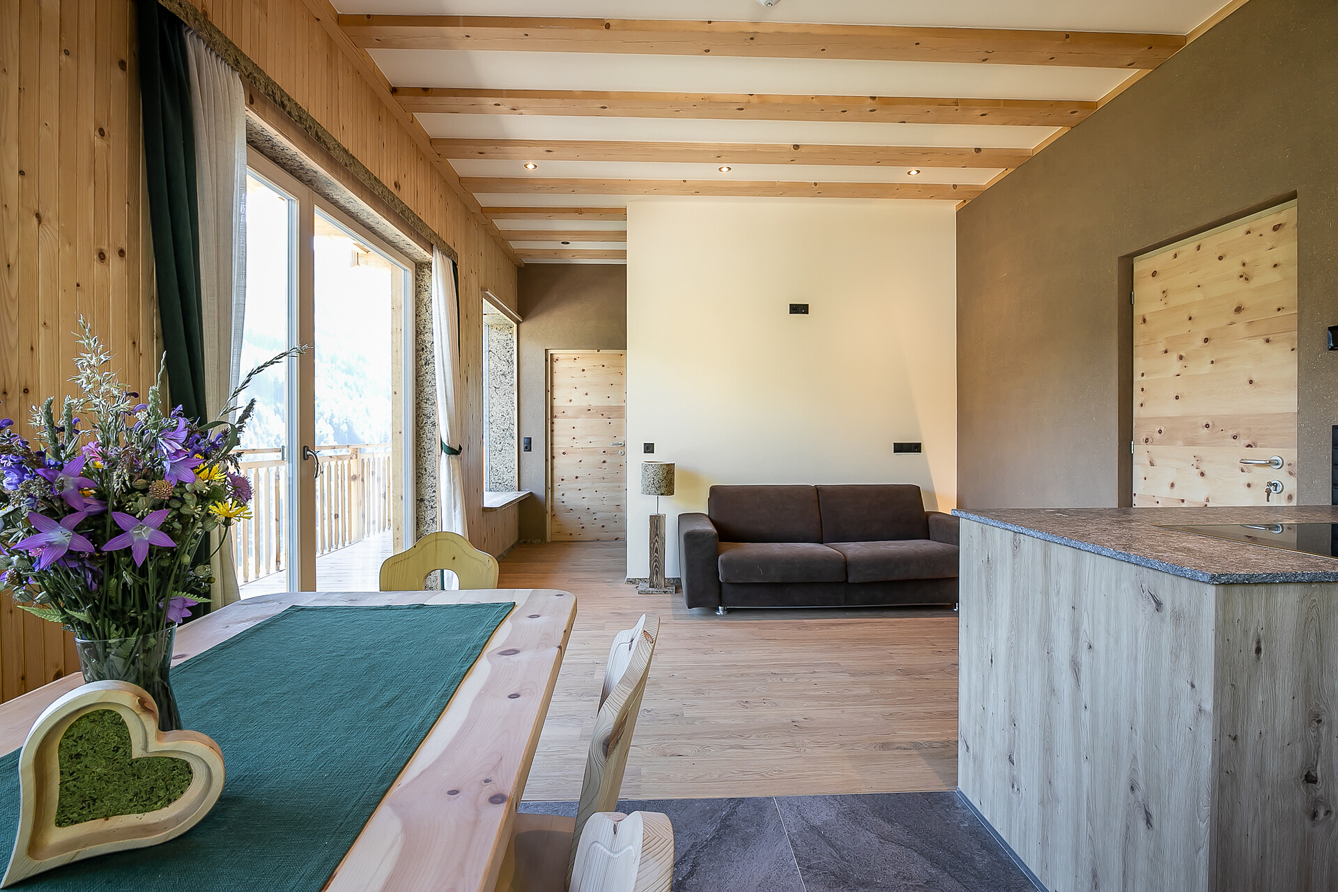 Our holiday apartments are furnished with great attention to detail. Natural materials such as wood, clay, stone and many "hay lights" from our organic South Tyrolean mountain meadow hay radiate a pleasant living environment. Let yourself be surprised which "hay lights" can be found in our new holiday apartments!