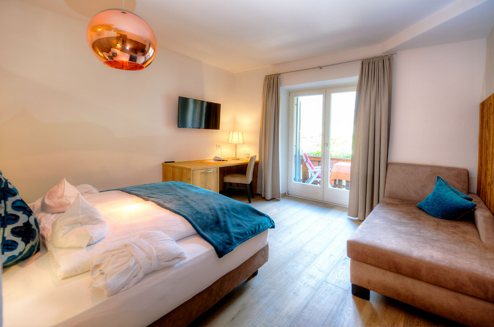 Double room, Double bed , Extra bed, Cot, Balcony, Mini-bar, Safe, Shower / Bath tub, Hair dryer, Bathrobe, TV, Satellite/Cable, WLAN, Internet access, Main building, Panoramic view