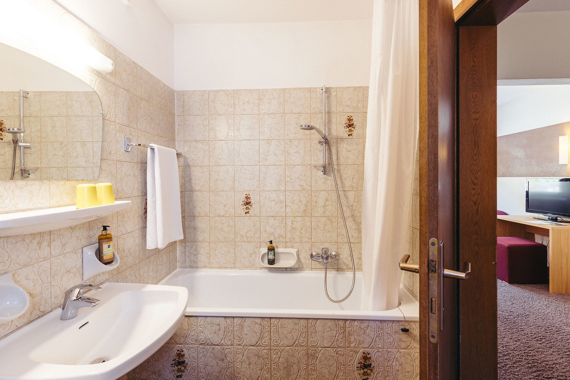 Comfortable, small double room (about 20 m²) in wine design, TV, telephone, WLAN, safe, bathroom with shower, toilet, hairdryer and some bidet, no balcony. The attached picture is an example of the room. Depending on the situation in the house, this can vary in color and layout. Stay in Martinerhof's Hotel Unterwirt with its own winery, which is just 100 steps from Martinerhof's Brauhotel and offers the same inclusive services, amenities and benefits.