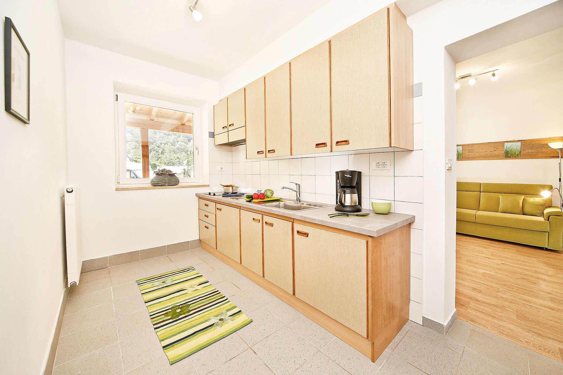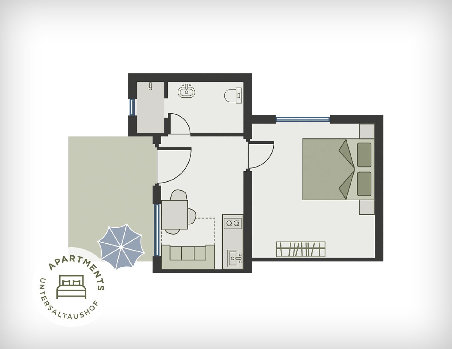 Apartment of 40m², terrace, 1 bedroom, eat-in-kitchen with sofa-bed, sitting area, shower/WC, SAT-TV, at ground level, crockery and kitchenware, dishwasher, safe, hairdryer.1 bedroom, eat-in-kitchen with sofa-bed, sitting area, shower/WC, SAT-TV, at ground level, crockery and kitchenware, dishwasher, safe, hairdryer.
