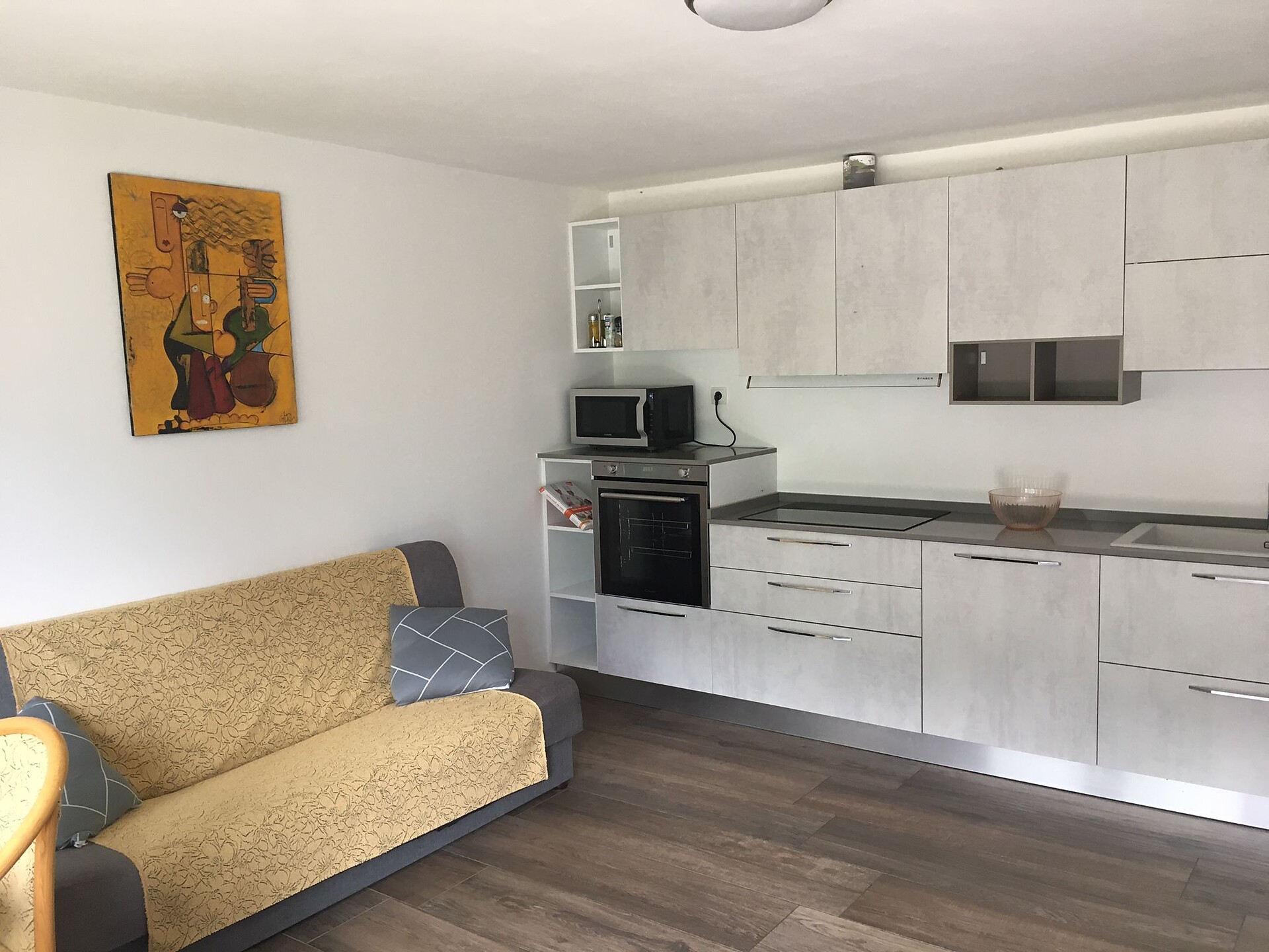 The holiday flat of Haus Reimon is located on the ground floor of the 4-storey house. A private terrace and use of the garden enhance the flat, which was completely renovated in 2020. Comfortable garden furniture ensures pleasant hours in the wonderful sun. The flat is equipped with a great fitted kitchen and all possible appliances, such as refrigerator and freezer, dishwasher, microwave, filter coffee machine as well as espresso machine with associated tabs. The dining area offers a comfortable divan, which can also be used as a sofa bed. Two Resch benches, one in the bedroom and one in the kitchen-living room, can be converted into a single bed. The bedroom is very spacious and offers a wonderful wrought iron bed, wardrobe, mirror and mute valet. In the bathroom you will find a bathtub, wc, bidet and also a washing machine. Hairdryer and iron are also in the flat. Our towels are from the brand "Cavö", the bed linen is seersucker "Janine", pillows and duvet are from "Trendline" and also suitable for allergy sufferers.