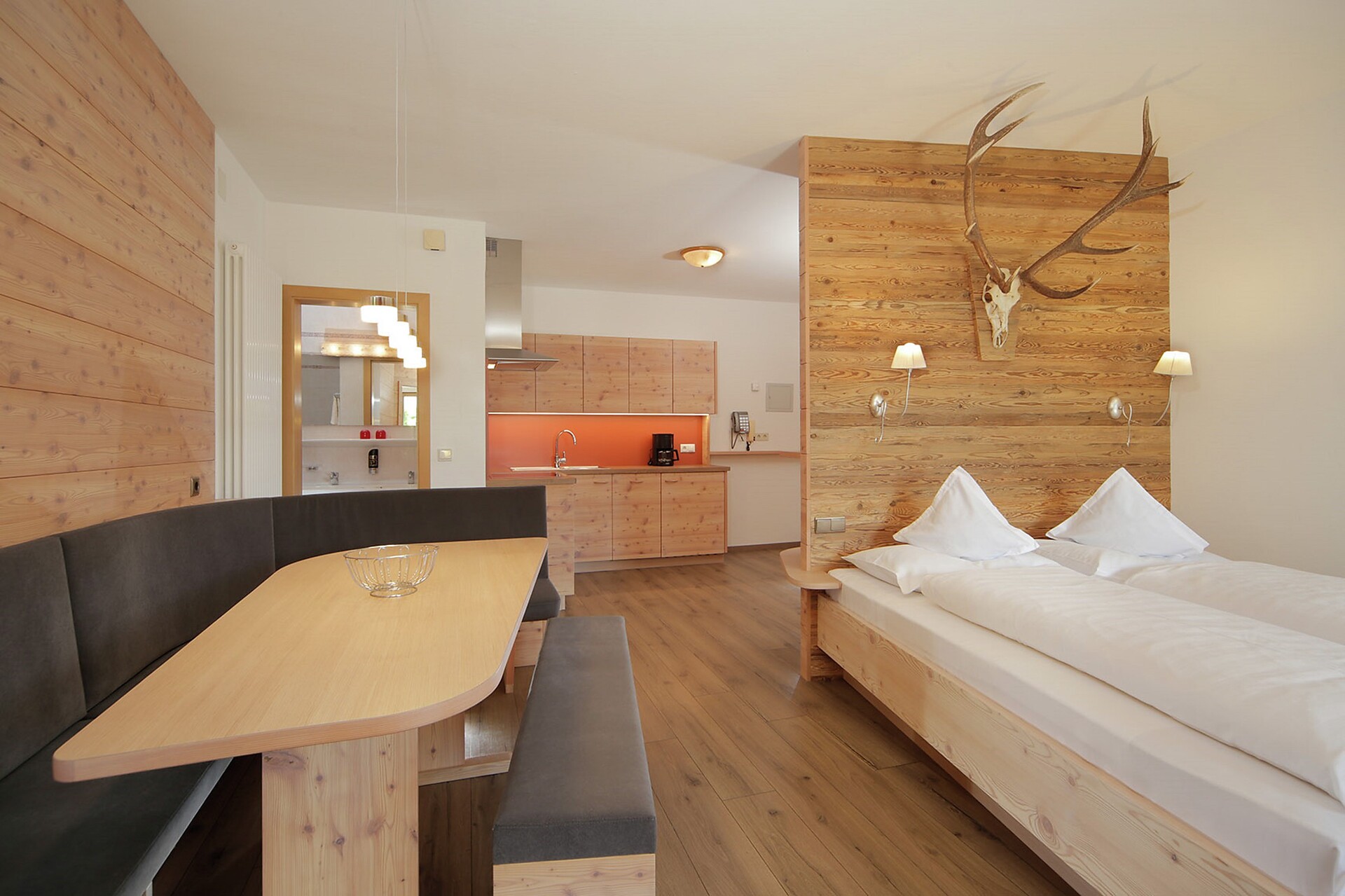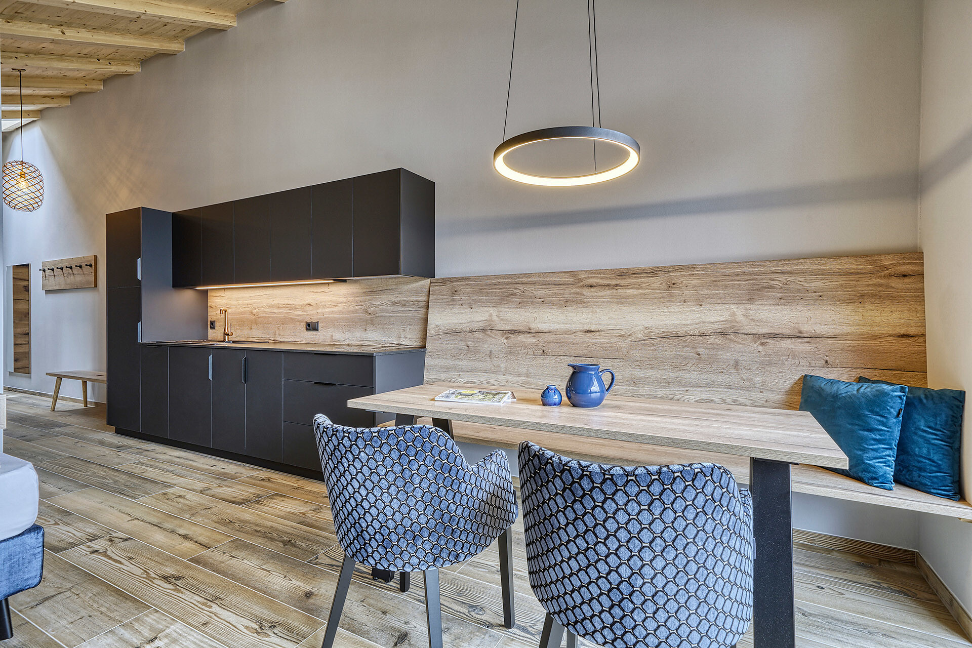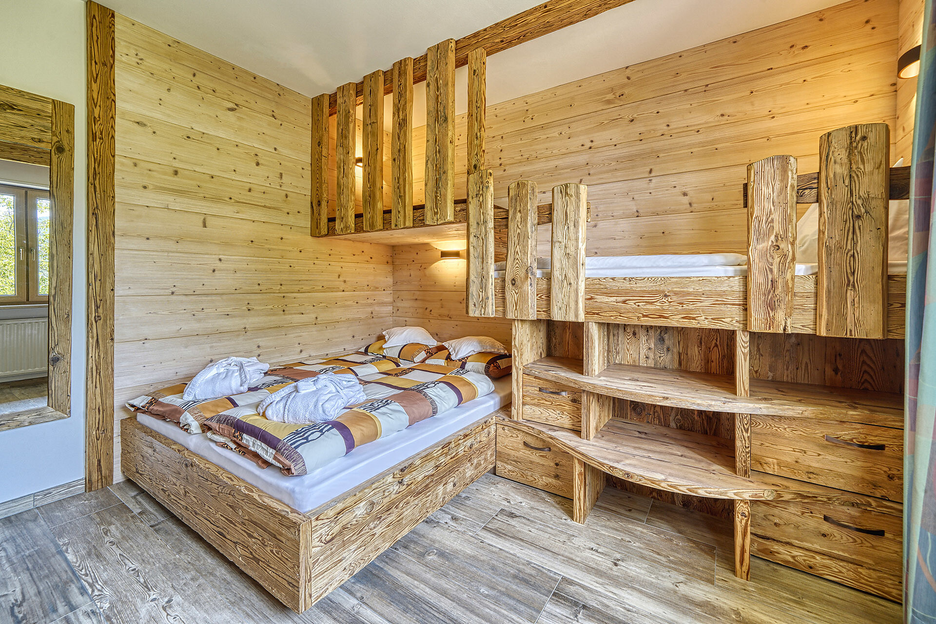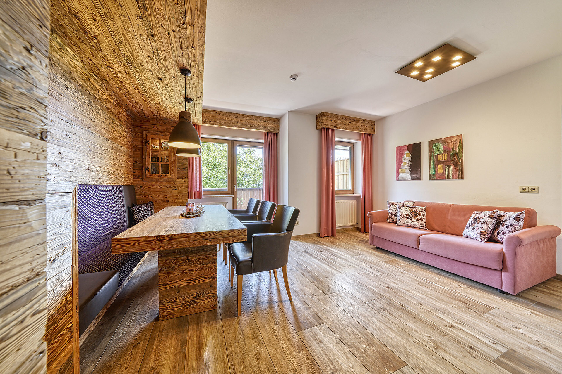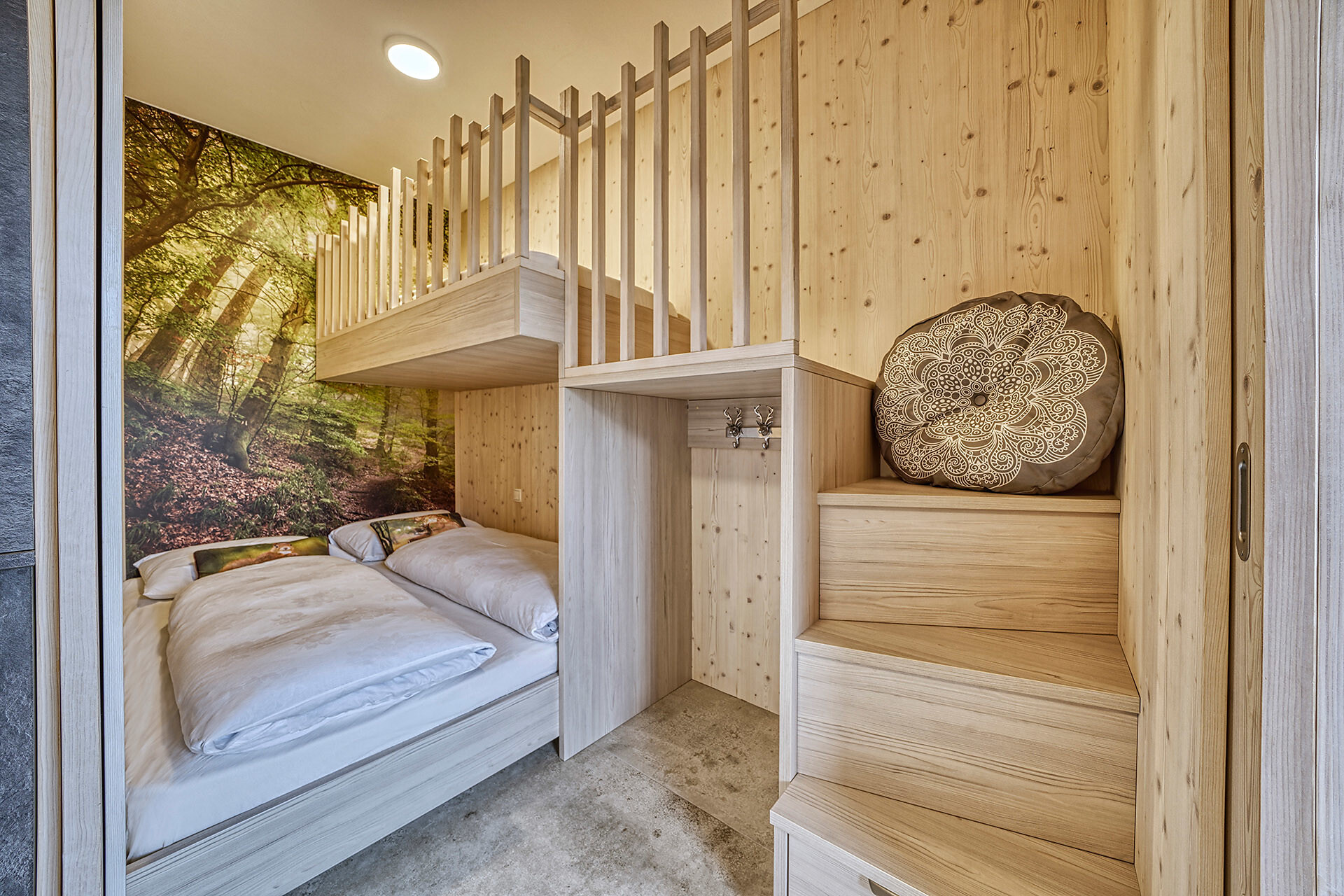 Our spacious holiday apartments can sleep up to six people. Each apartment has a balcony or a terrace. The welcoming ambience ensures guests feel at home. Each apartment has an extendable couch and a seating area. The price includes the use of all the hotel’s infrastructure, the wellness area, indoor swimming pool and provision of childcare.