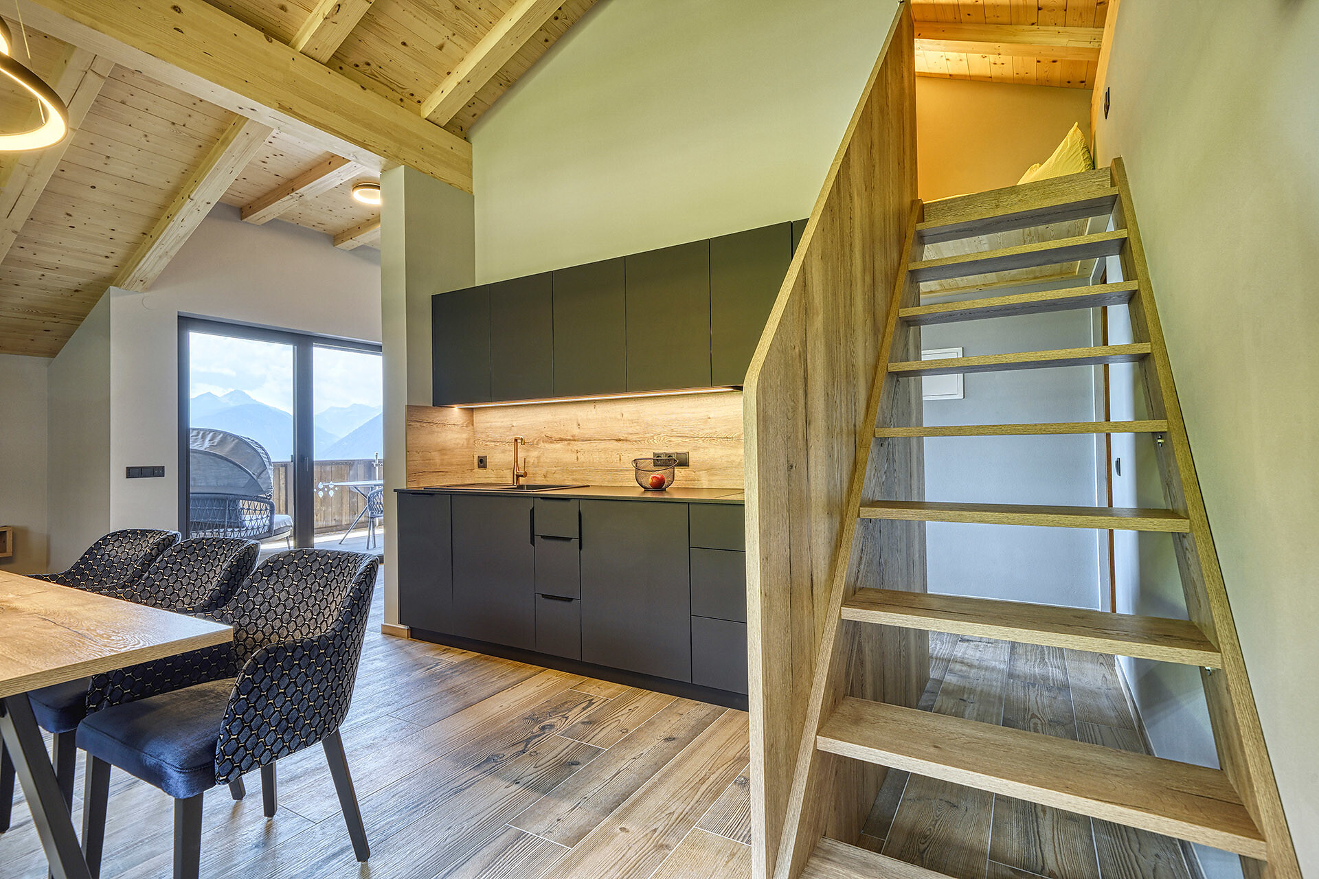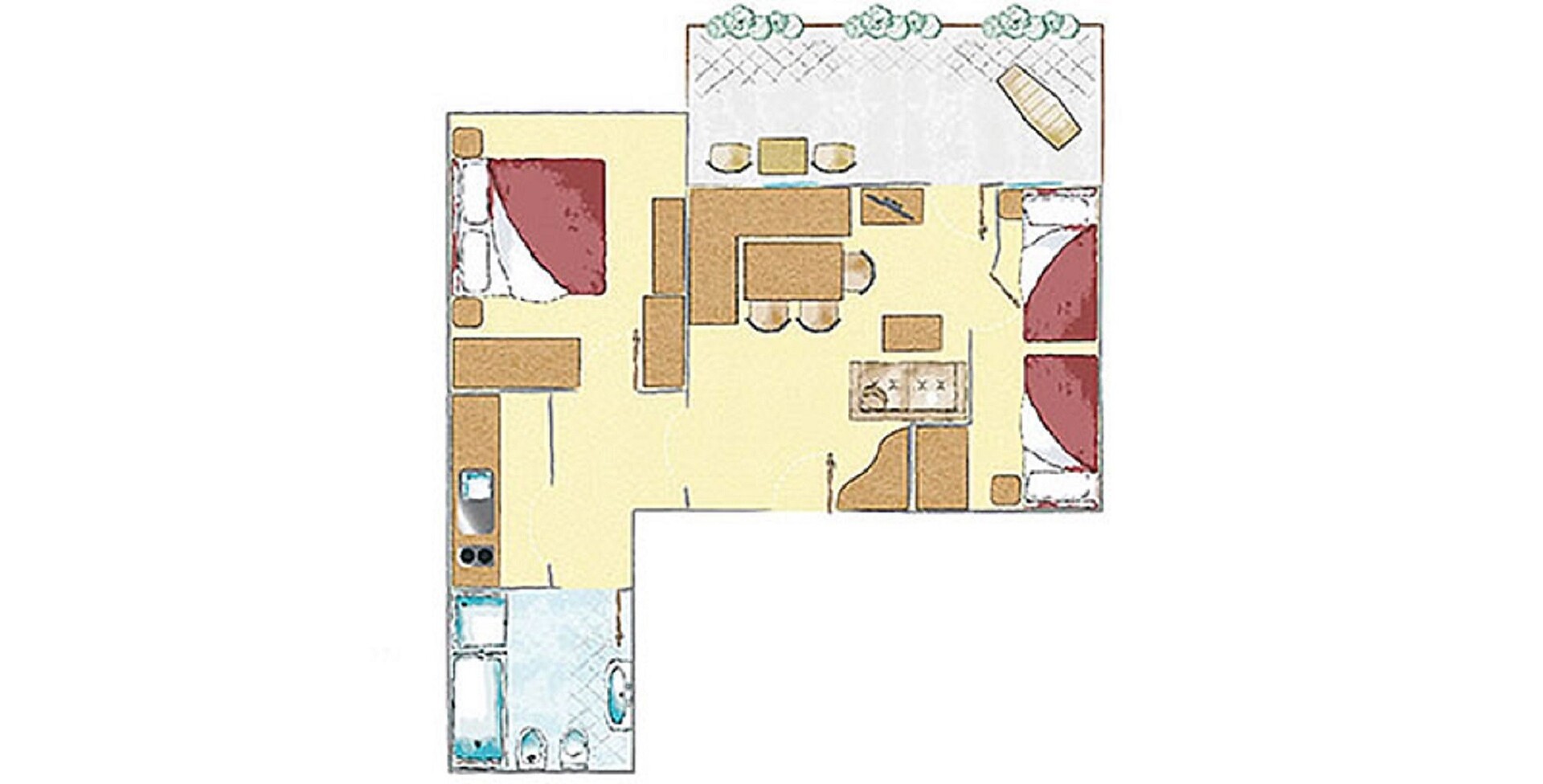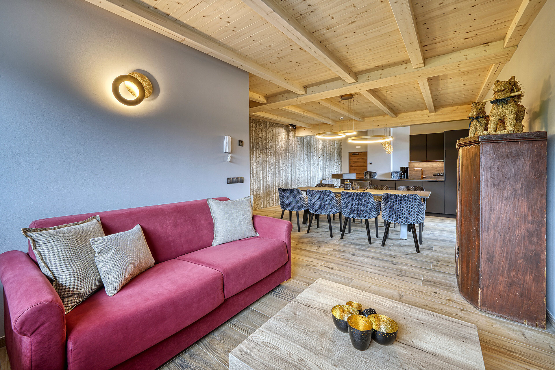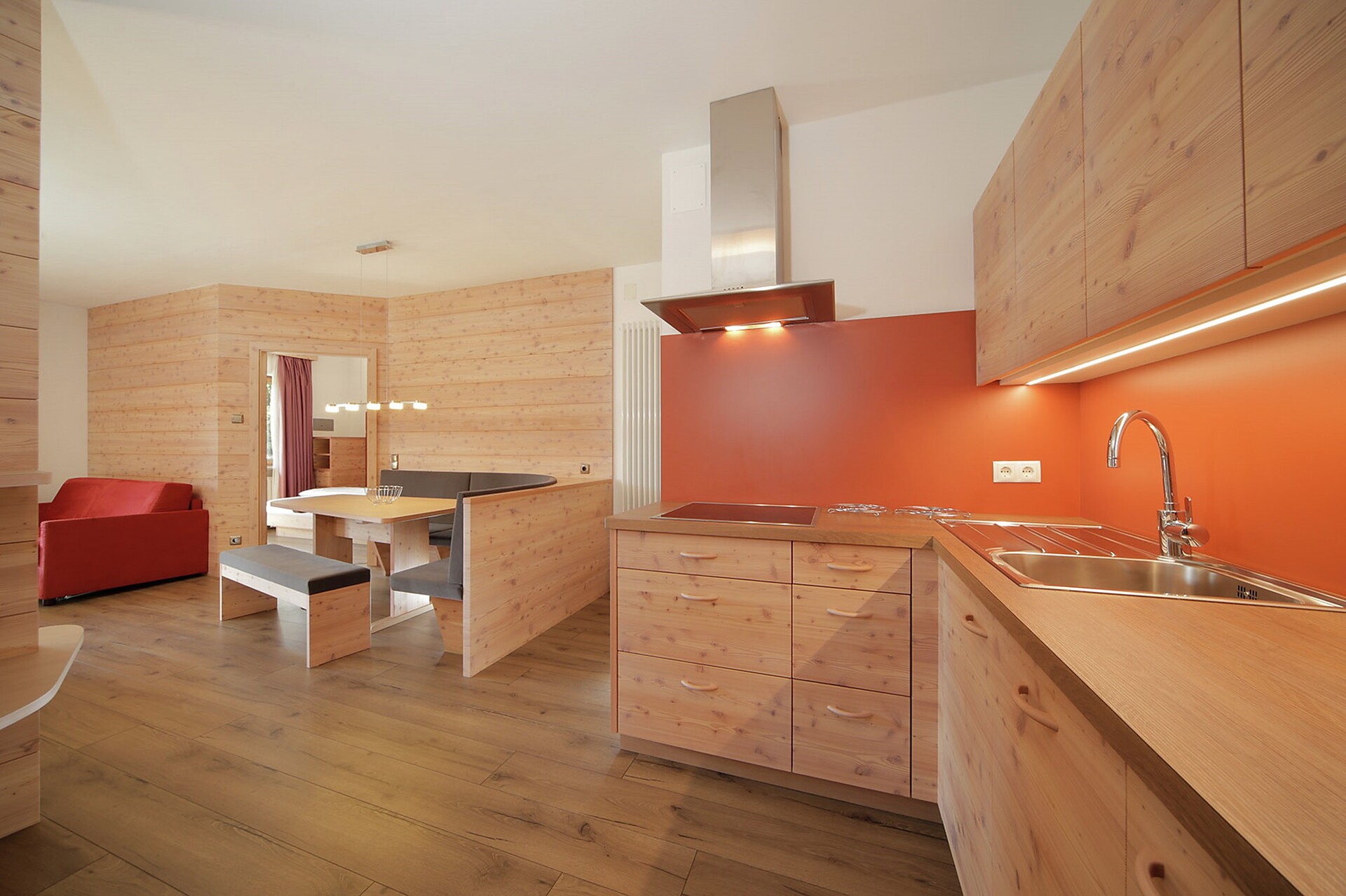 Our spacious holiday apartments can sleep up to six people. Each apartment has a balcony or a terrace. The welcoming ambience ensures guests feel at home. Each apartment has an extendable couch and a seating area. The price includes the use of all the hotel’s infrastructure, the wellness area, indoor swimming pool and provision of childcare.