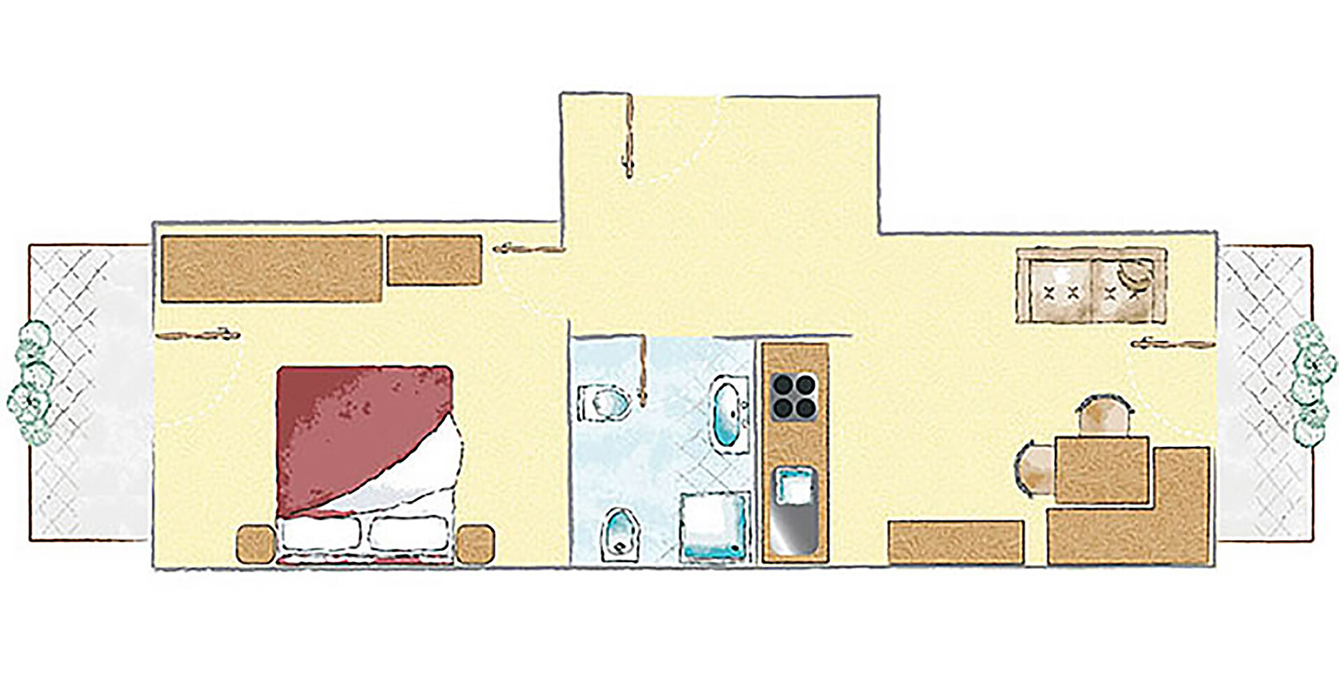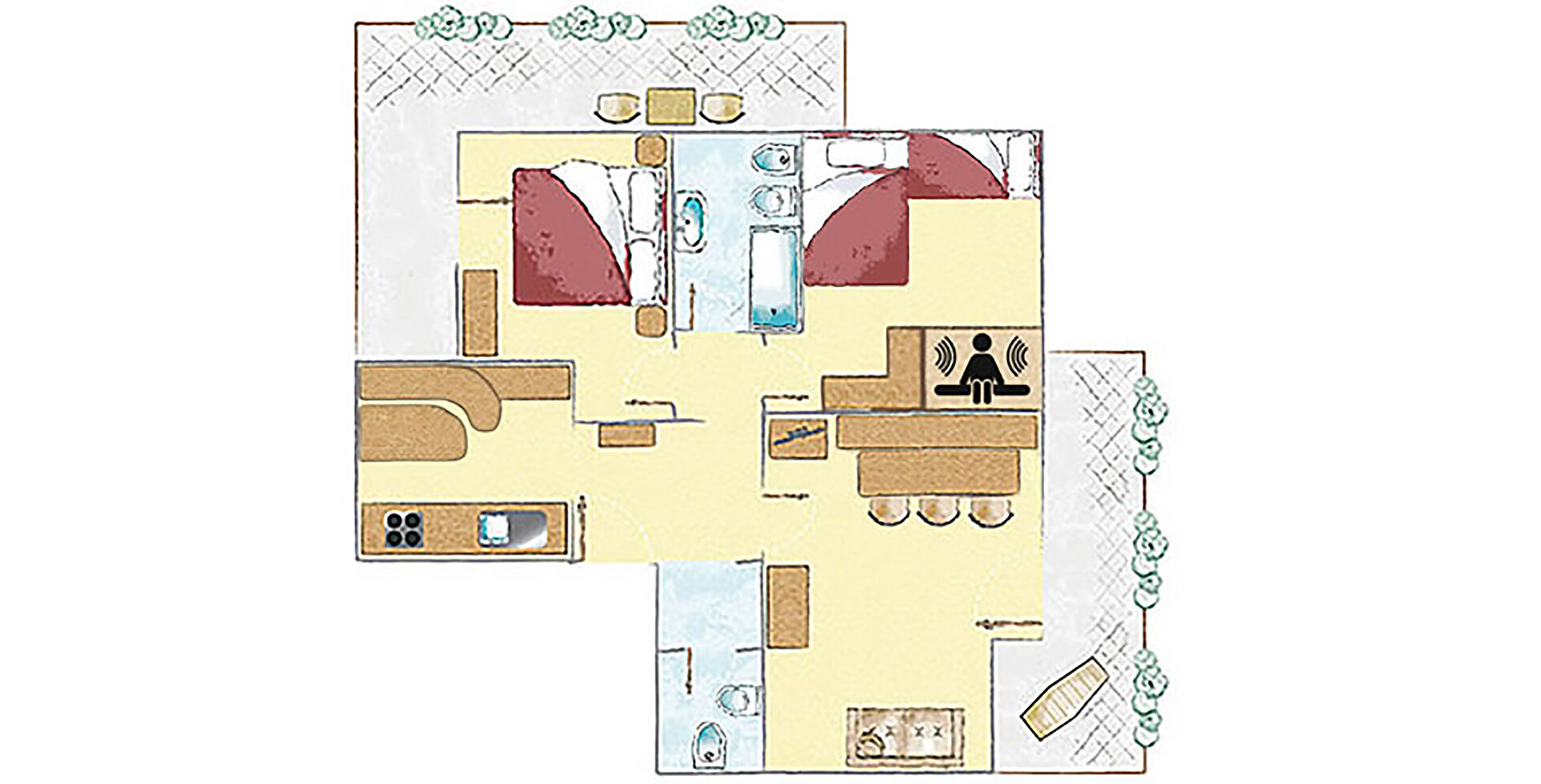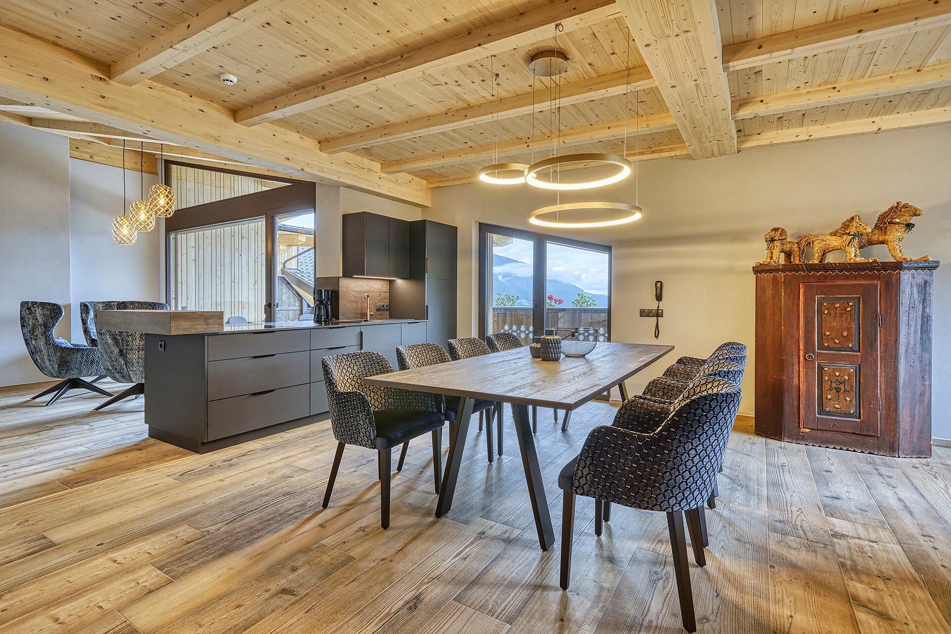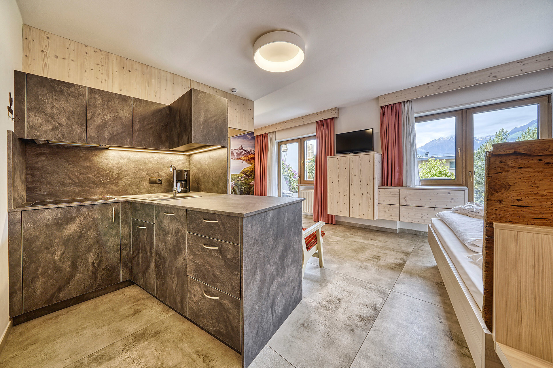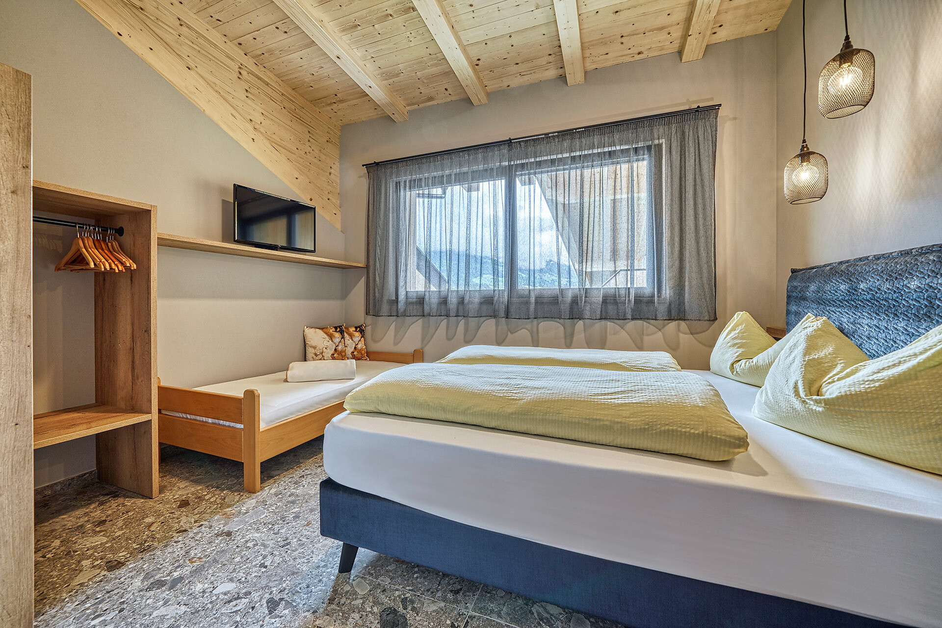 Our spacious holiday apartments can sleep up to six people. Each apartment has a balcony or a terrace. The welcoming ambience ensures guests feel at home. Each apartment has an extendable couch and a seating area. The price includes the use of all the hotel’s infrastructure, the wellness area, indoor swimming pool and provision of childcare.