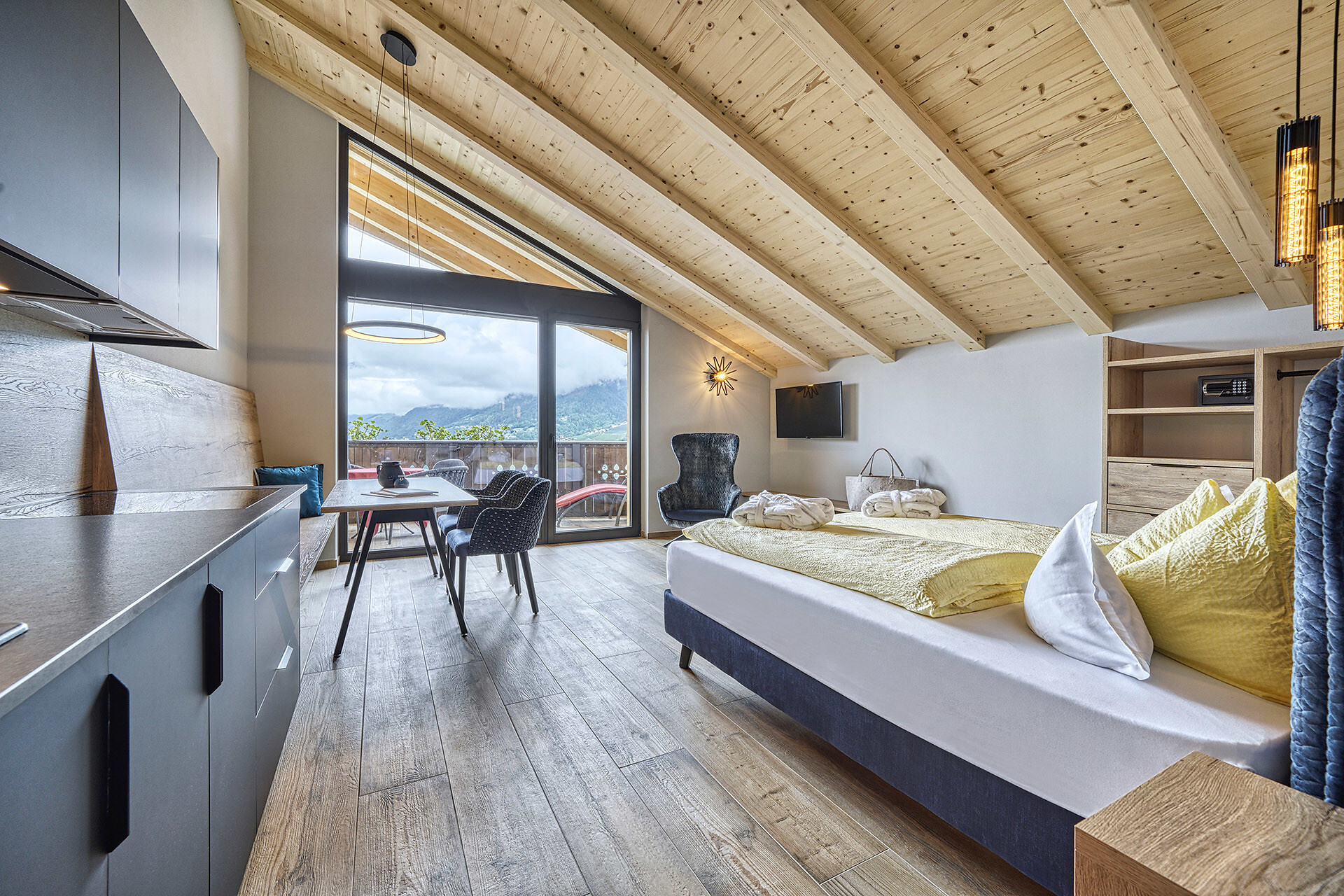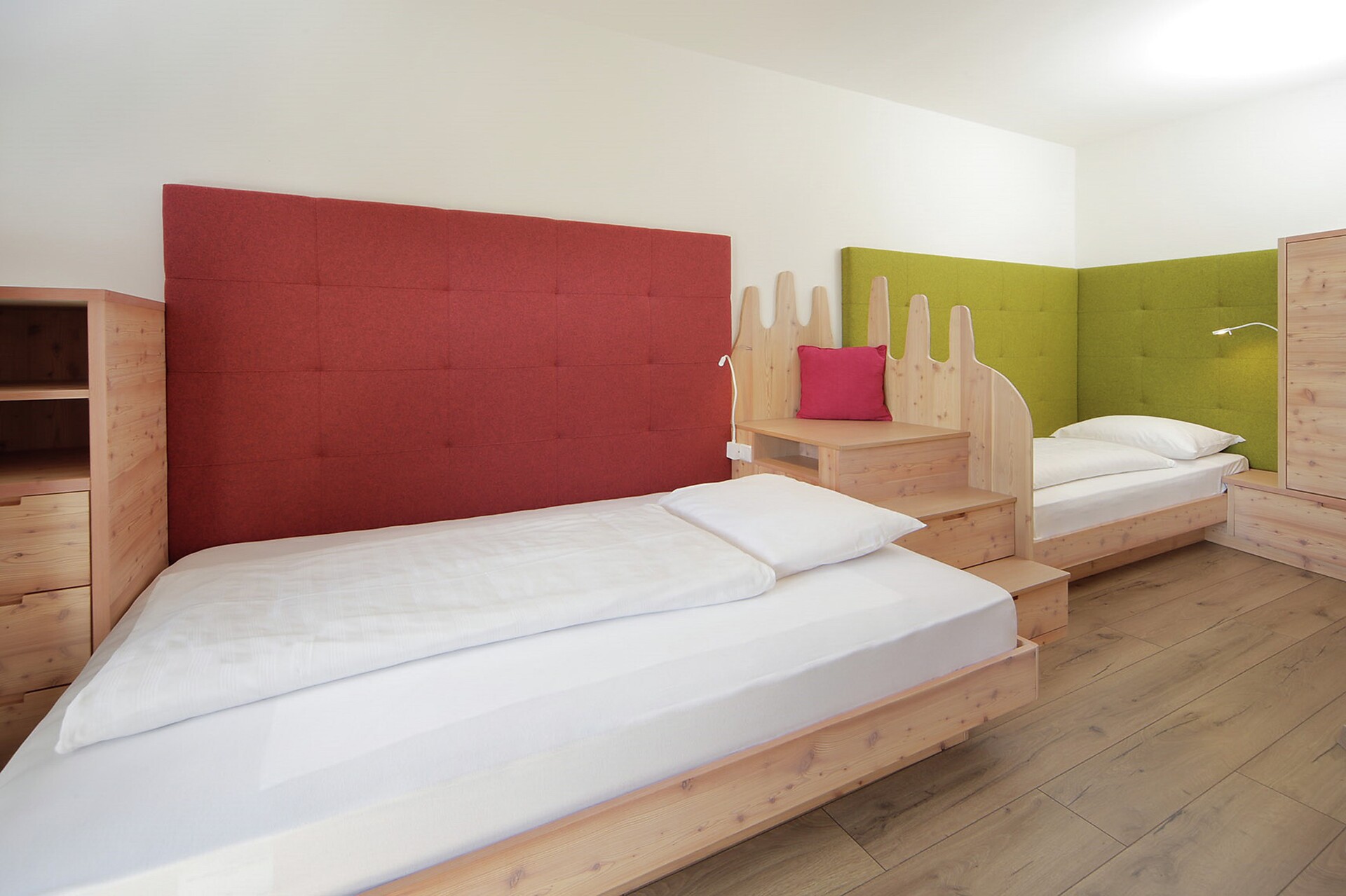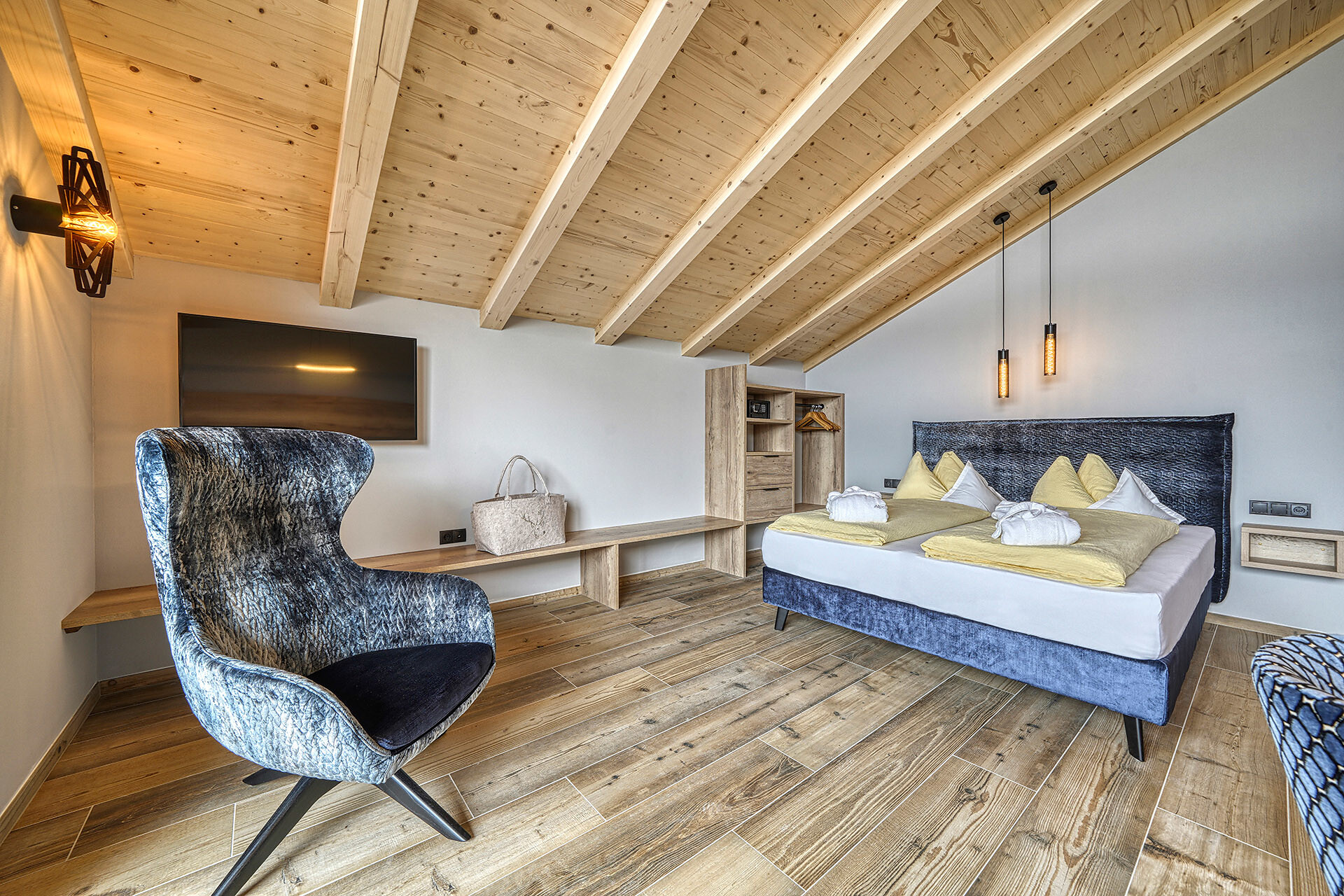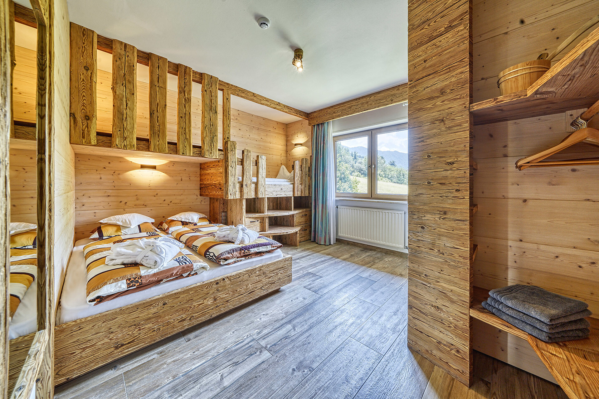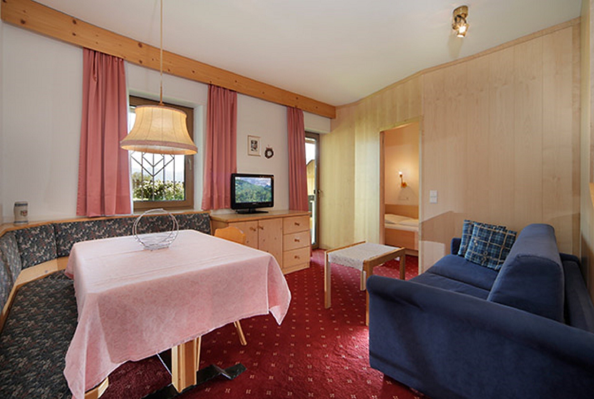 In the hotel you will find a house bar with sun terrace and a selection of cakes prepared fresh daily by our pastry chef in the afternoon (included in the price), indoor swimming pool with separate children's pool and panoramic relaxation room with fitness equipment, newly built steam sauna and Finnish sauna, a family playroom with table tennis and table football, playground in the garden and 2 children's playrooms with all-day supervision from 9 a.m. to 9.30 p.m. for children over three years of age and 5 hours of supervision daily for children under three years of age included. Our house hikes and other great events such as the free riding taster lessons on the back of our Haflinger horse Aika at our adjacent riding arena, supervised by our riding instructor; as well as the weekly barbecue evenings in the garden, etc. are very popular.
