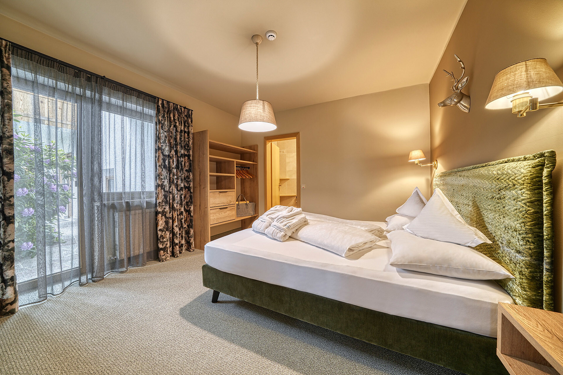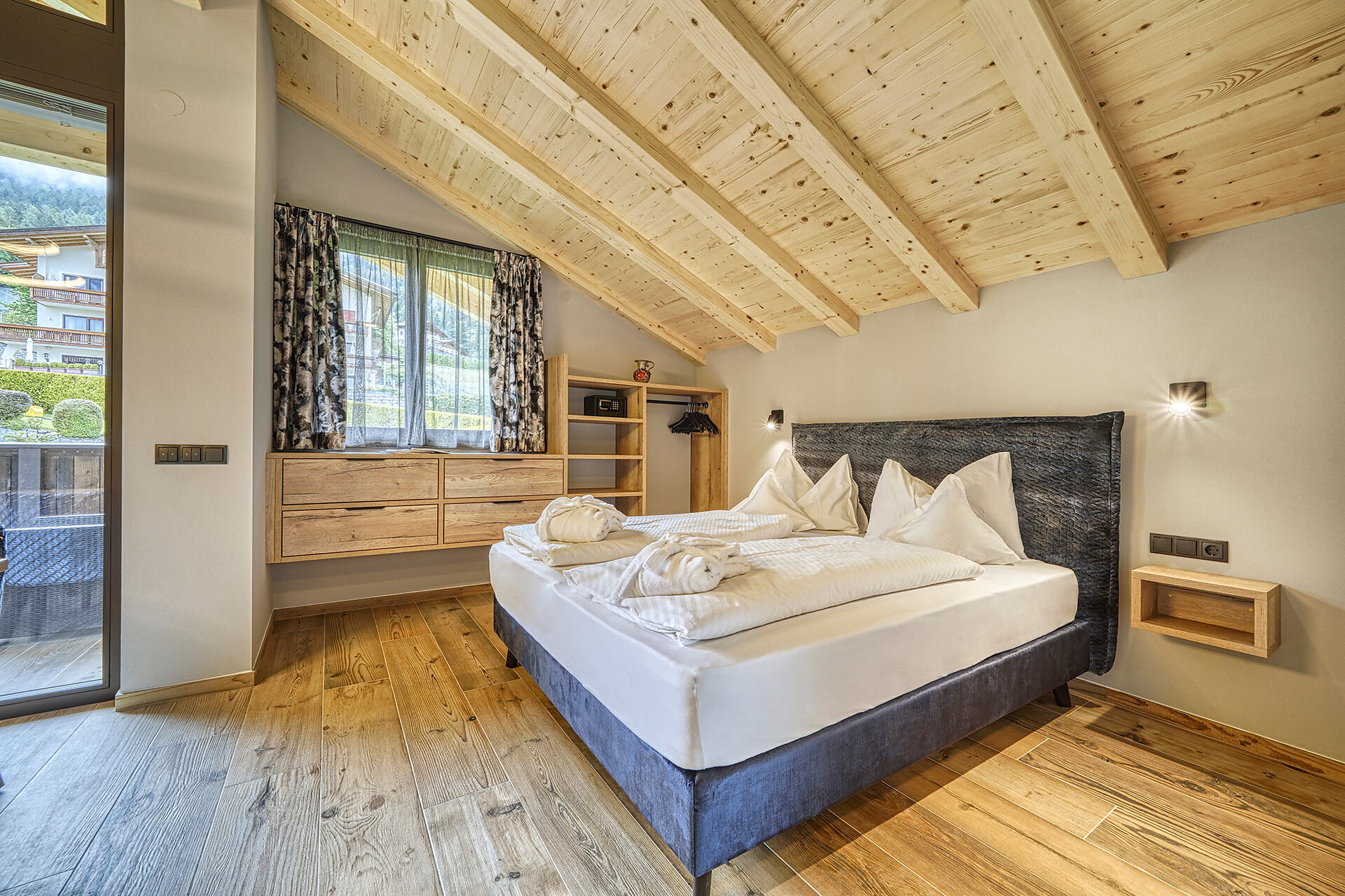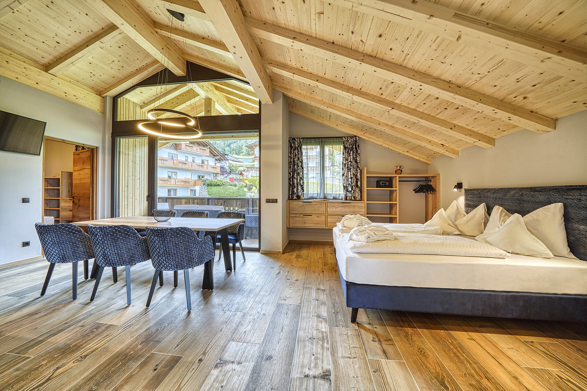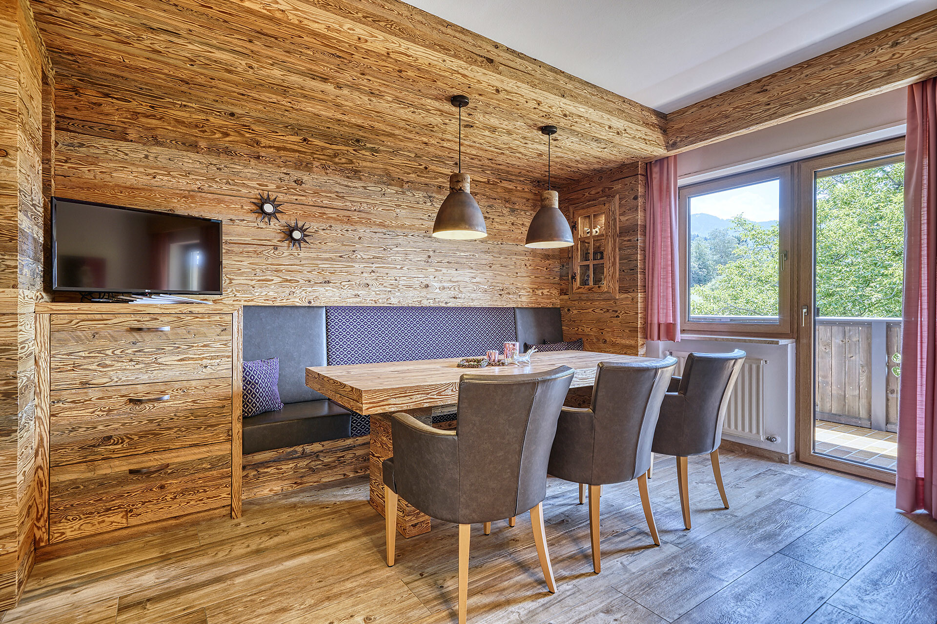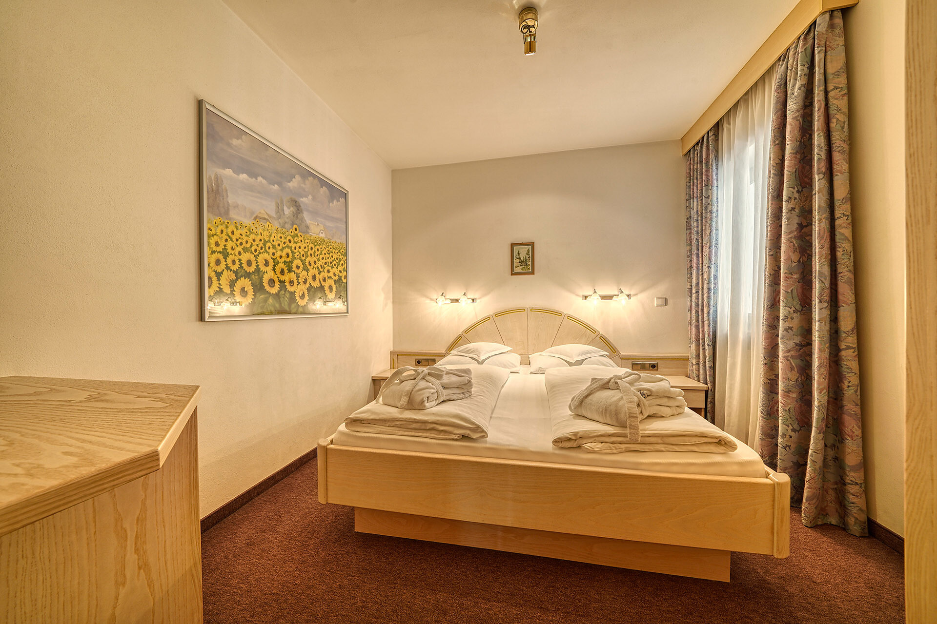 In the hotel you will find a house bar with sun terrace and a selection of cakes prepared fresh daily by our pastry chef in the afternoon (included in the price), indoor swimming pool with separate children's pool and panoramic relaxation room with fitness equipment, newly built steam sauna and Finnish sauna, a family playroom with table tennis and table football, playground in the garden and 2 children's playrooms with all-day supervision from 9 a.m. to 9.30 p.m. for children over three years of age and 5 hours of supervision daily for children under three years of age included. Our house hikes and other great events such as the free riding taster lessons on the back of our Haflinger horse Aika at our adjacent riding arena, supervised by our riding instructor; as well as the weekly barbecue evenings in the garden, etc. are very popular.