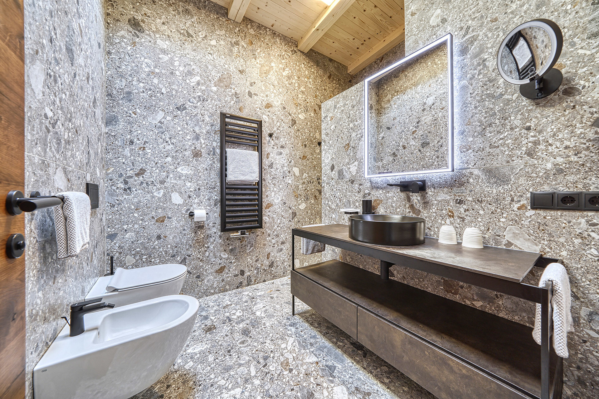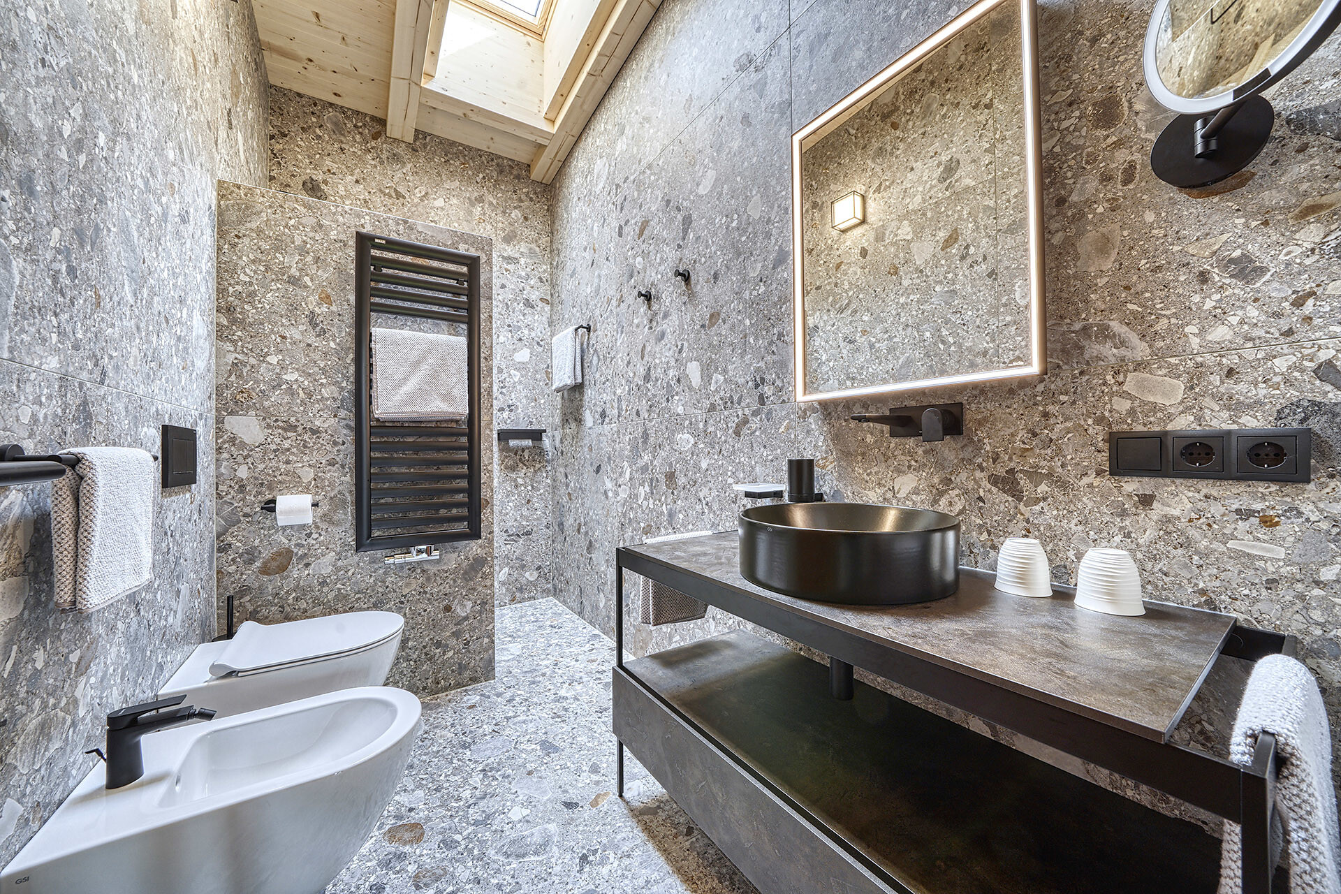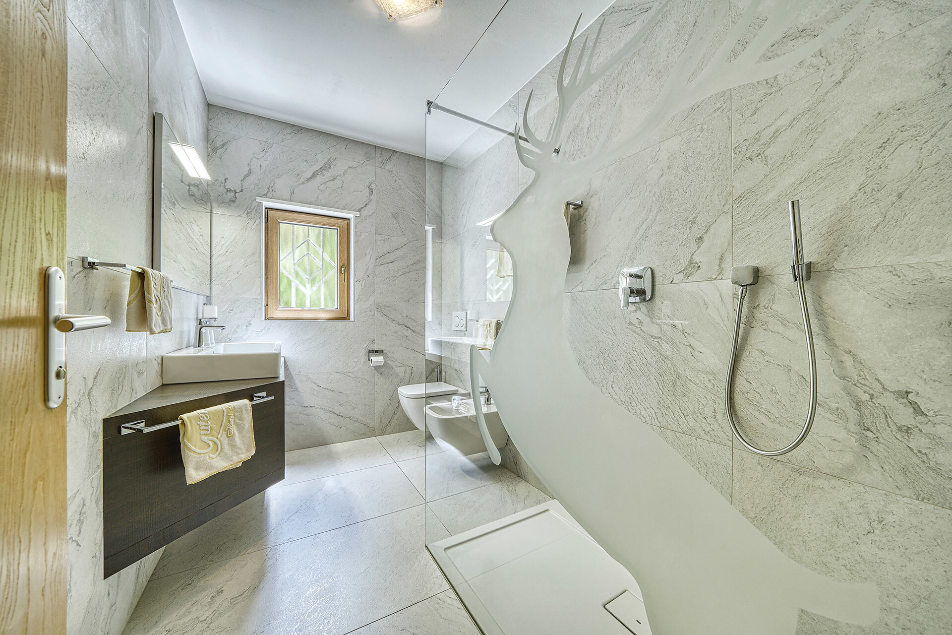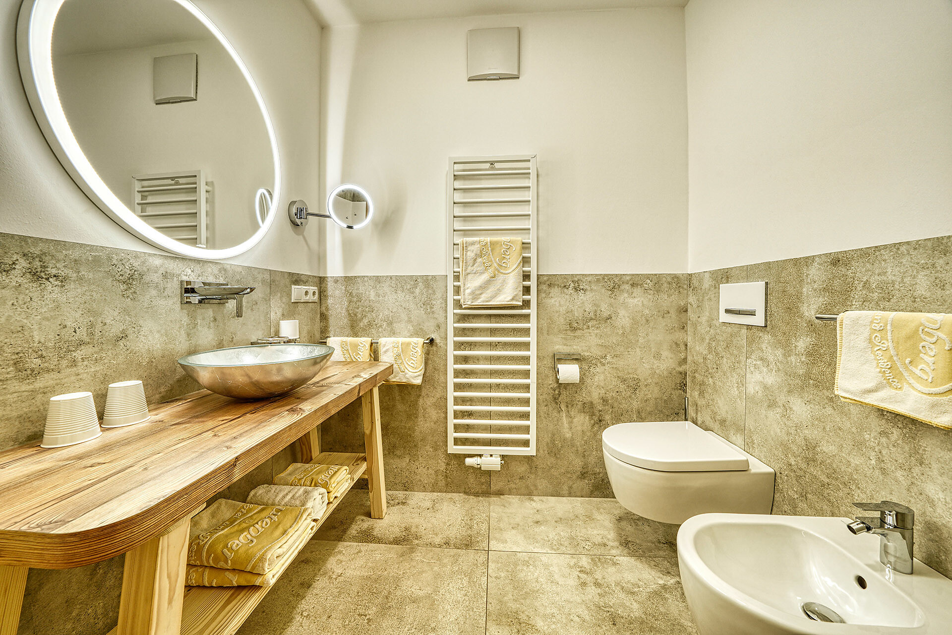 New, modern apartment for 1-6 persons with two balconies to the east and south with a view over the Merano region. 70 qm. Sleeping - living room with panoramic window, large family table, comfortable reading chair, W - Lan, satellite TV and safe, fully equipped kitchenette with dishwasher, coffee maker and toaster, separate bedroom, two bathrooms with walk-in rain shower, toilet and bidet and hair dryer.