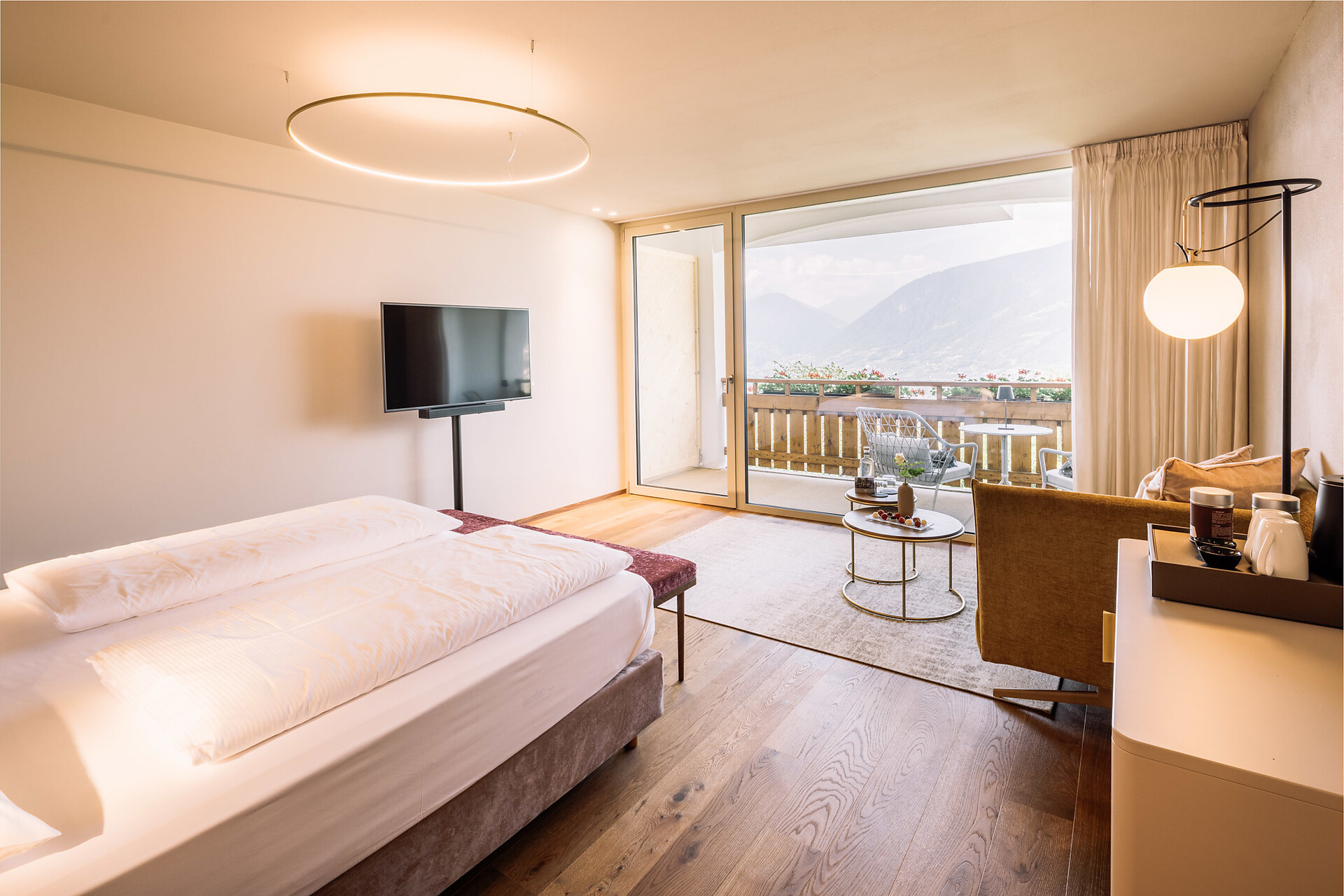 "Let go of the everyday, embrace the moment" – nestled in the majestic mountains of South Tyrol, surrounded by apple orchards and offering spectacular views of the spa town of Meran, Hohenwart is the perfect starting point for a getaway that energises, relaxes and inspires. Whether you're seeking active adventures or pure relaxation, your holiday here will be an unforgettable experience:
