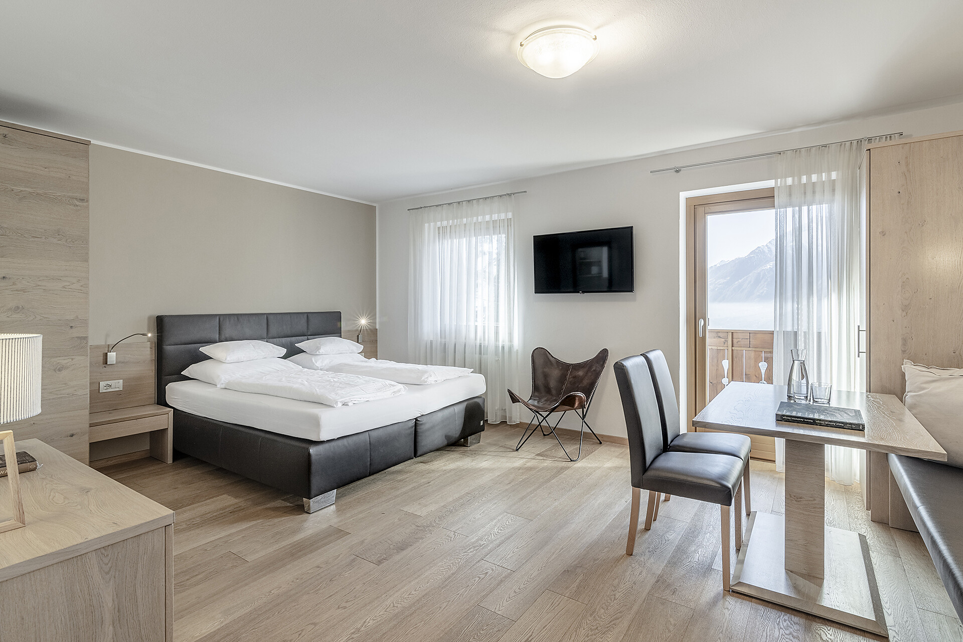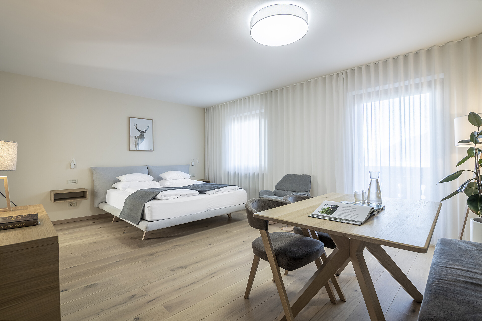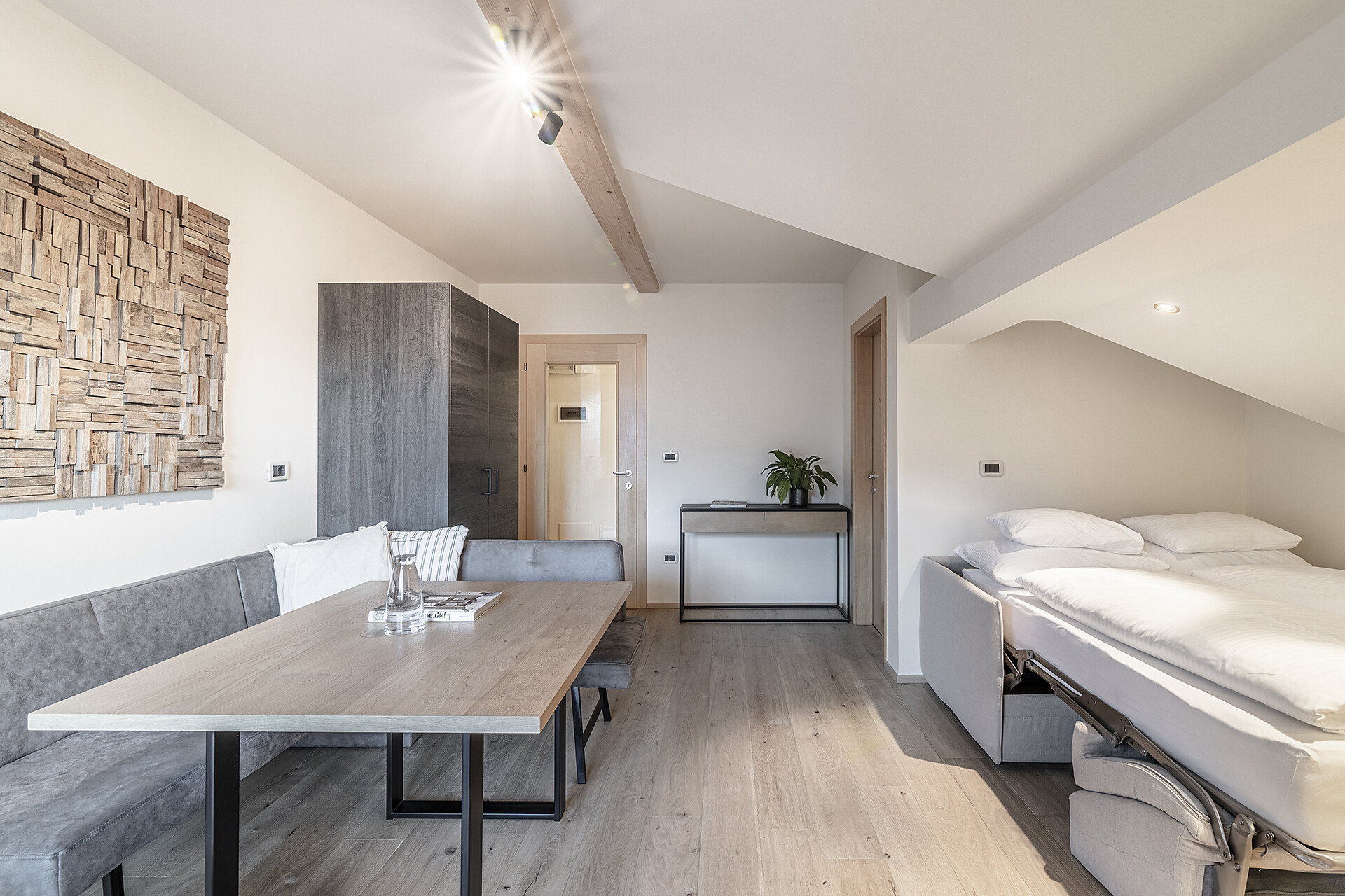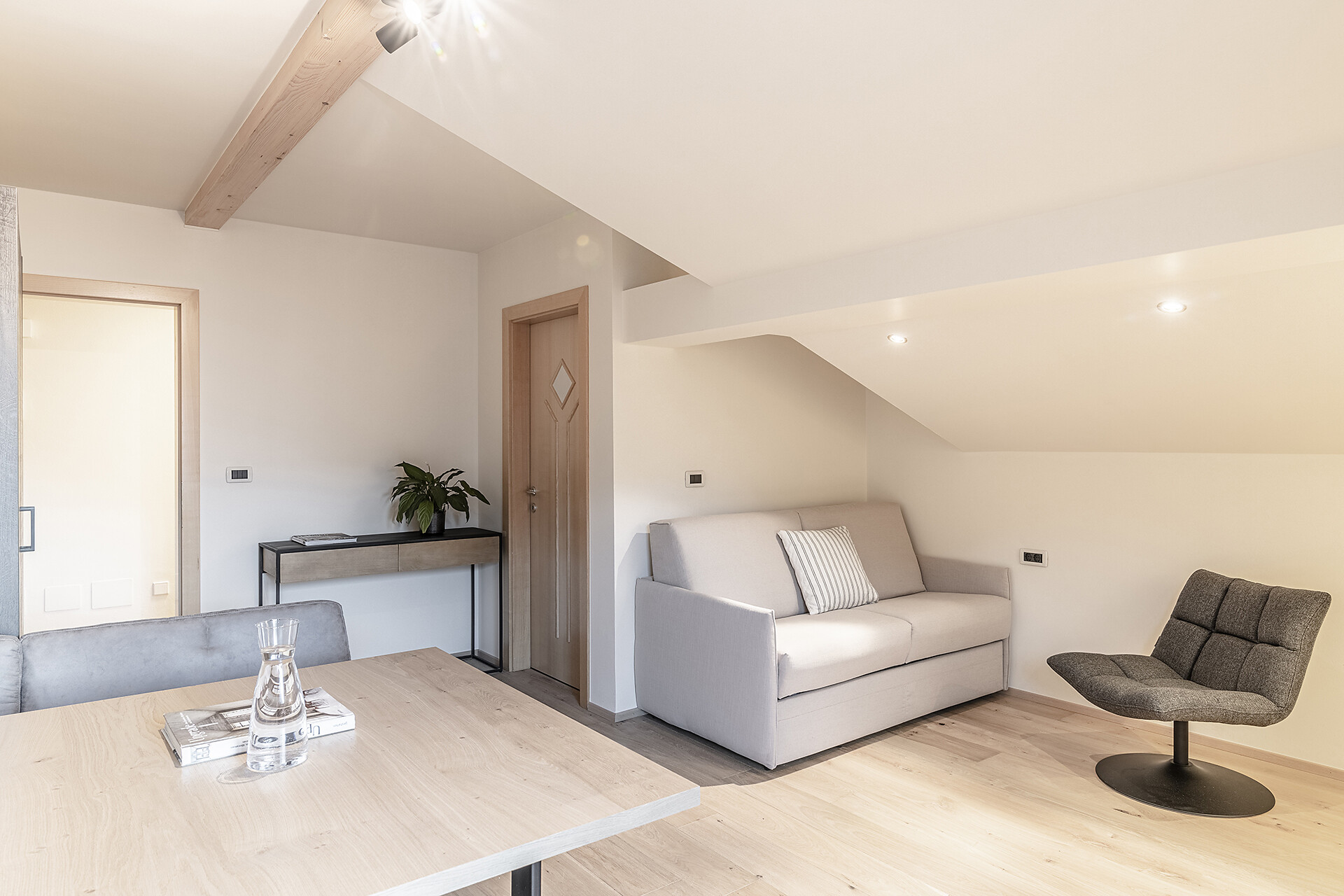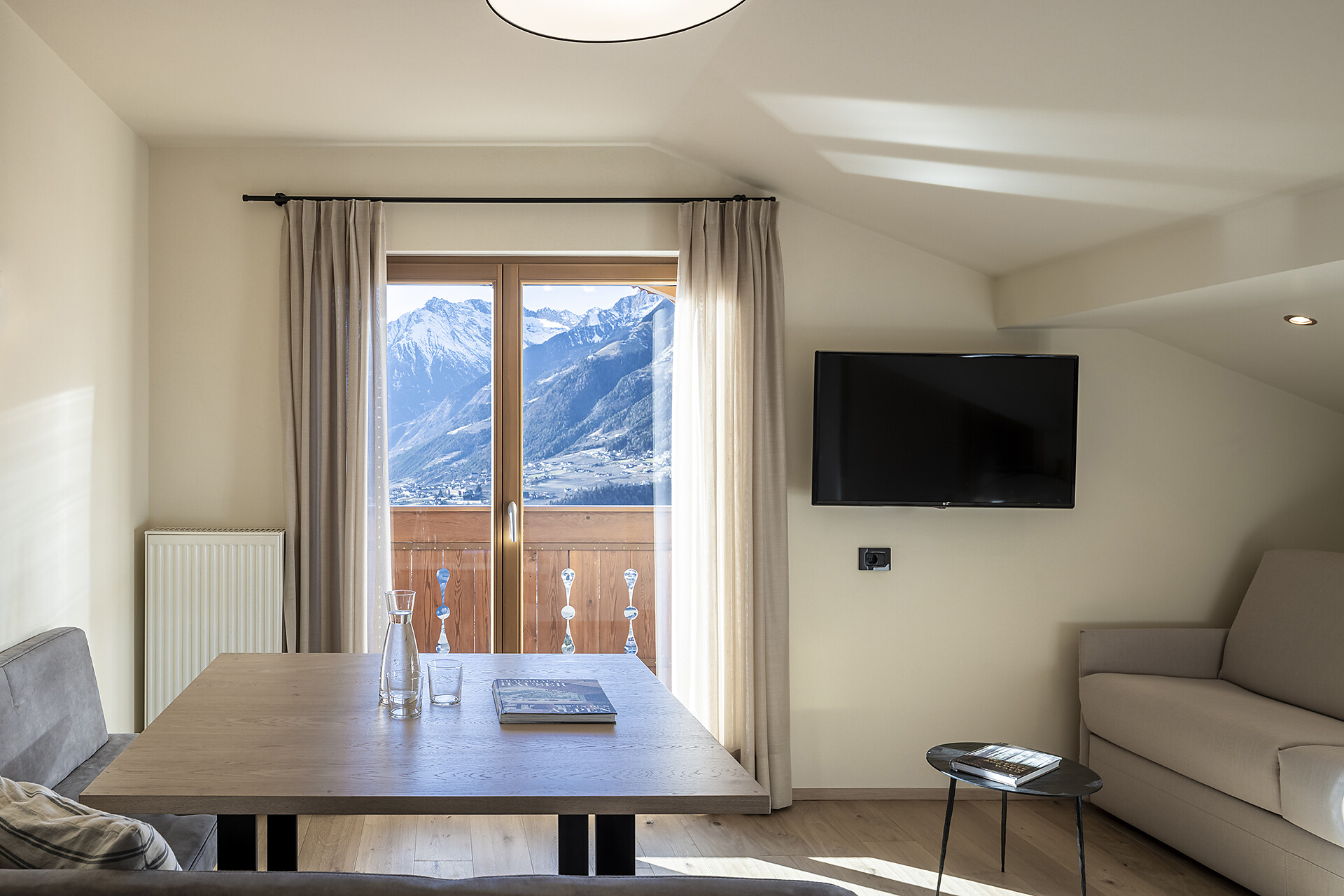 The view? Unobstructed. Nature comes directly into the apartment. The furnished panoramic balcony becomes a private viewing lodge with a wide view of the Merano area, making every moment feel special.
