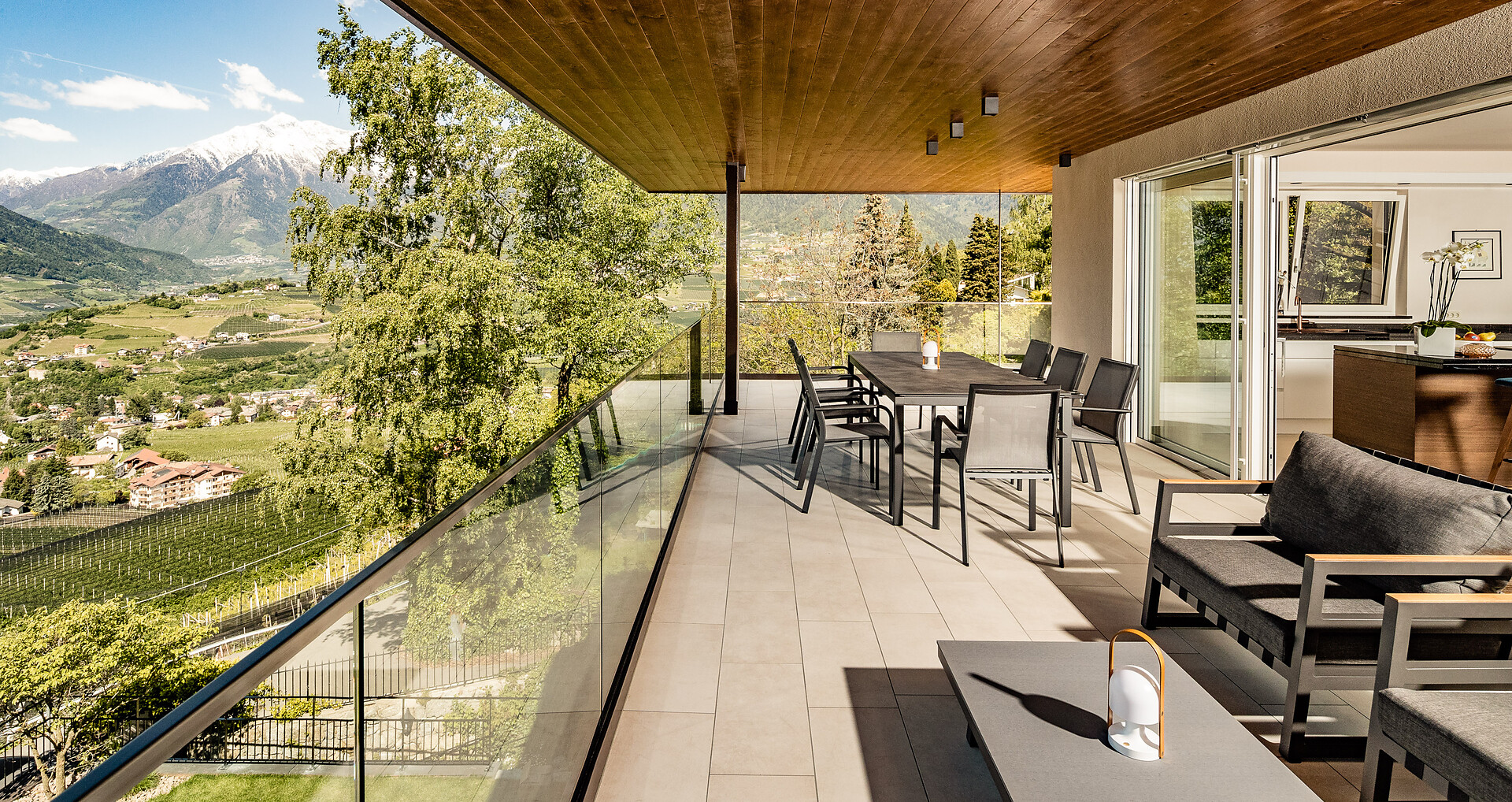 The light-flooded penthouse apartment with breathtaking views for relaxing moments. Enjoy panoramic hours of relaxation on the large sun terraces high above Merano.