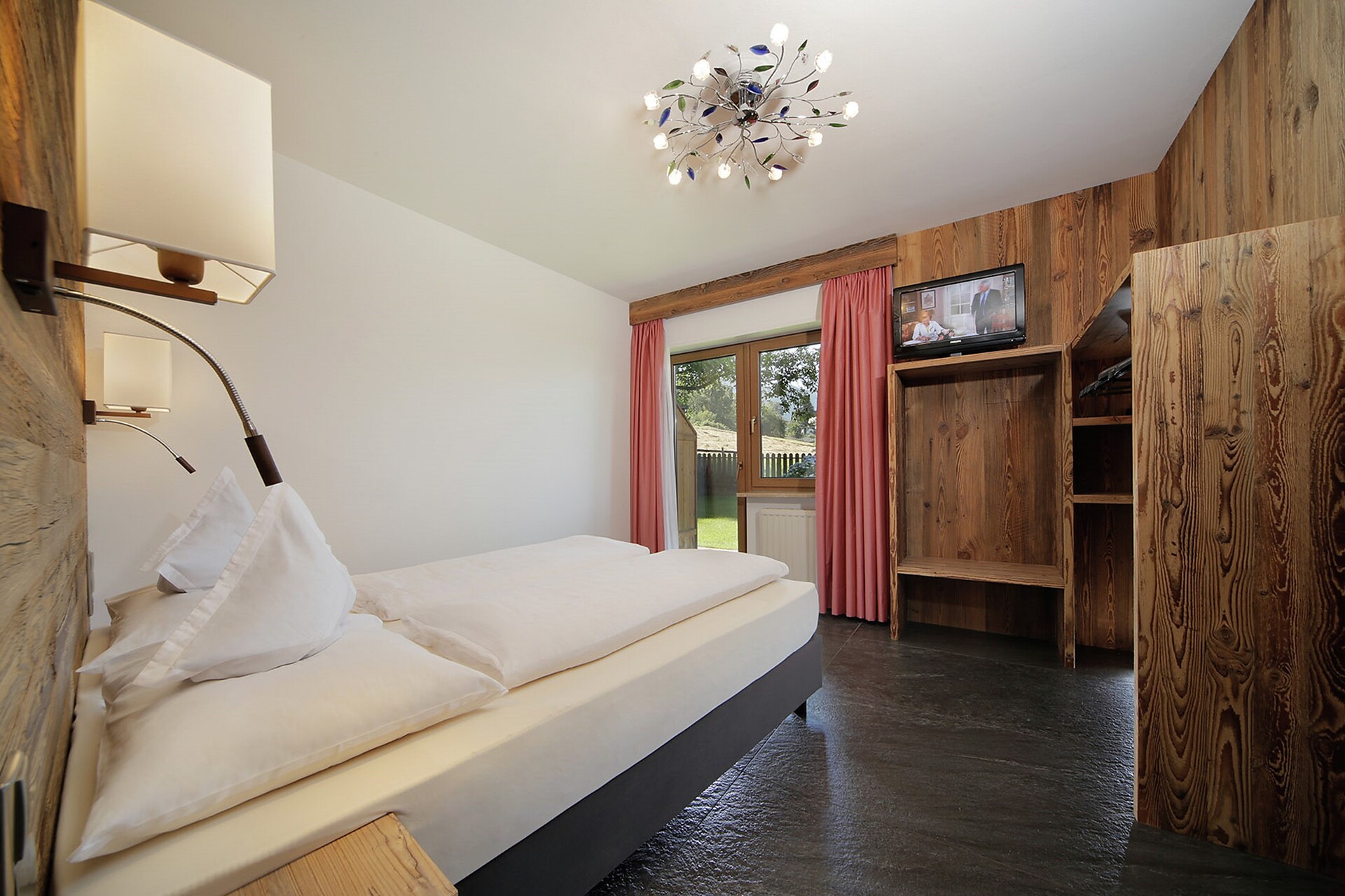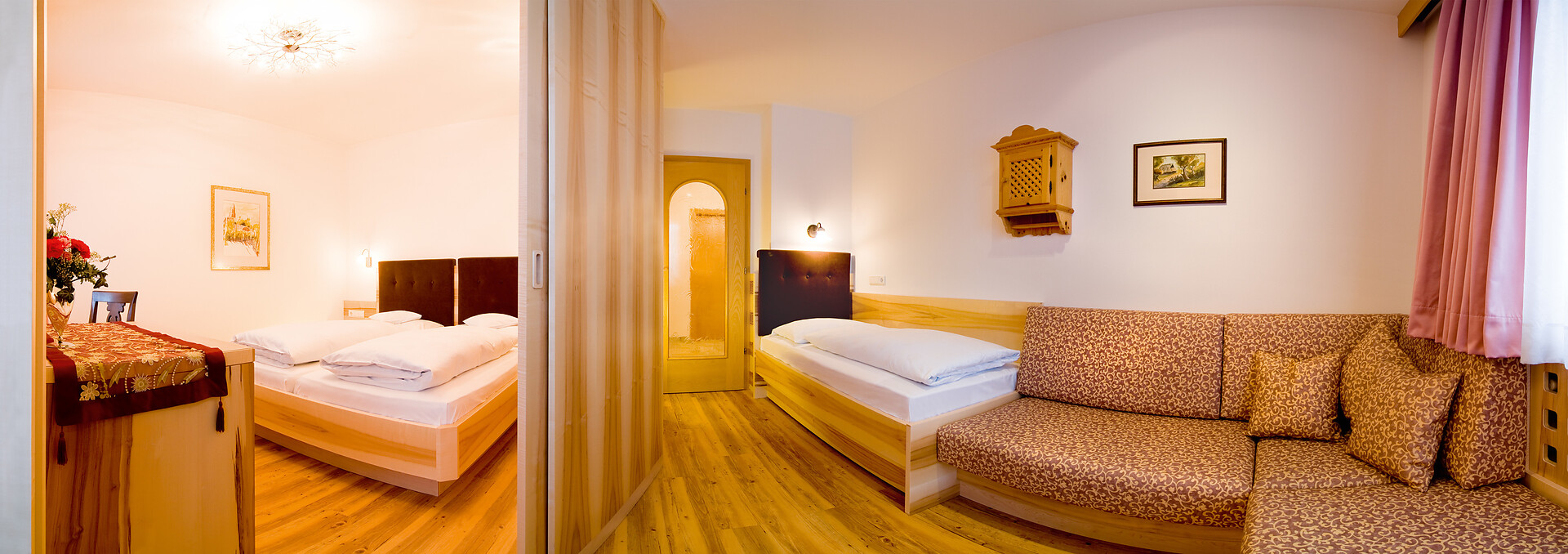In the hotel you will find a house bar with sun terrace and a selection of cakes prepared fresh daily by our pastry chef in the afternoon (included in the price), indoor swimming pool with separate children's pool and panoramic relaxation room with fitness equipment, newly built steam sauna and Finnish sauna, a family playroom with table tennis and table football, playground in the garden and 2 children's playrooms with all-day supervision from 9 a.m. to 9.30 p.m. for children over three years of age and 5 hours of supervision daily for children under three years of age included. Our house hikes and other great events such as the free riding taster lessons on the back of our Haflinger horse Aika at our adjacent riding arena, supervised by our riding instructor; as well as the weekly barbecue evenings in the garden, etc. are very popular.