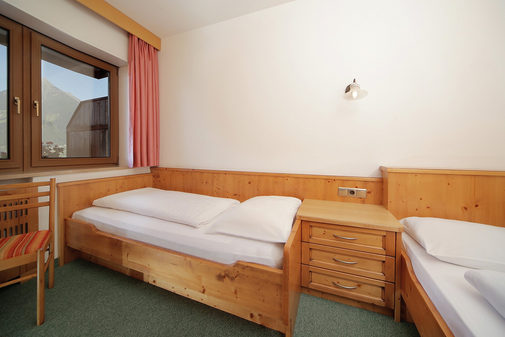 Quietly situated in a side street, directly on the hiking trails. The view stretches across the valley, to the southwest (long hours of sunshine), into the Merano basin. Tastefully furnished rooms, kitchenette, satellite TV, safe, telephone, linen and much more.