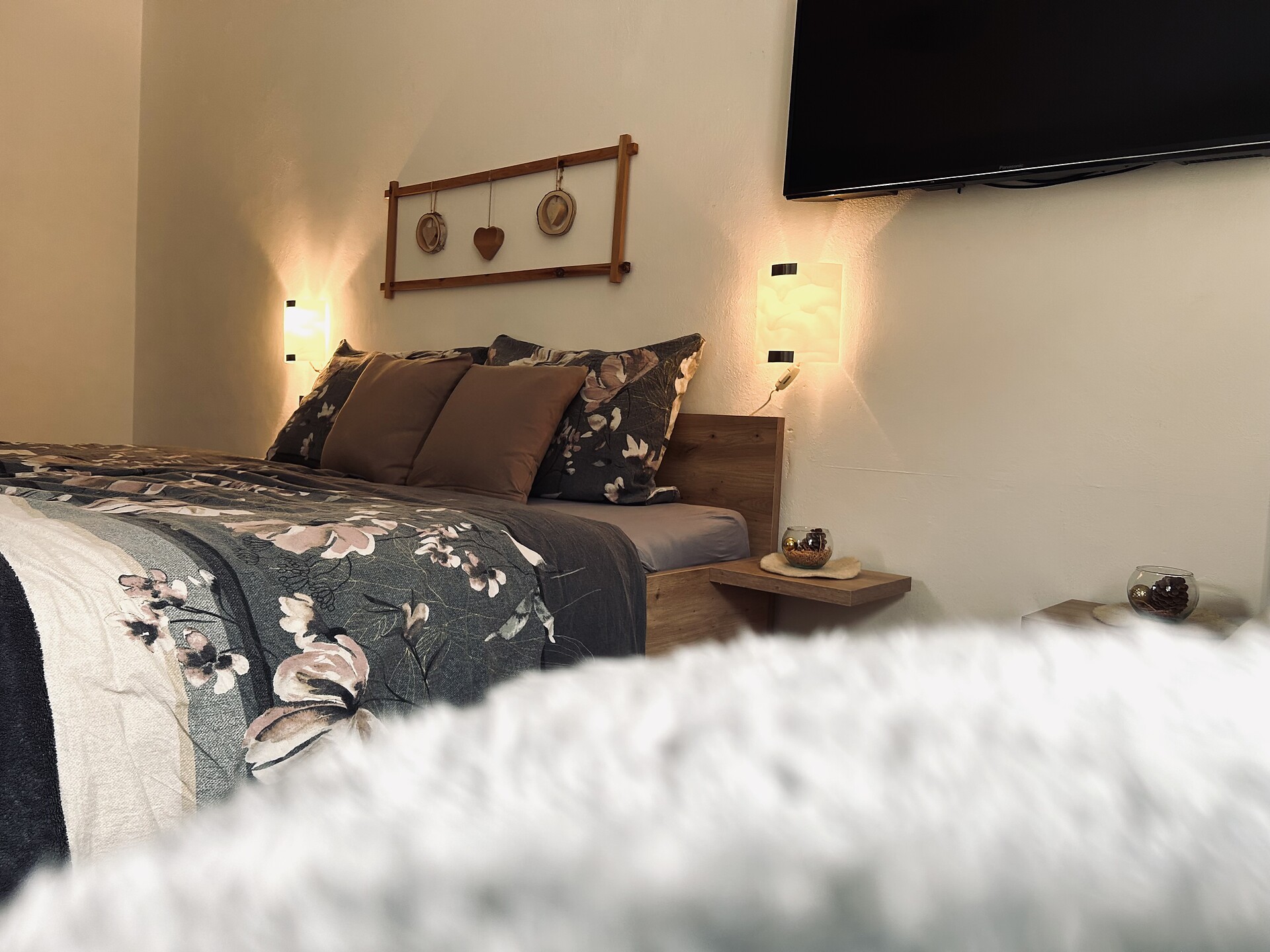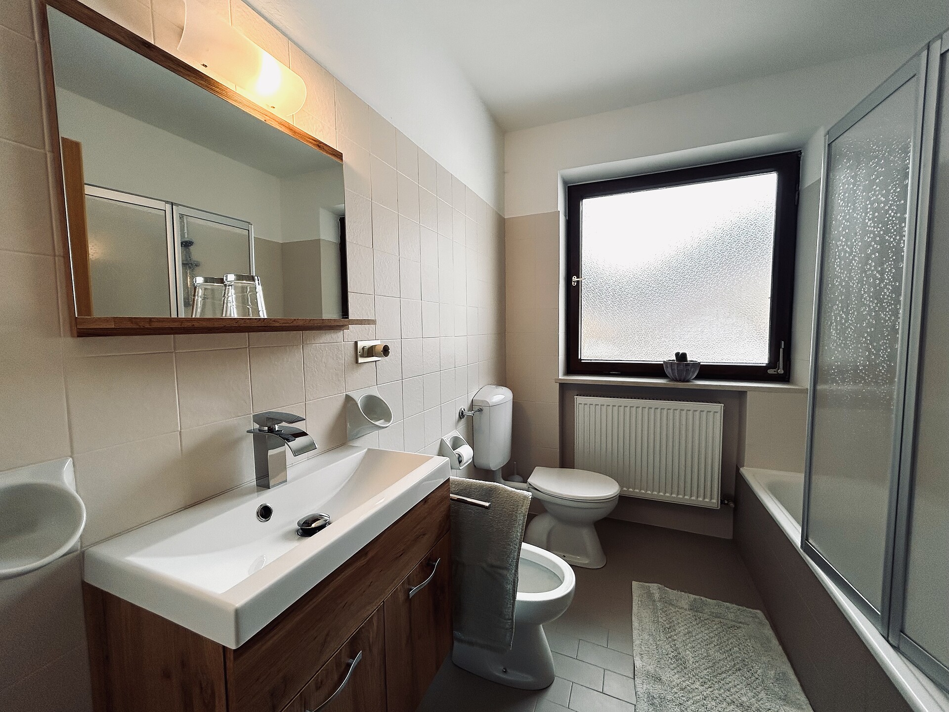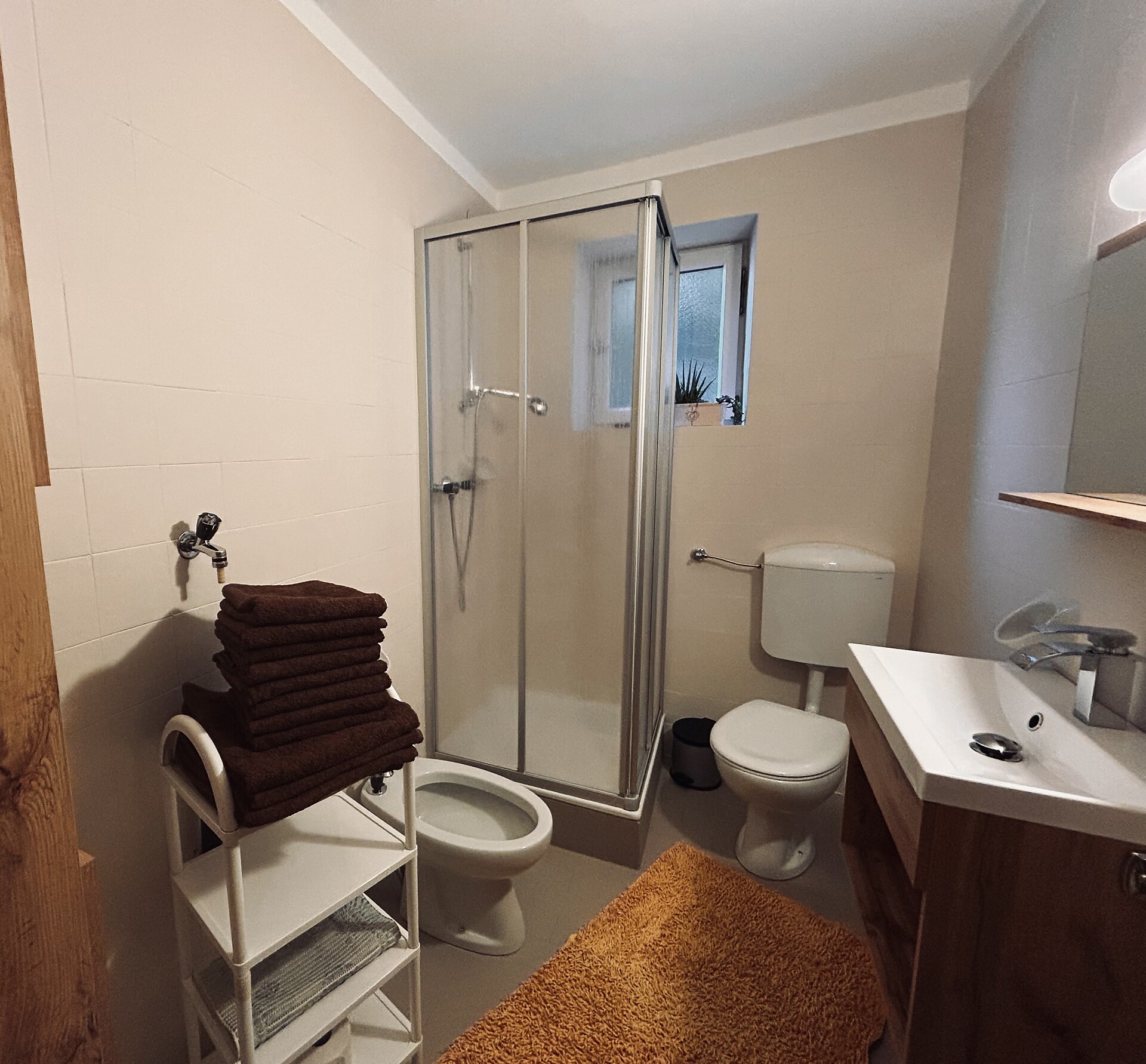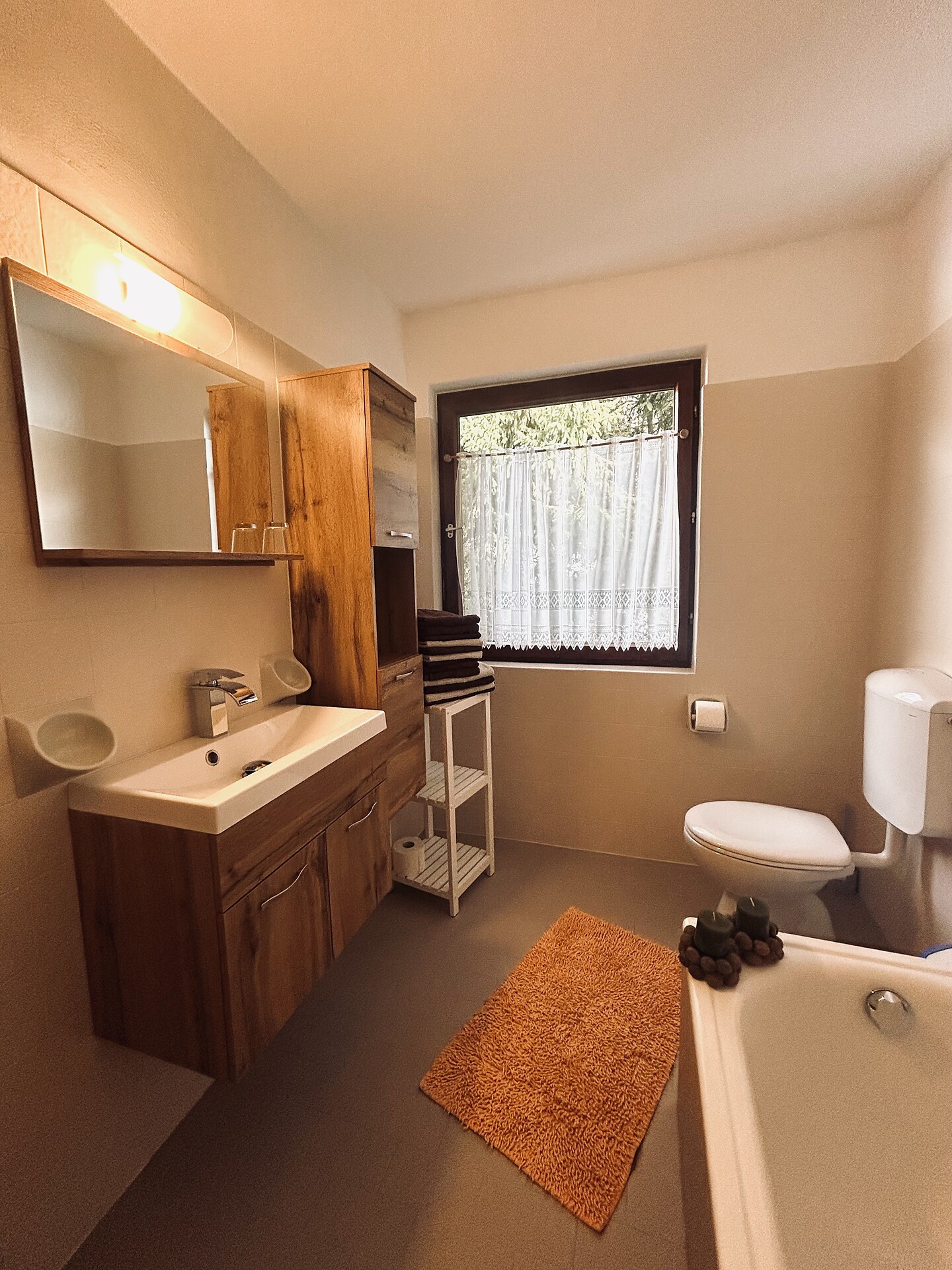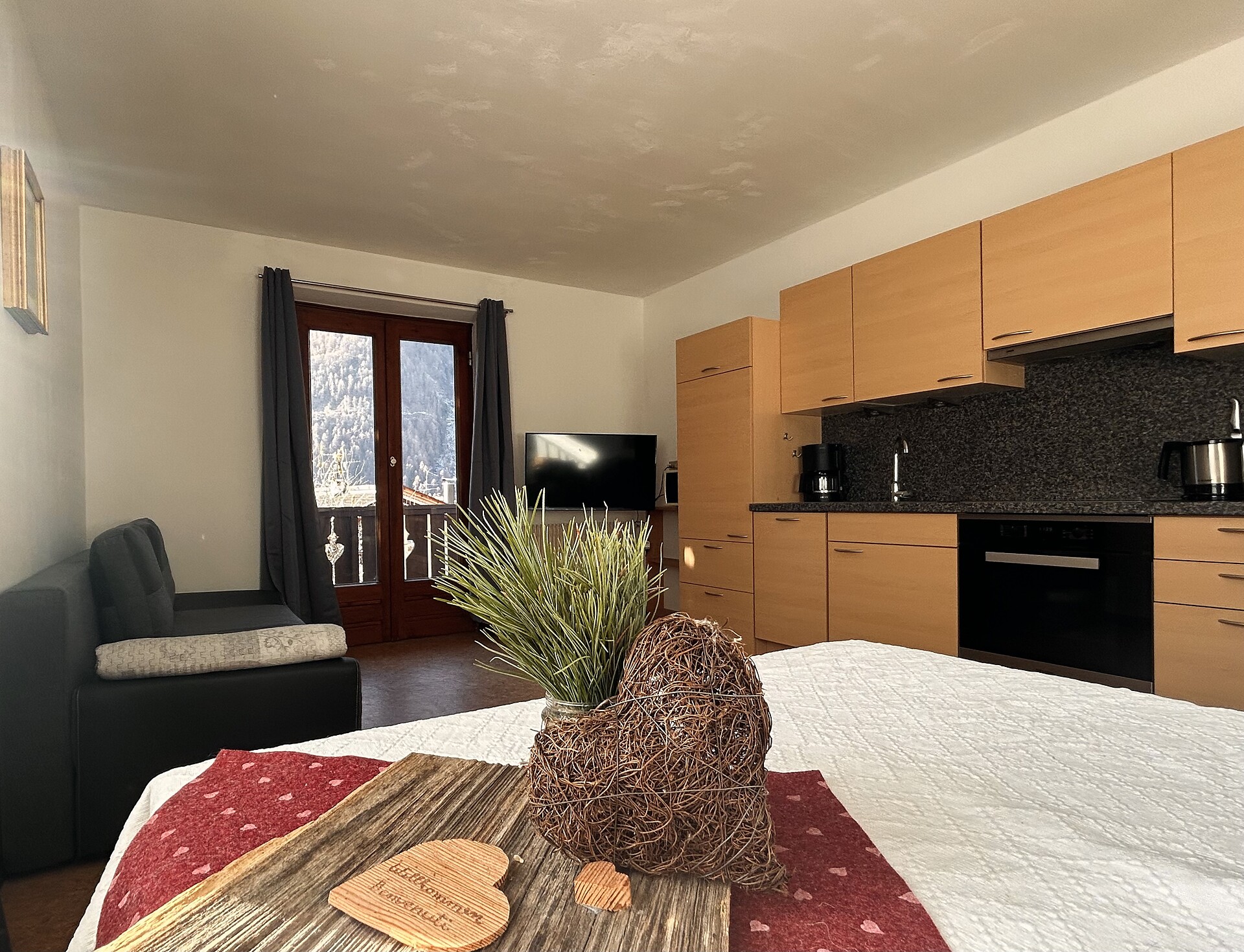 Our 74m ² apartment has a beautiful large kitchen with a south-facing balcony where you can spend pleasant hours to relax. Furthermore, the apartment has two bedrooms with double beds and each with a balcony. The bathroom is equipped with shower / wc and bidet. There is a separate apartment.