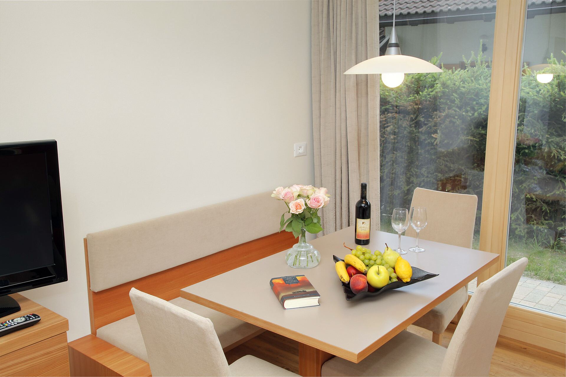Single bed, Double bed , Double sofa bed, Terrace, Garden , Separate living area, Bed linen provided, Safe, Non-smoking apartment, 2 or more bedrooms, Located on the ground floor, Eat-in kitchen, Coffee machine, Dishwasher, Electric cooker, Cutlery provided, Water boiler, Shower/Bath tub, Bidet, Hair dryer, Towels, TV, WLAN, Main building, South view