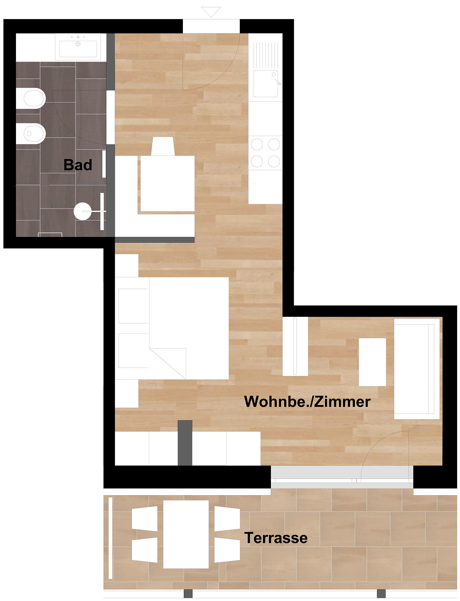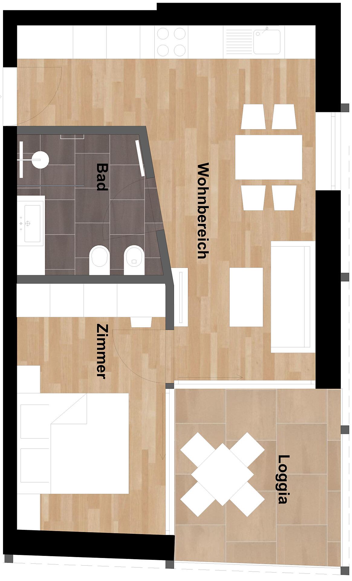 Double bed , Balcony, Terrace, Handicapped accessible, Separate living area, Bed linen provided, Safe, Eat-in kitchen, Coffee machine, Dishwasher, Cutlery provided, Shower/Bath tub, Hair dryer, Towels, TV, Satellite/Cable, WLAN