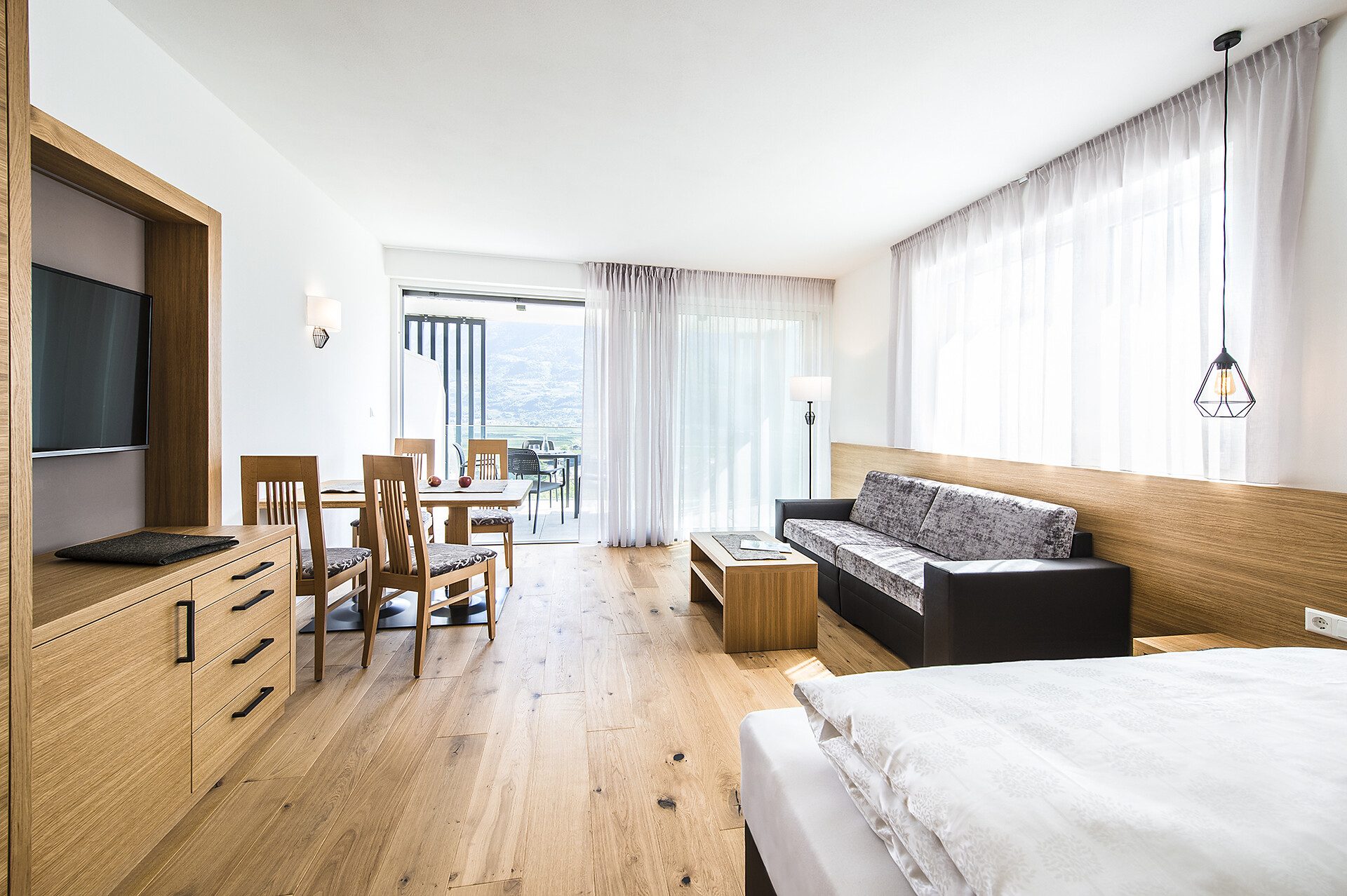 Double bed , Cot, Double sofa bed, Terrace, Air conditioning, Anti-allergic room, Handicapped accessible, Separate living area, Bed linen provided, Safe, Non-smoking apartment, 2 or more bedrooms, Separate kitchen, Eat-in kitchen, Coffee machine, Mini-bar, Dishwasher, Electric cooker, Microwave, Cutlery provided, Hob, Water boiler, Shower/Bath tub, Bidet, Hair dryer, Towels, TV, Satellite/Cable, WLAN, With hotel service, Hotel annex, Panoramic view, South view
