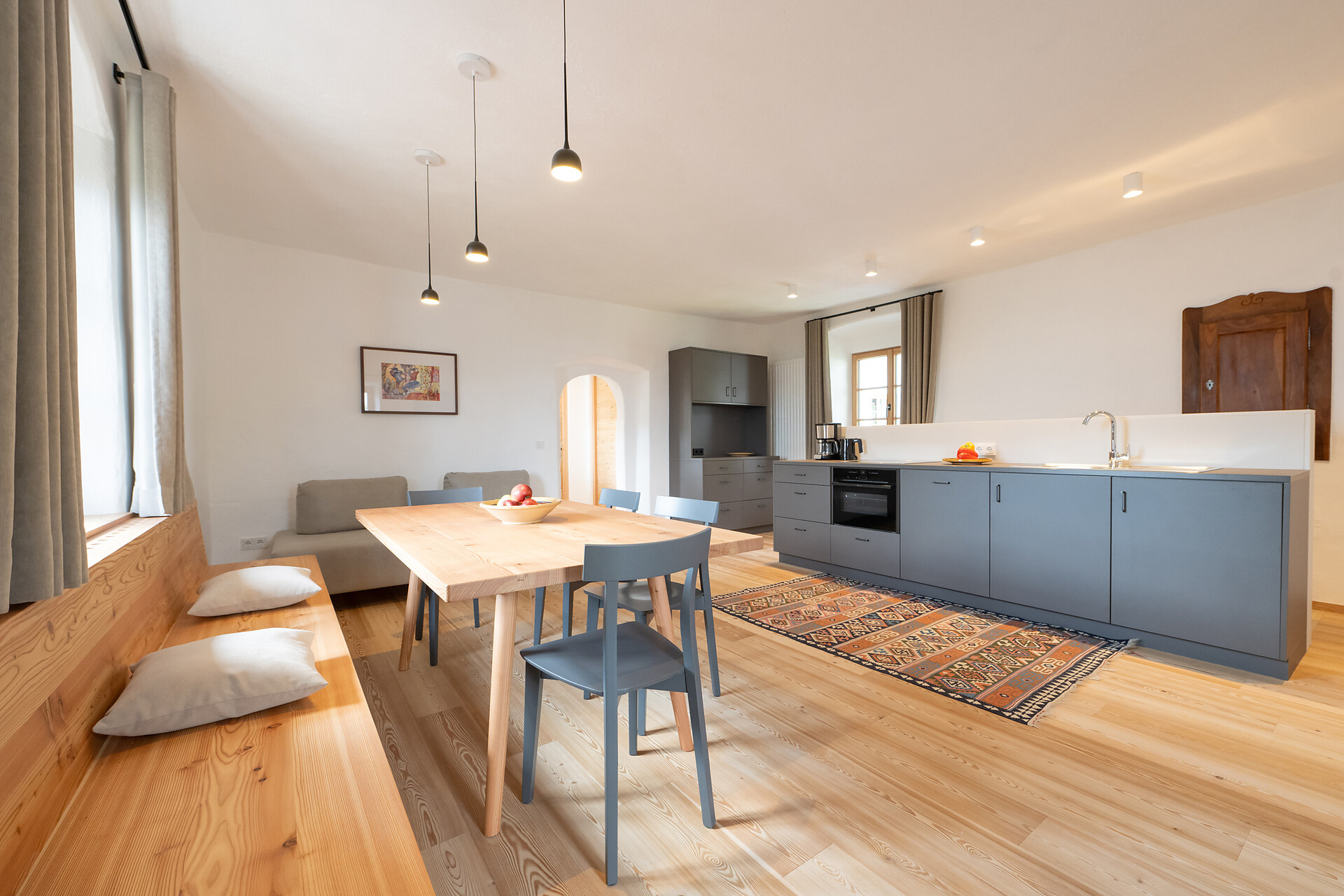 Historical heritage meets modern living culture - that's Pramian 1394, a holiday on a farm that has been successfully run for generations. The property is a holiday home that focuses on the essentials, with three generously proportioned and fully equipped flats forming the perfect retreat between old walls.