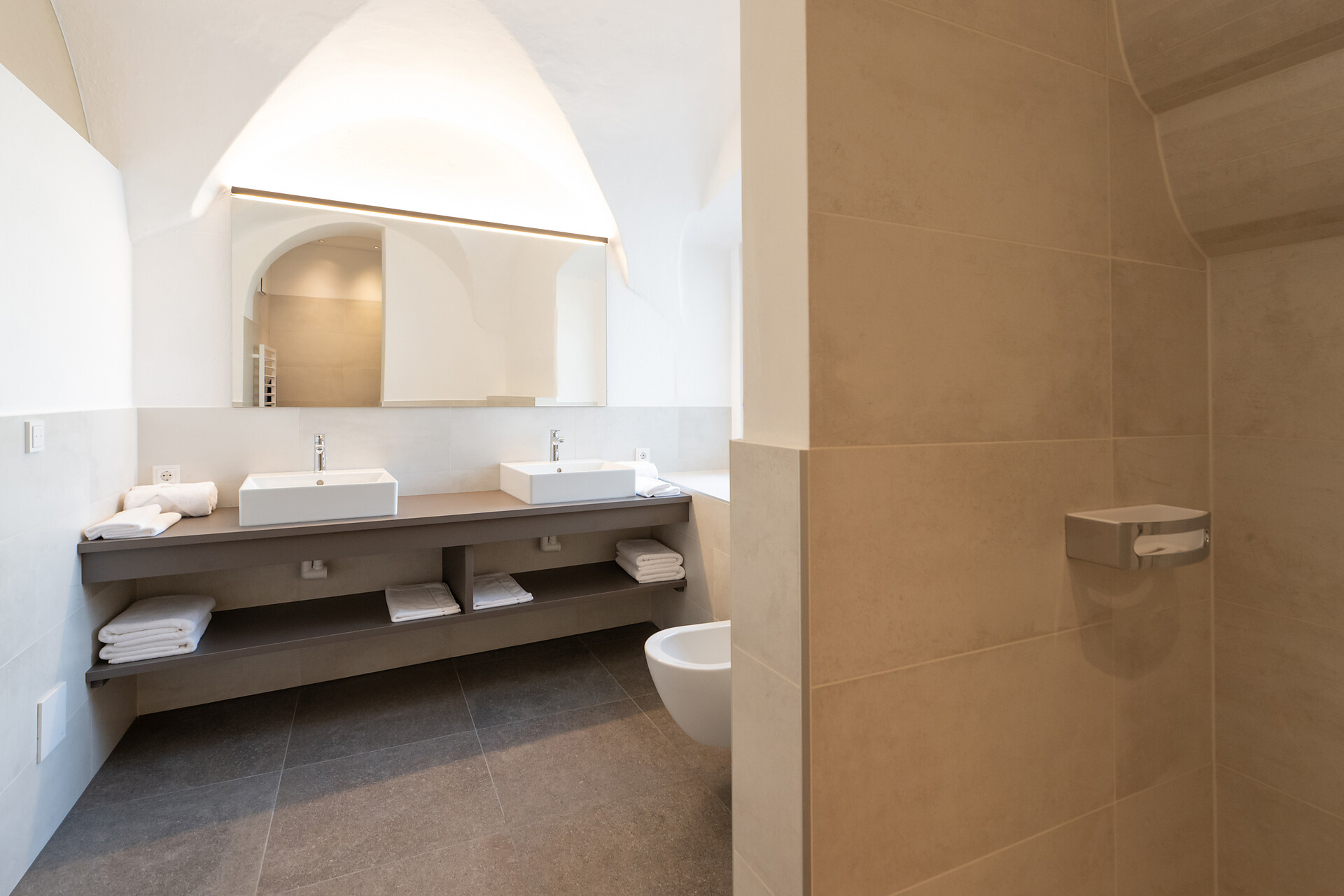 Double bed , Terrace, Bed linen provided, Safe, 2 or more bedrooms, Eat-in kitchen, Coffee machine, Dishwasher, Electric cooker, Cutlery provided, Hob, Water boiler, Oven, Shower/Bath tub, 2 or more bathrooms, Bidet, Hair dryer, Towels, TV, Satellite/Cable, WLAN, Internet access, Cleaning upon request, Final cleaning included, Main building, Panoramic view
