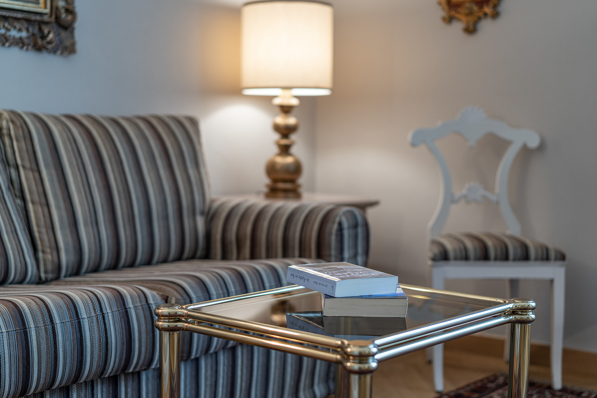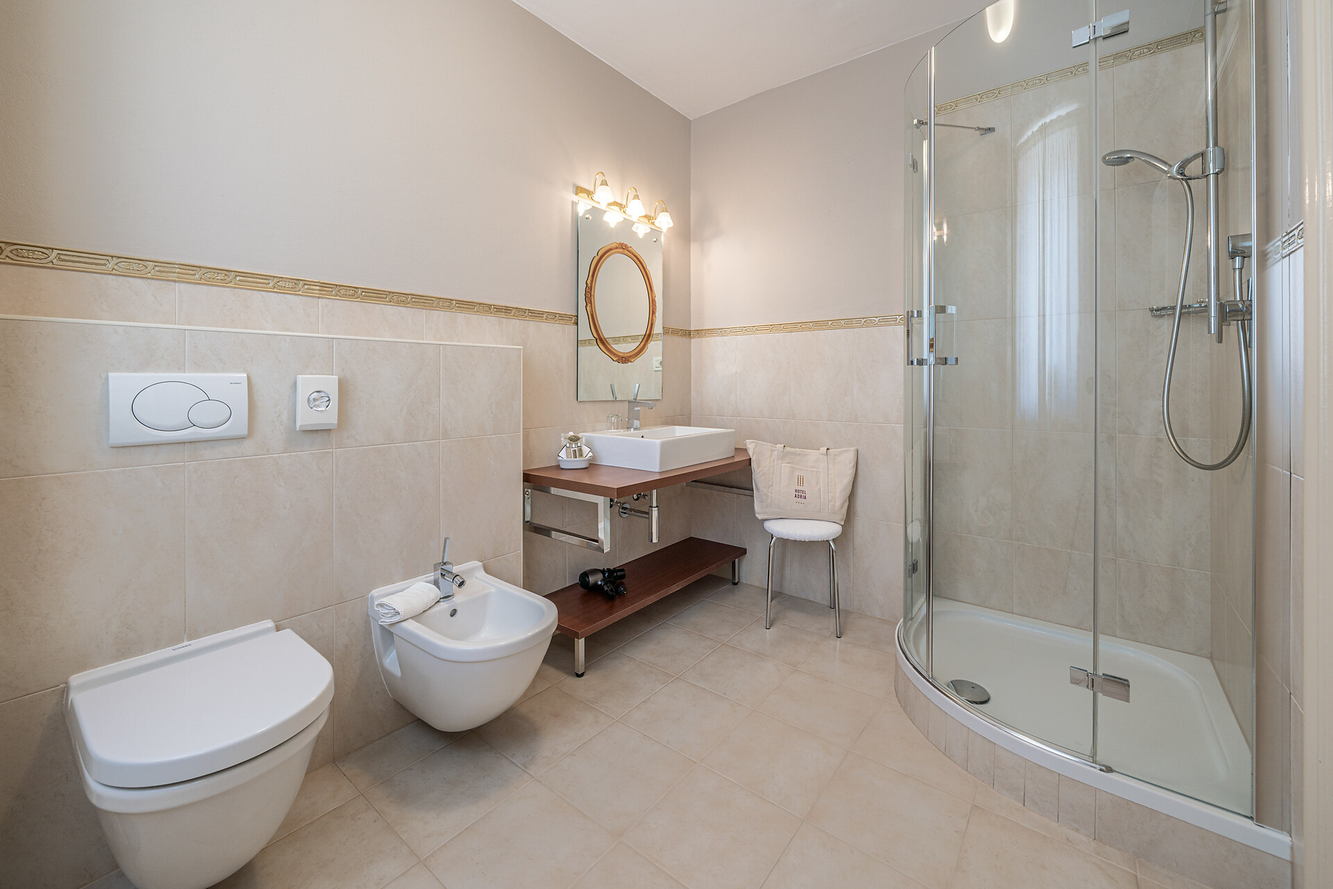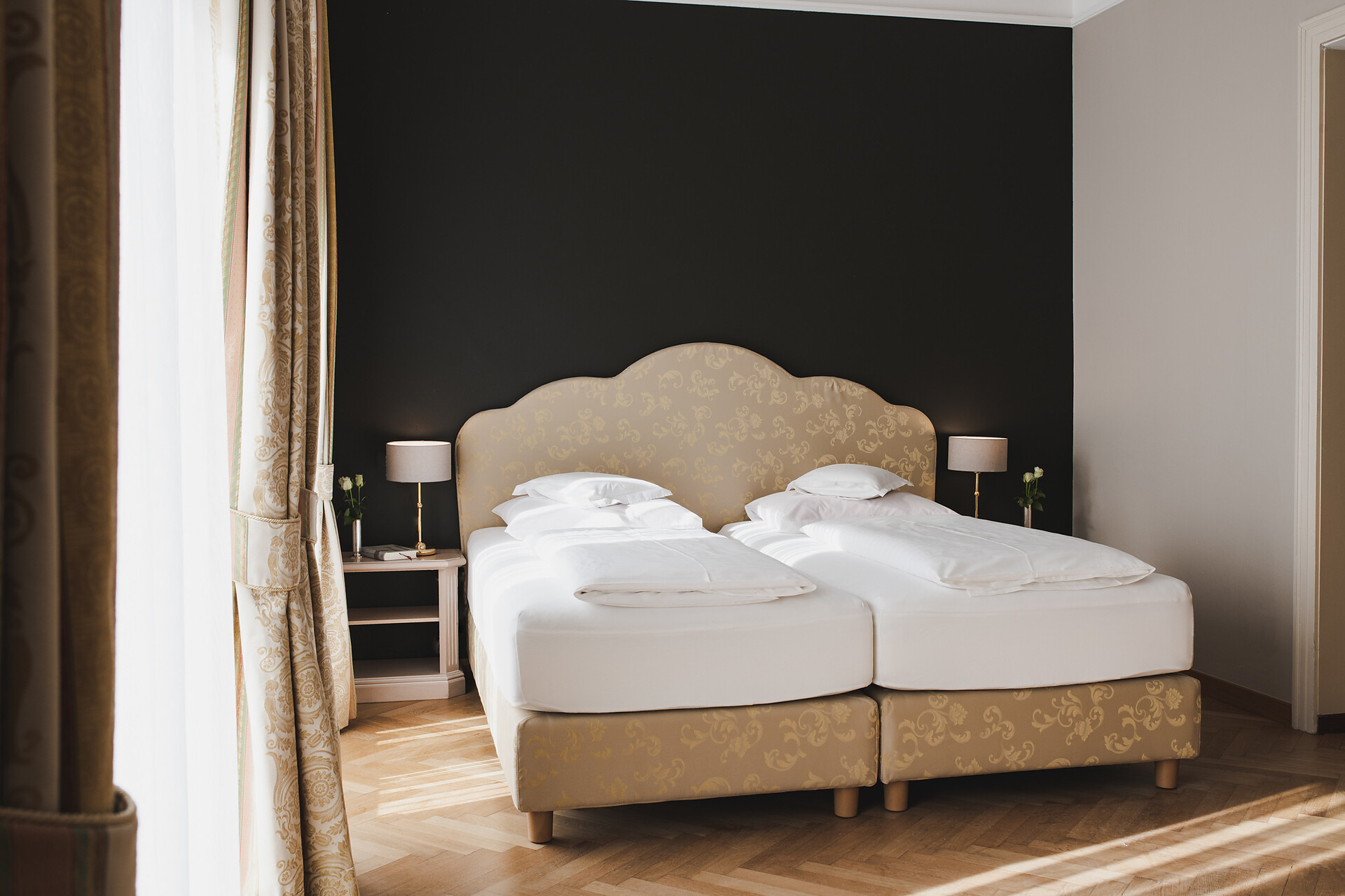 Suite, Double bed , Extra bed, Cot, Sofa bed, Balcony, Mini-bar, Safe, Tea/Coffee machine, Shower / Bath tub, Separate WC, Bidet, Hair dryer, Bathrobe, Bathtub, TV, Satellite/Cable, WLAN, Internet access, Main building, Hotel annex, South view