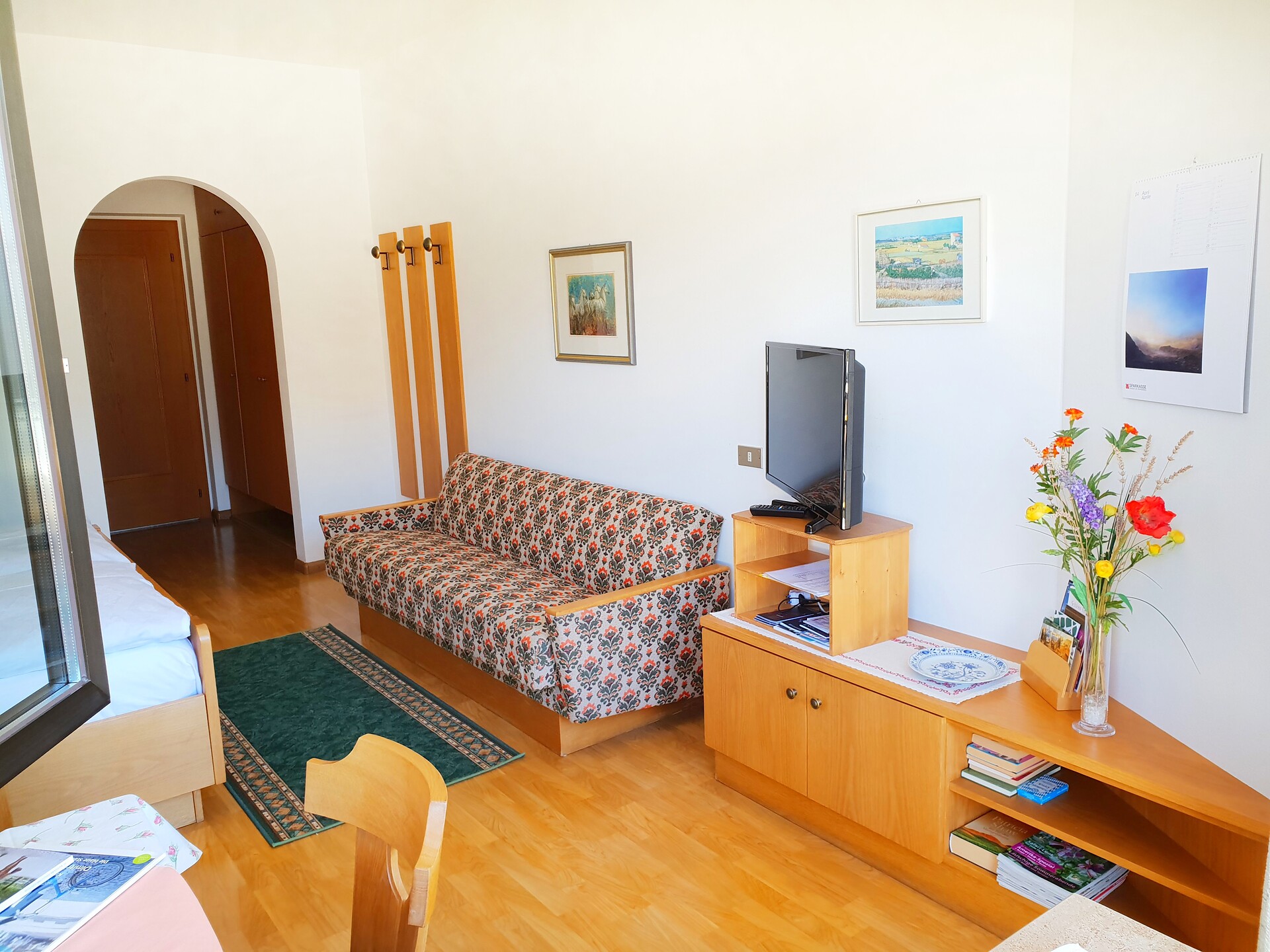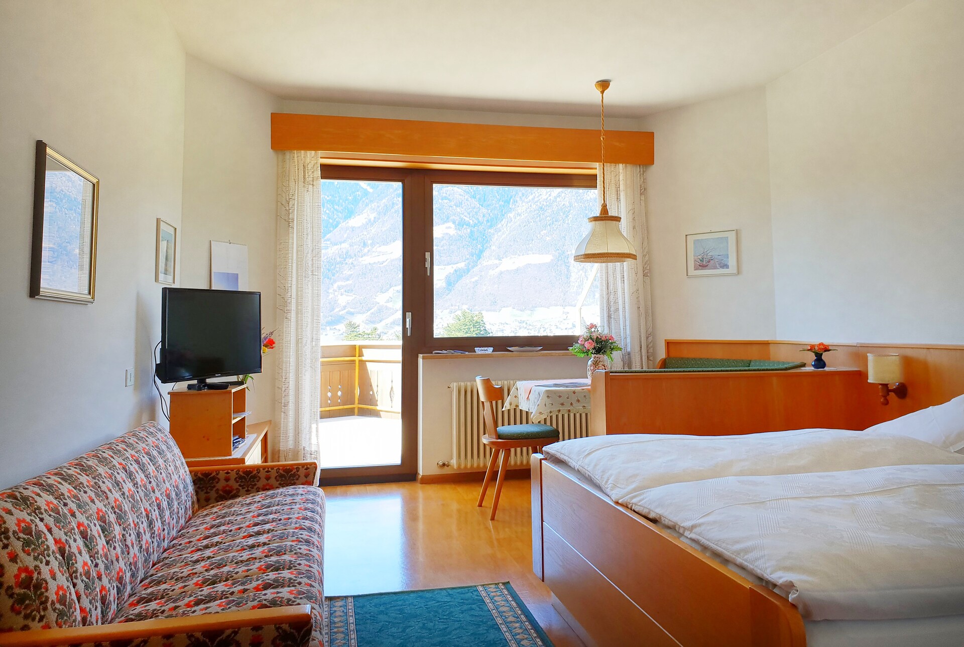 Our 5 large double rooms feature a TV with SAT (40 German-language channels), spacious bathroom with shower, toilet, bidet, and large south-facing balcony. Breakfast is rich and wholesome, consisting of homemade jam from the fruit trees in our garden, homemade whole grain bread, freshly squeezed apple-carrot juice. You can find more information on our website.