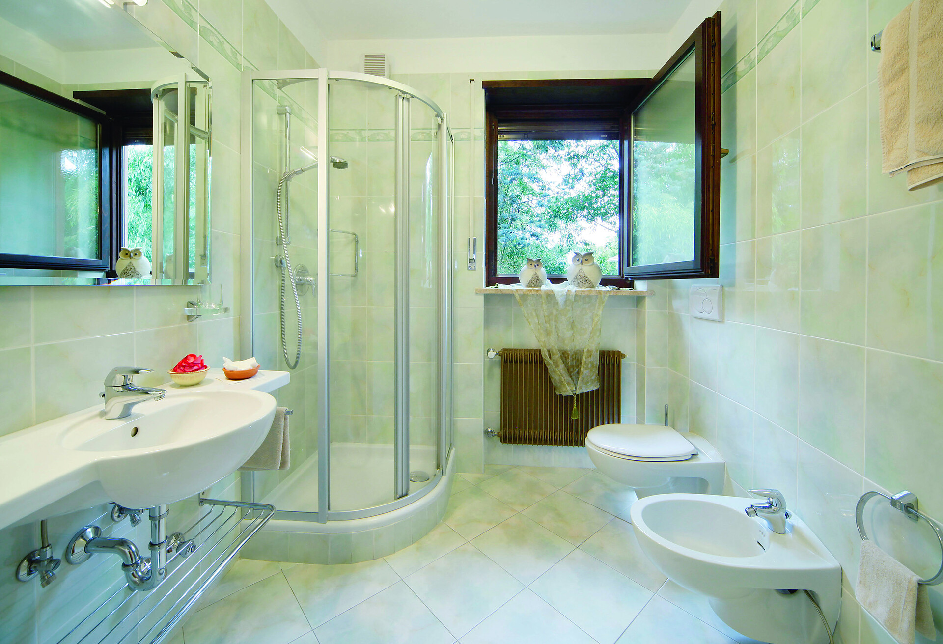 Bathroom 1: window, shower/WC/bidet, hairdryer, make-up mirror
