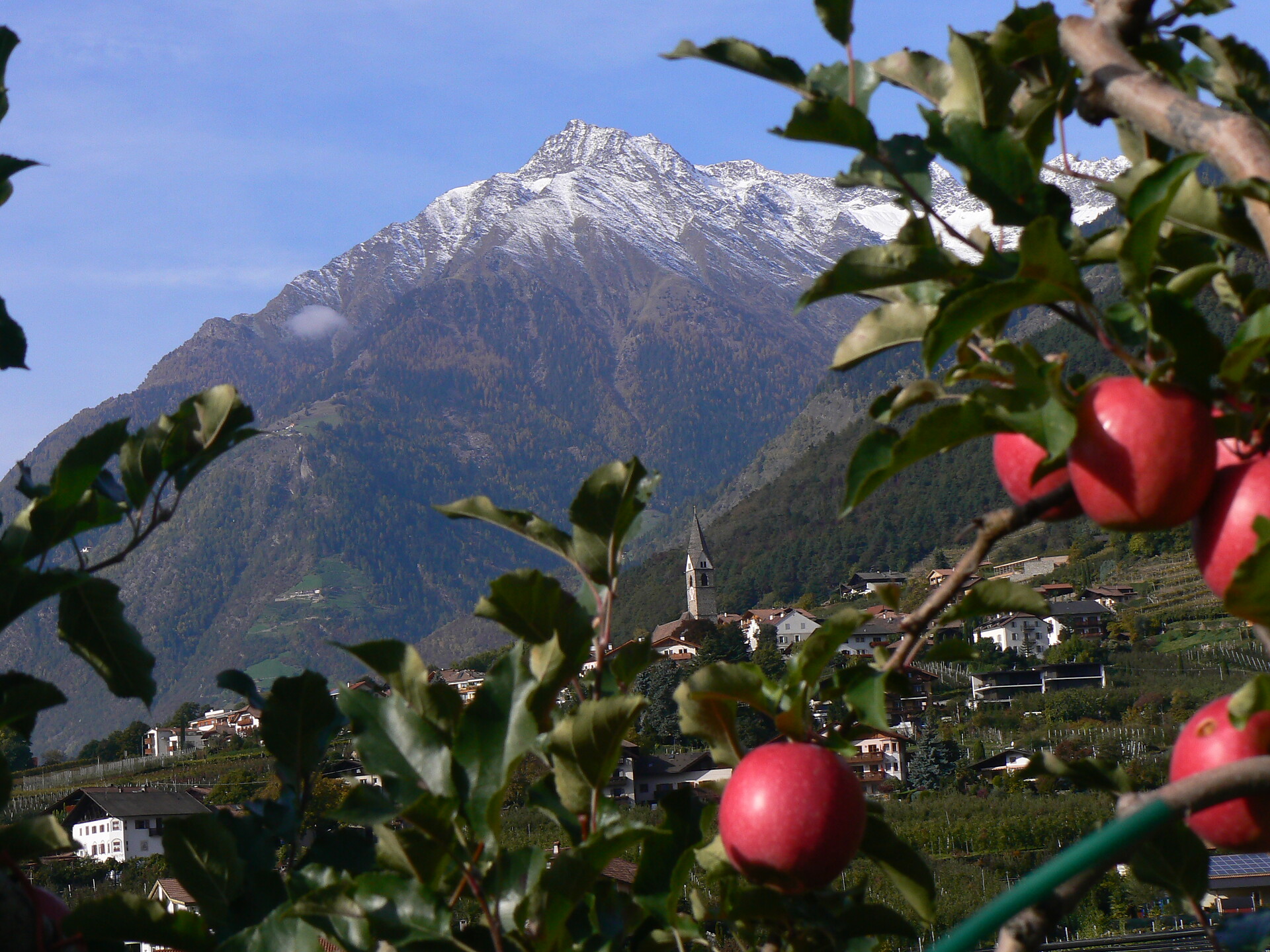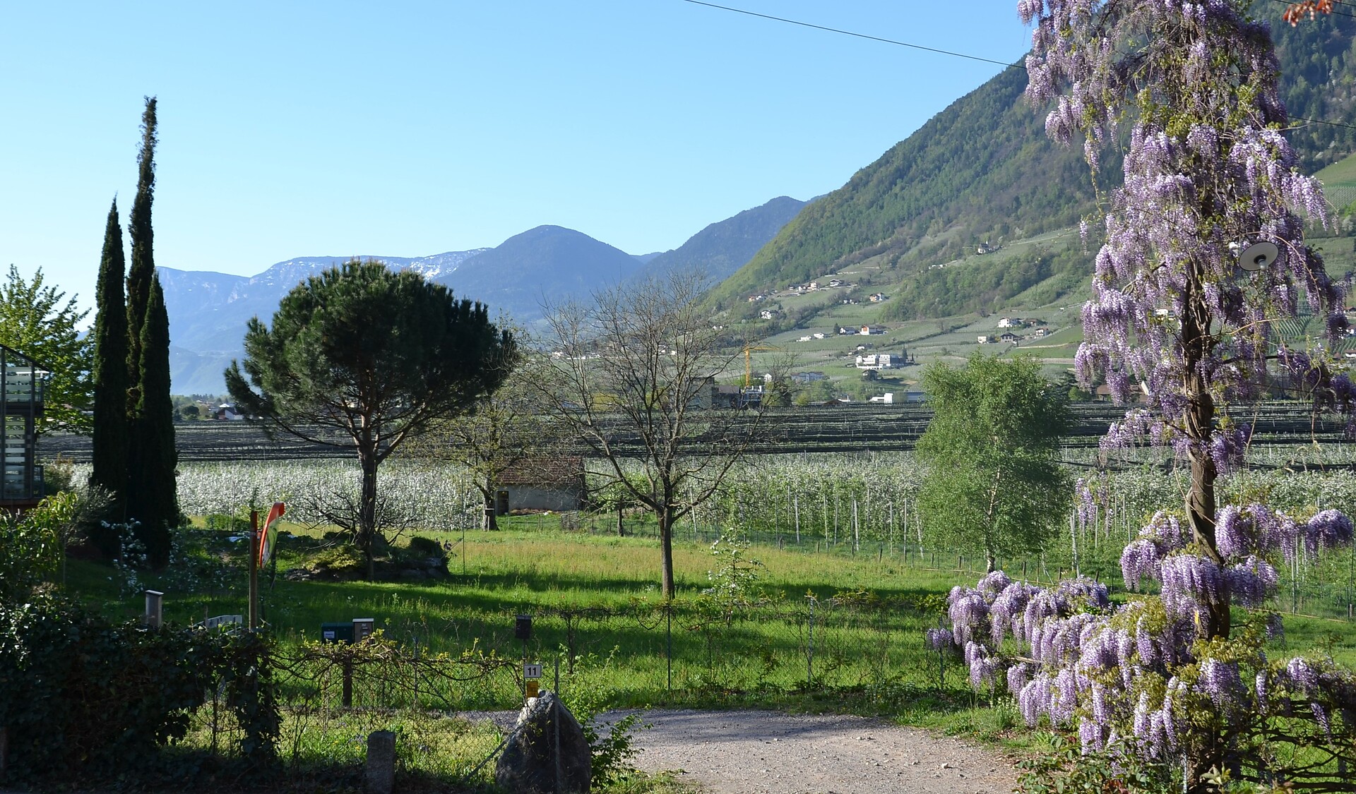 You will find us in the district of Gratsch/Quarazze, below Castle Tyrol, surrounded by our own orchards with a wonderful view of the Valley, good bus connections, beautiful walking and hiking trails start 10 minutes away on foot, e.g. the famous “Tappeinerweg” along the “Küchelberg” to the town centre 3 km away with the MeranO Thermal Baths.