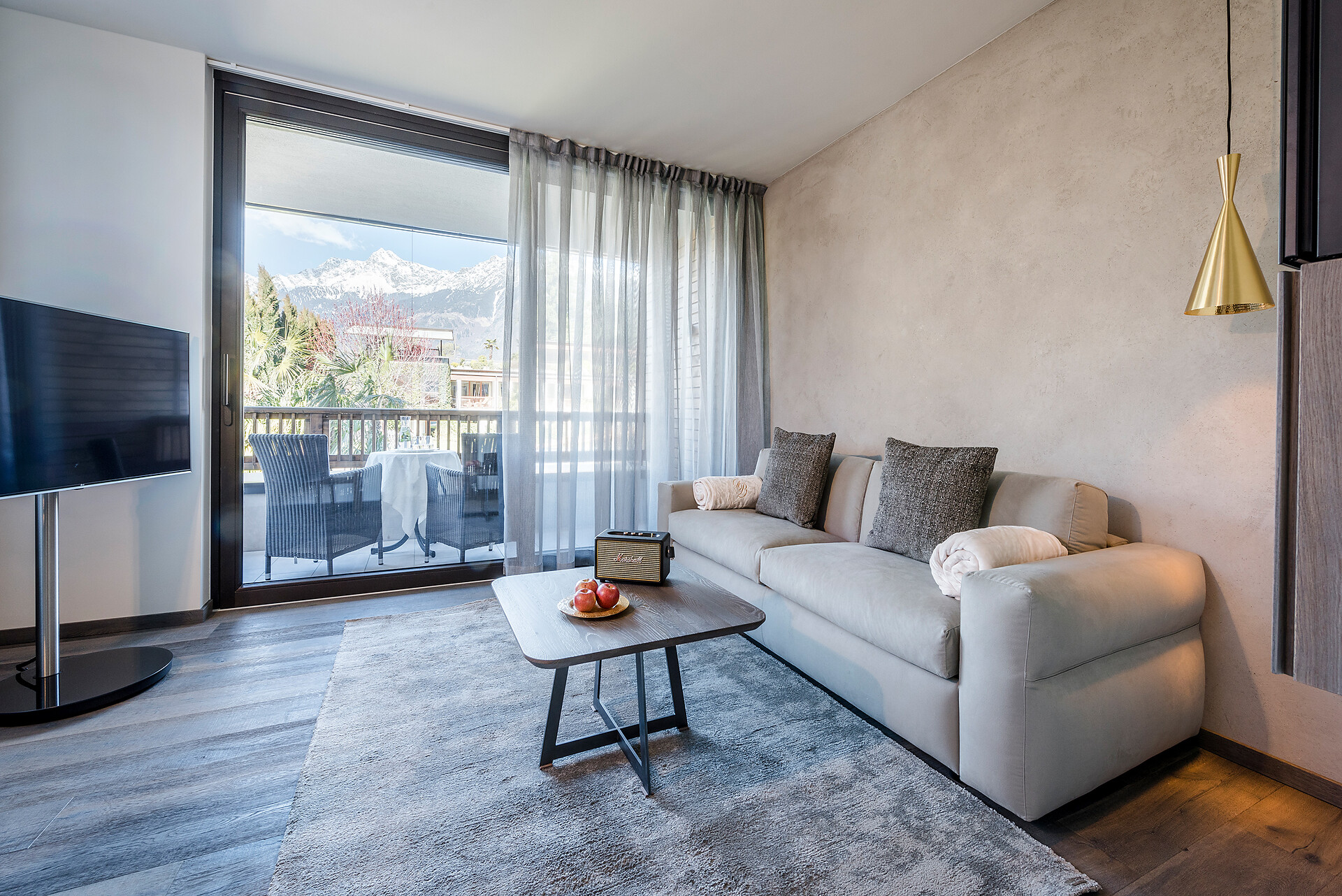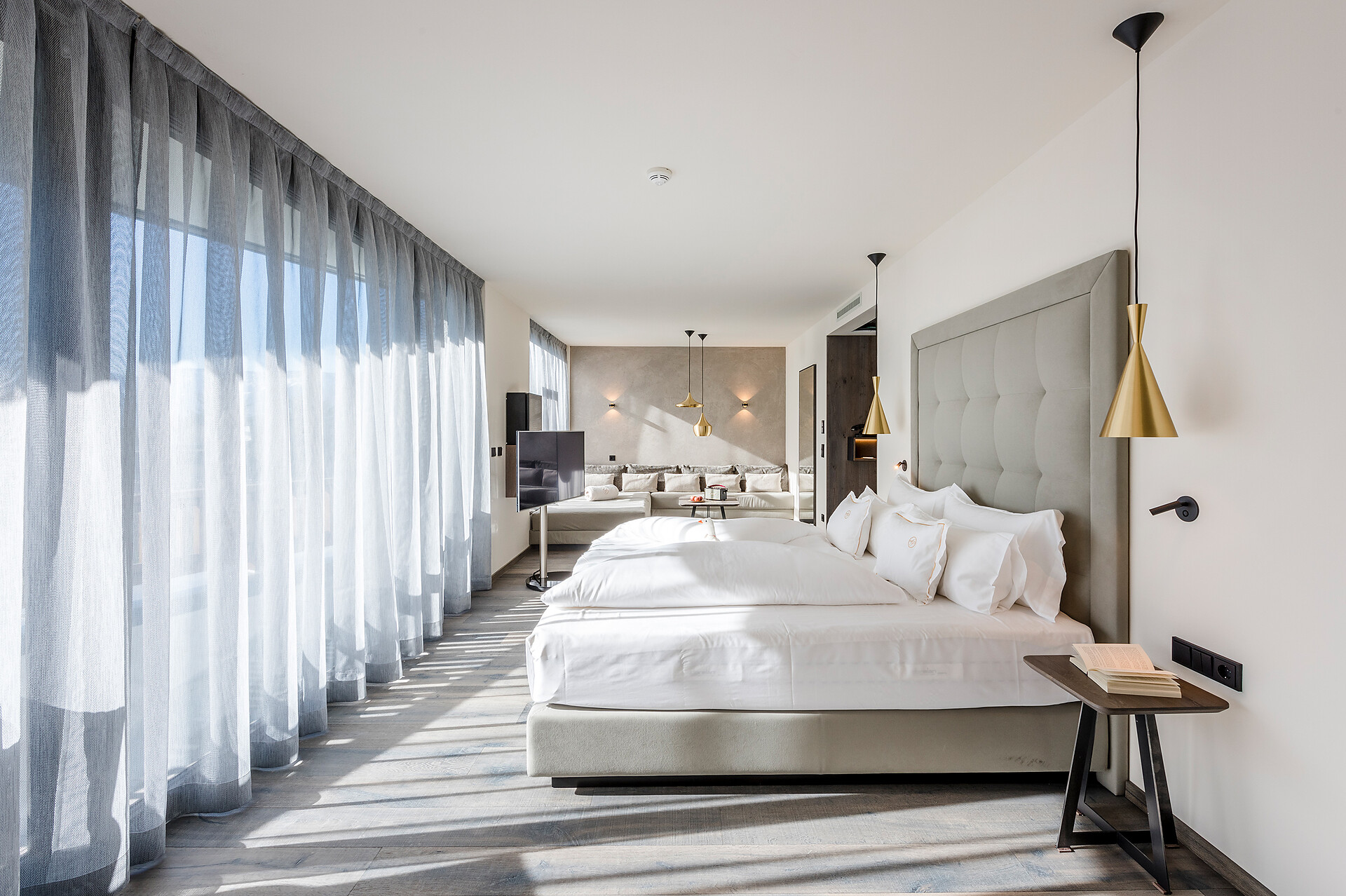 Suite, Double bed , Balcony, Air conditioning, Living area, Mini-bar, Safe, Non-smoking room, Shower / Bath tub, Separate WC, Hair dryer, Bathrobe, TV, Satellite/Cable, WLAN, Internet access, Panoramic view, South view