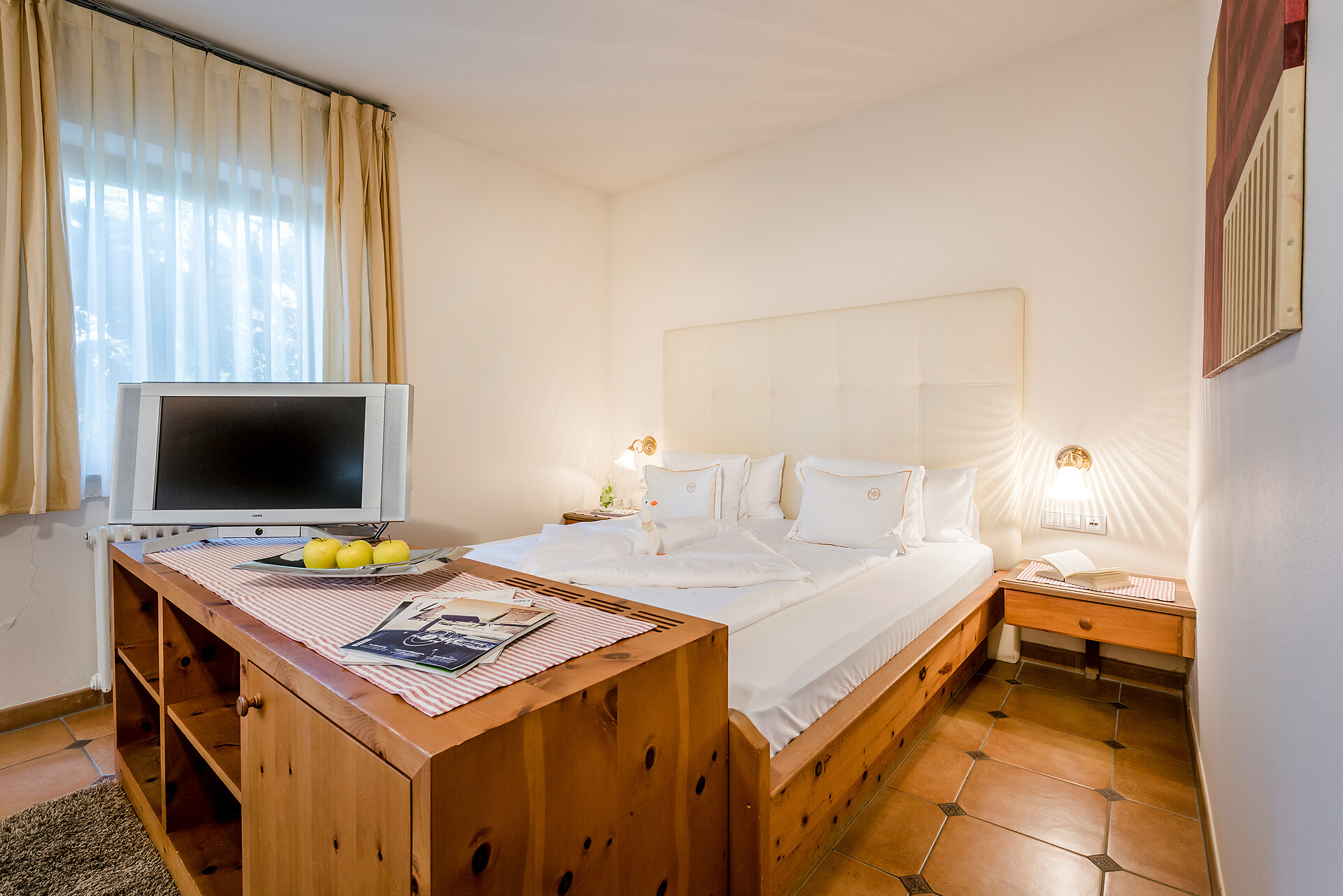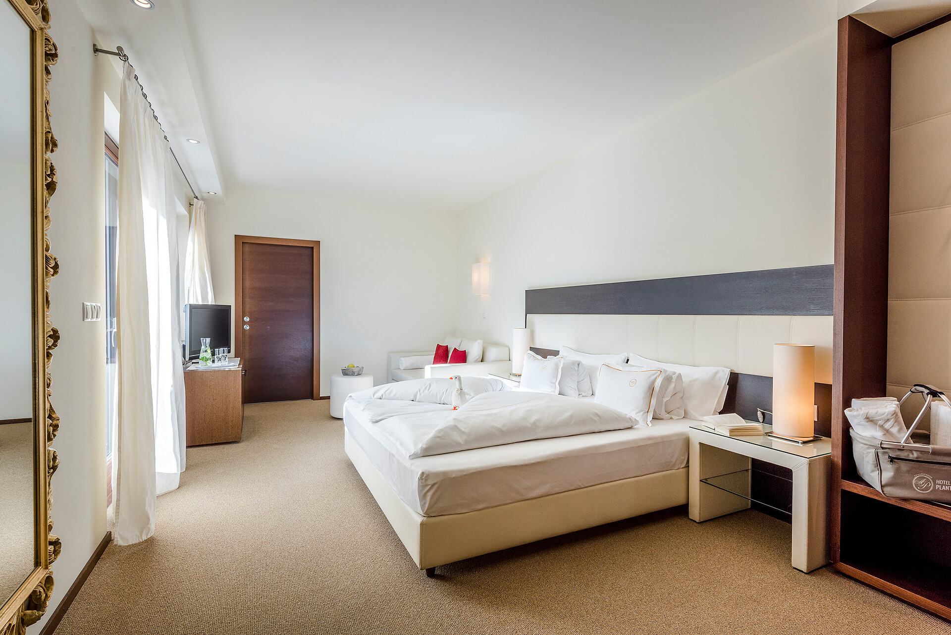 Double room, Double bed , Sofa bed, Terrace, Air conditioning, Living area, Anti-allergic room, Mini-bar, Safe, Non-smoking room, Shower / Bath tub, Bidet, Hair dryer, Bathrobe, TV, Satellite/Cable, WLAN, Internet access, Main building, South view