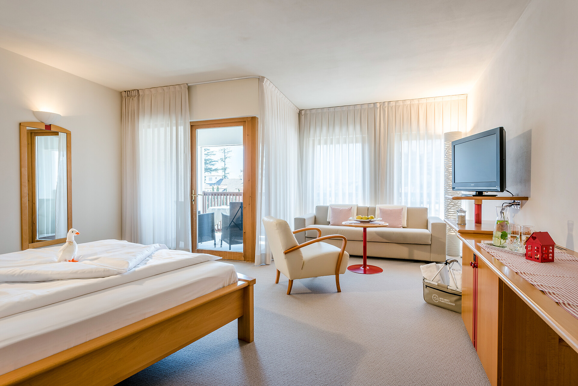 Suite, Double bed , Sofa bed, Balcony, Air conditioning, Living area, Anti-allergic room, Handicapped accessible, Mini-bar, Safe, Non-smoking room, Shower / Bath tub, Separate WC, Bidet, Hair dryer, Bathrobe, TV, Satellite/Cable, WLAN, Internet access, Hotel annex, Panoramic view, South view