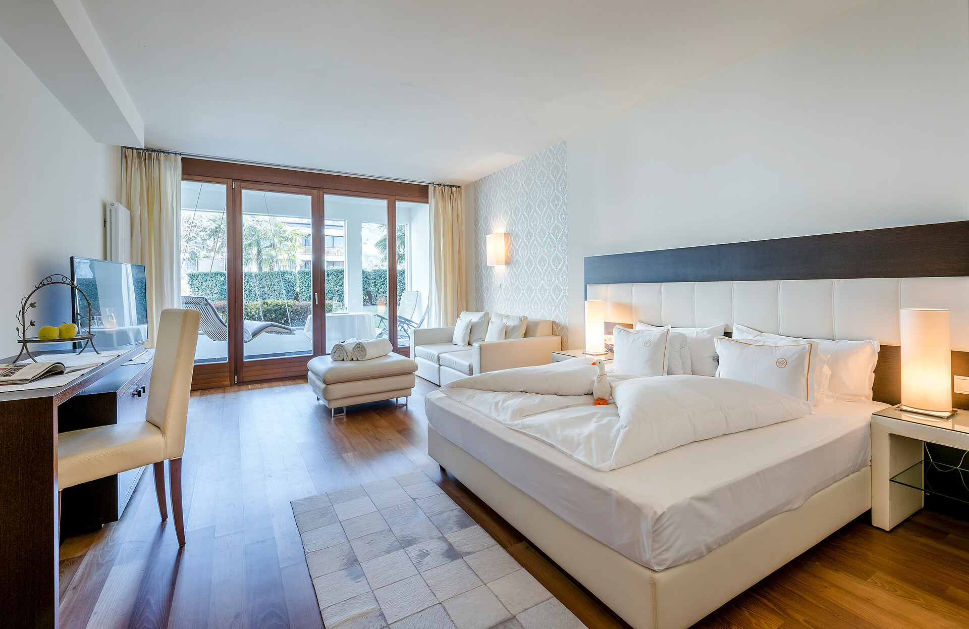 Suite, Double bed , Terrace, Air conditioning, Living area, Mini-bar, Safe, Non-smoking room, Shower / Bath tub, Separate WC, Hair dryer, Bathrobe, TV, Satellite/Cable, WLAN, Internet access, Main building, Panoramic view, South view
