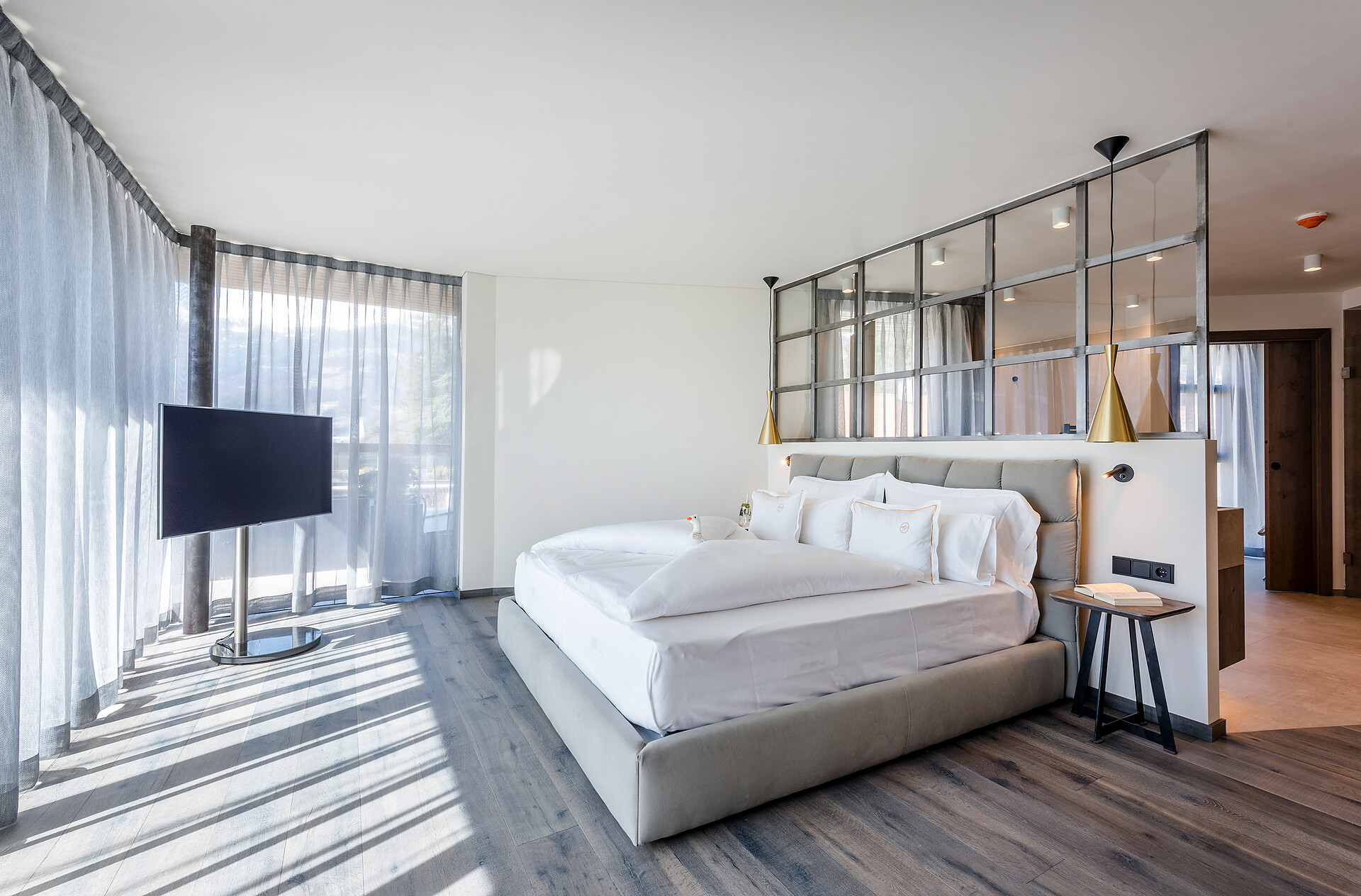 Suite, Double bed , Terrace, Air conditioning, Living area, Handicapped accessible, Mini-bar, Safe, Non-smoking room, Shower / Bath tub, Separate WC, Bidet, Hair dryer, Bathrobe, HiFi, TV, Satellite/Cable, WLAN, Hotel annex, Panoramic view