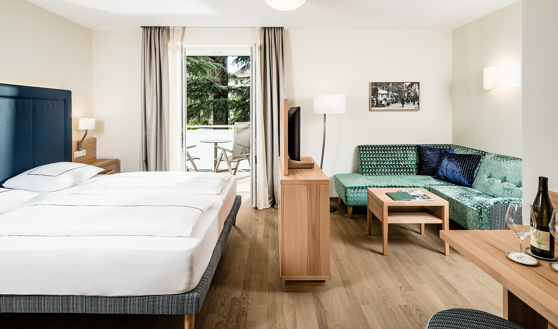 The single room Superior is equipped with: Parquet floor, south-facing balcony, shower, bidet, WC, hairdryer, bathrobe & slippers, toiletries by Lalique, telephone, TV, WLAN, safe, minibar and air conditioning.