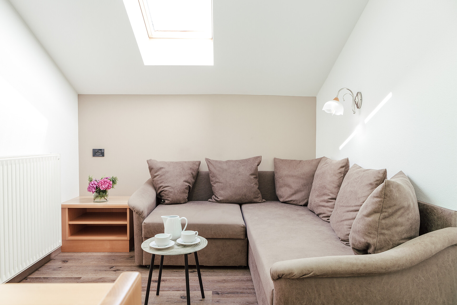 Double bed , Double sofa bed, Balcony, Bed linen provided, Safe, Non-smoking apartment, Eat-in kitchen, Coffee machine, Electric cooker, Microwave, Cutlery provided, Water boiler, Shower/Bath tub, Bidet, Hair dryer, Towels, TV, Satellite/Cable, WLAN, Internet access, Cleaning upon request, Final cleaning included, Main building, South view