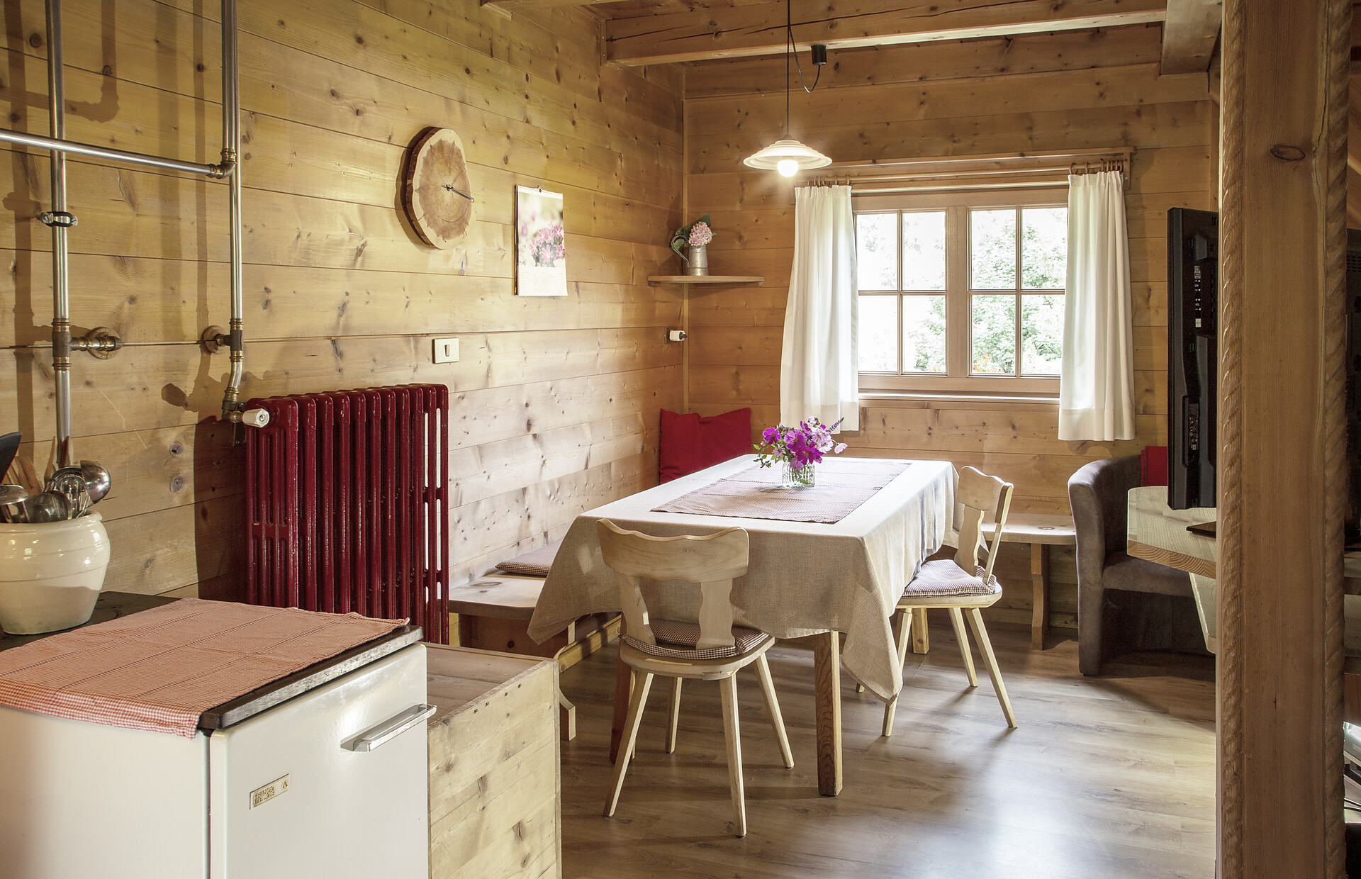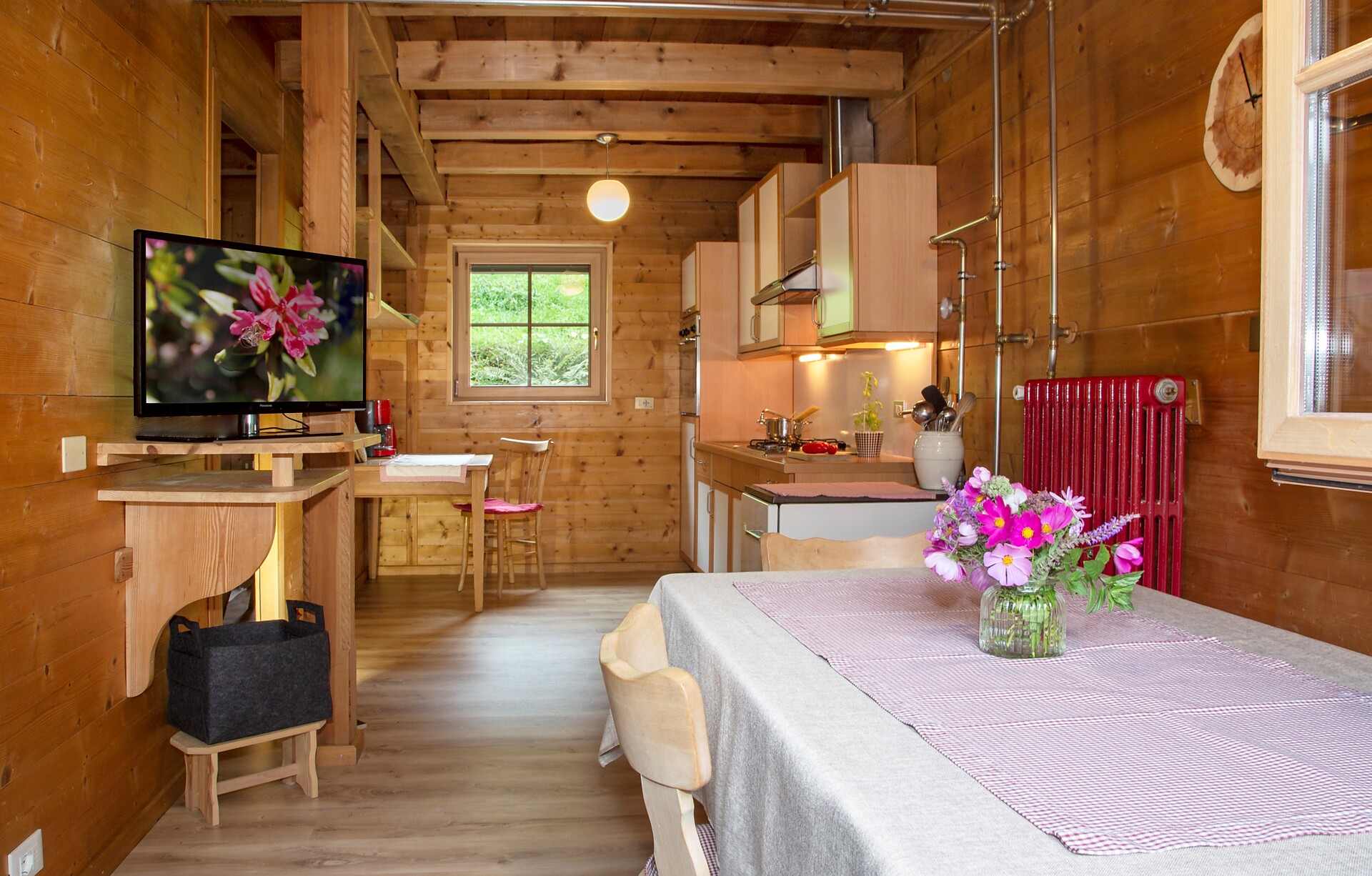 Our holiday home is located in a very quiet area surrounded by greenery, approx. 50 metres from our farm. It was converted from a former watermill into a cosy holiday home (approx. 85 m²) and can accommodate 2-5 people. The untreated wood and simple furnishings give the cottage a cosy, peaceful atmosphere. The house has a kitchen-diner, bedroom, bathroom and two attic rooms. Outside on the lawn, you can enjoy sunny hours in a deckchair and fire up the barbecue. For breakfast, you can enjoy products from our farm in the breakfast basket.