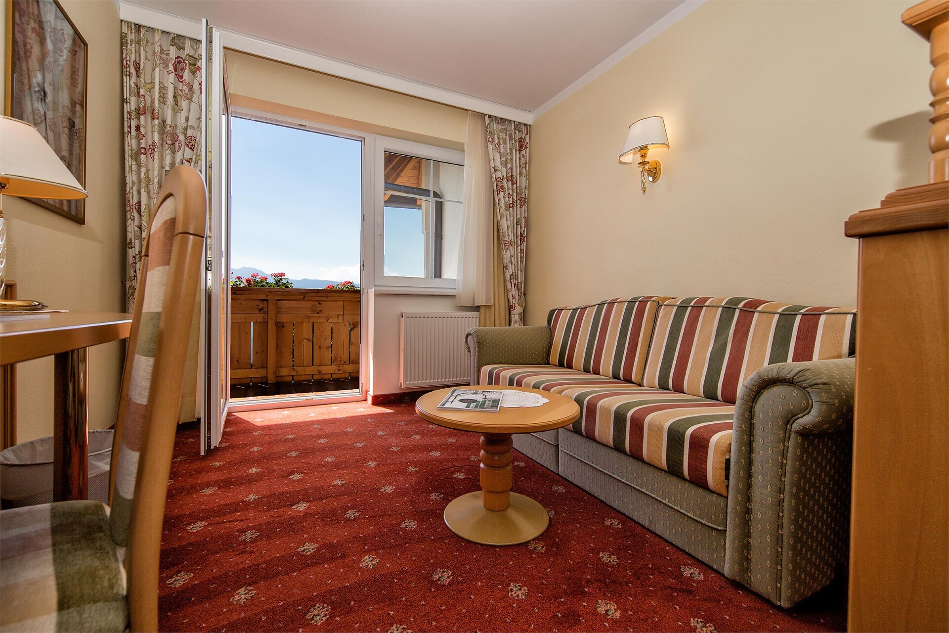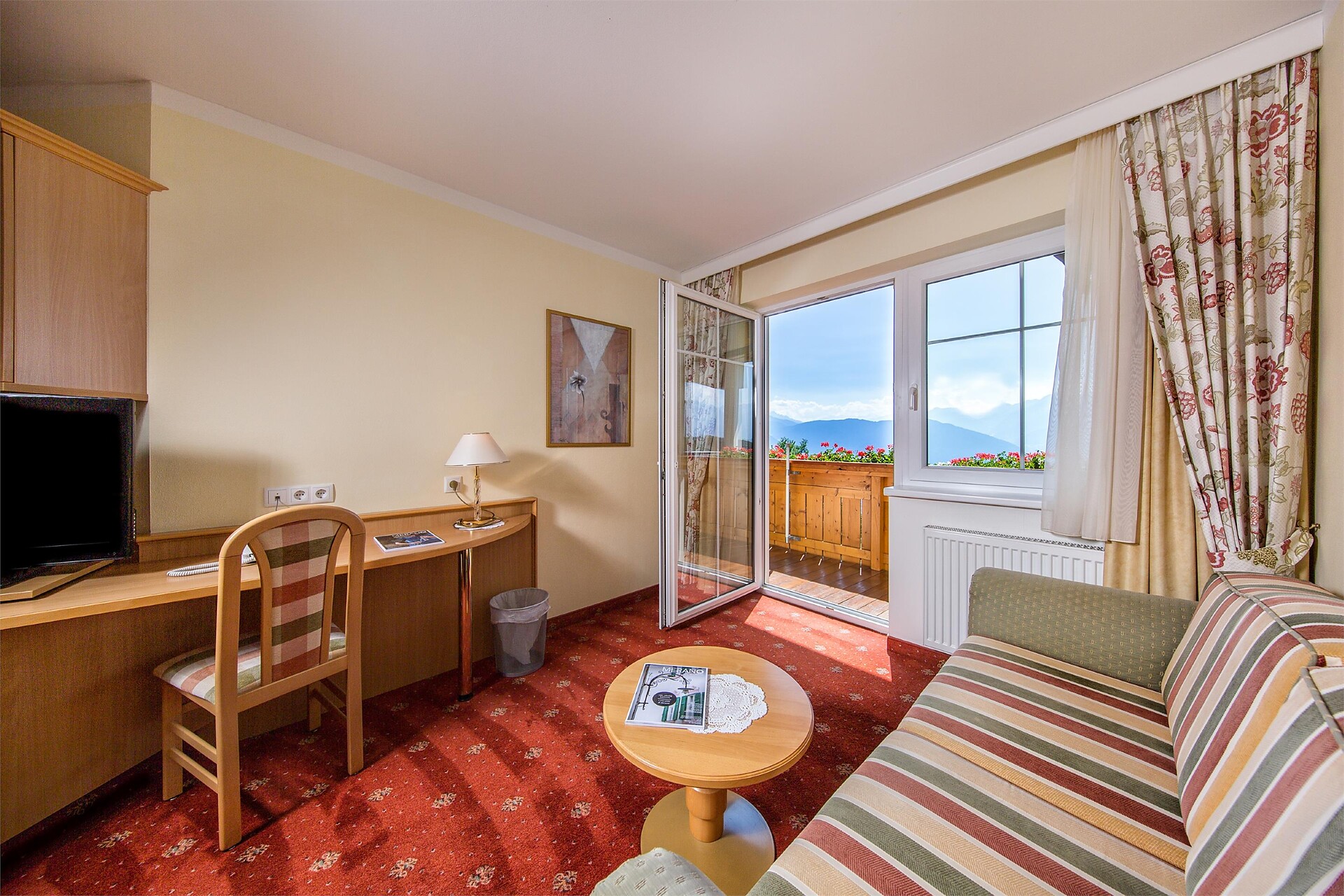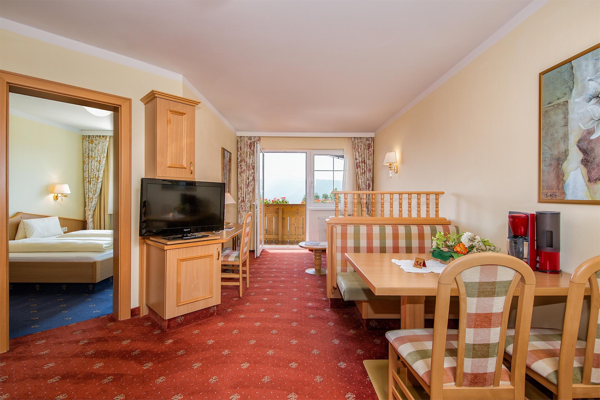 Double bed , Sofa bed, Double sofa bed, Balcony, Garden , Bed linen provided, Safe, Eat-in kitchen, Coffee machine, Mini-bar, Dishwasher, Electric cooker, Microwave, Cutlery provided, Water boiler, Shower/Bath tub, Separate WC, Bidet, Hair dryer, Bathrobe, Towels, TV, Satellite/Cable, WLAN, Cleaning upon request, Final cleaning included, Main building, Panoramic view, South view