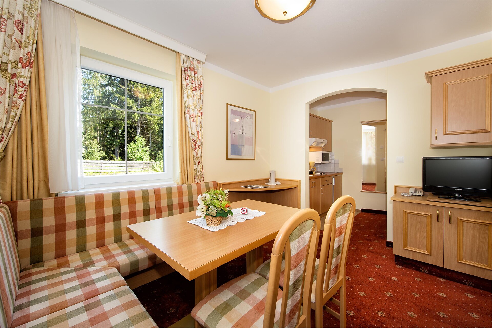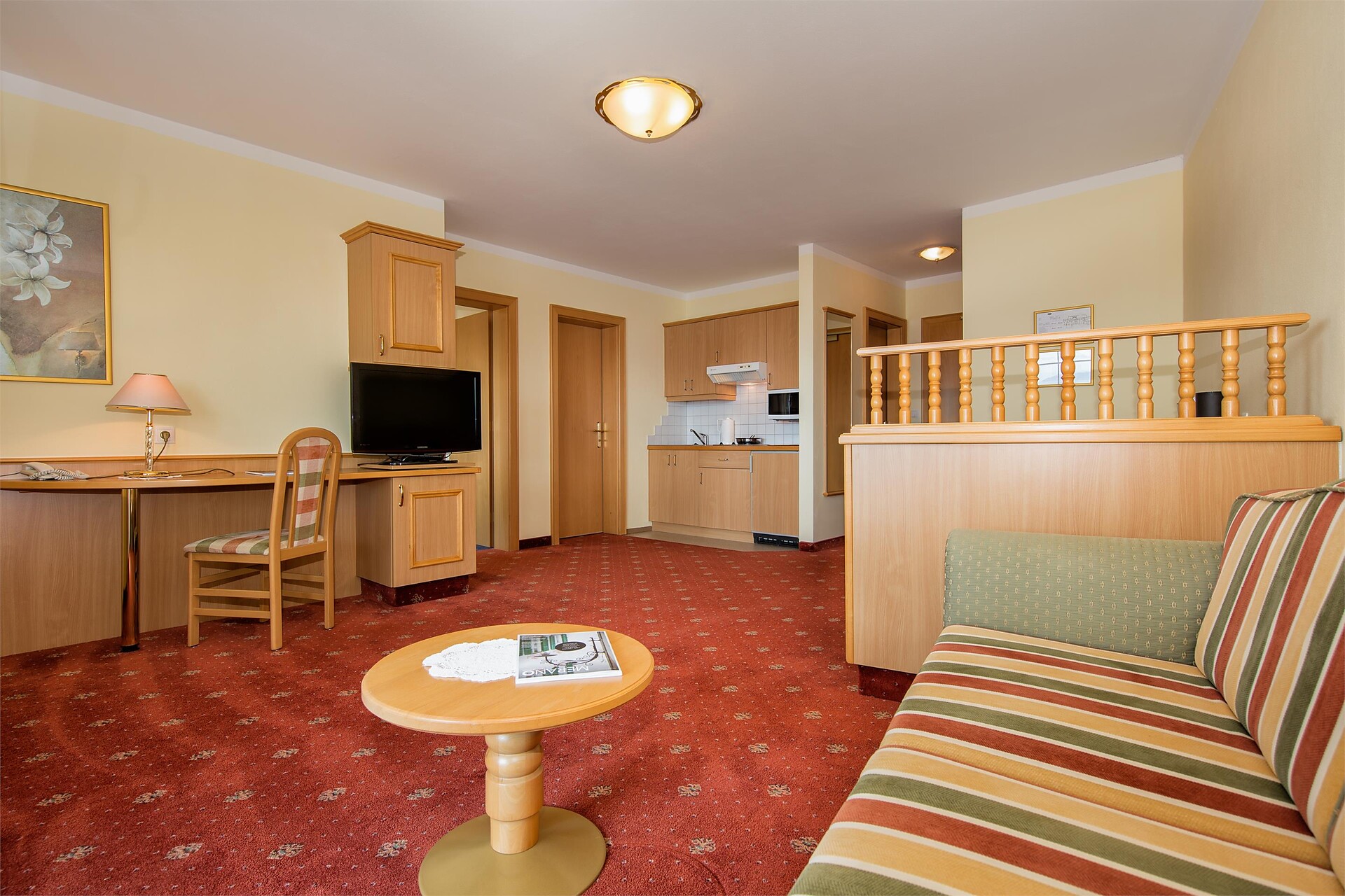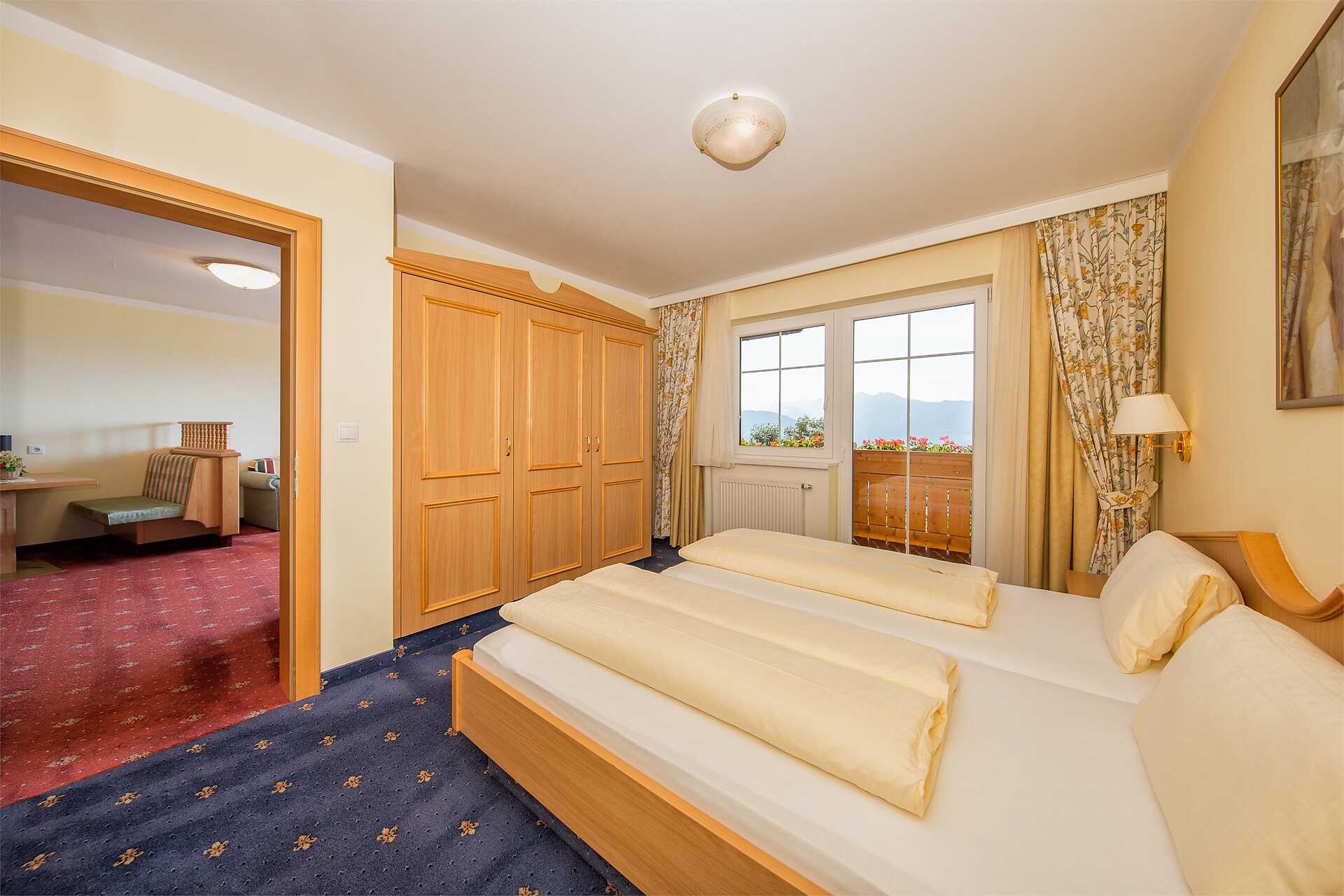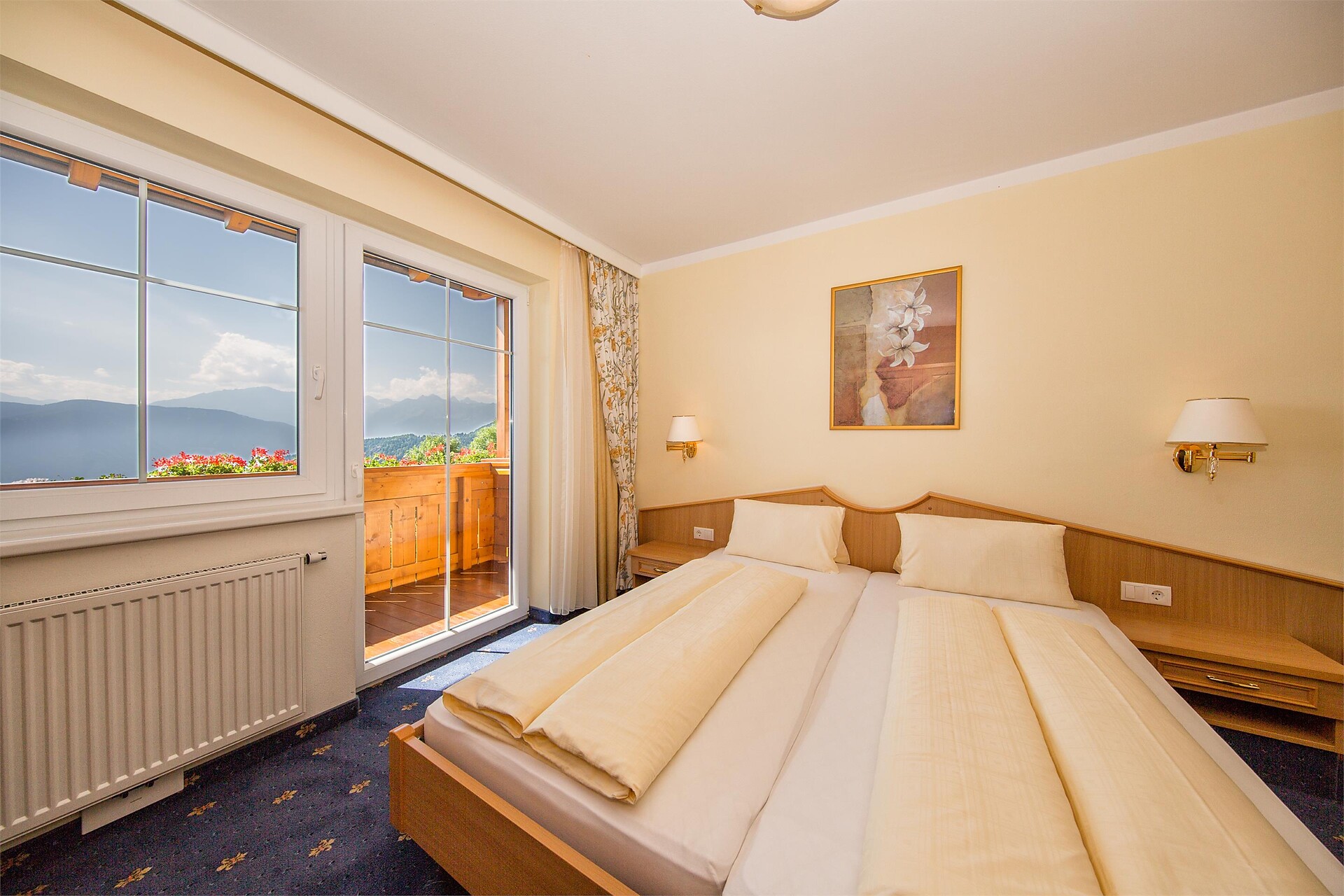 Double bed , Sofa bed, Double sofa bed, Balcony, Garden , Bed linen provided, Safe, Eat-in kitchen, Coffee machine, Mini-bar, Dishwasher, Electric cooker, Microwave, Cutlery provided, Water boiler, Shower/Bath tub, Separate WC, Bidet, Hair dryer, Bathrobe, Towels, TV, Satellite/Cable, WLAN, Cleaning upon request, Final cleaning included, Main building, Panoramic view, South view