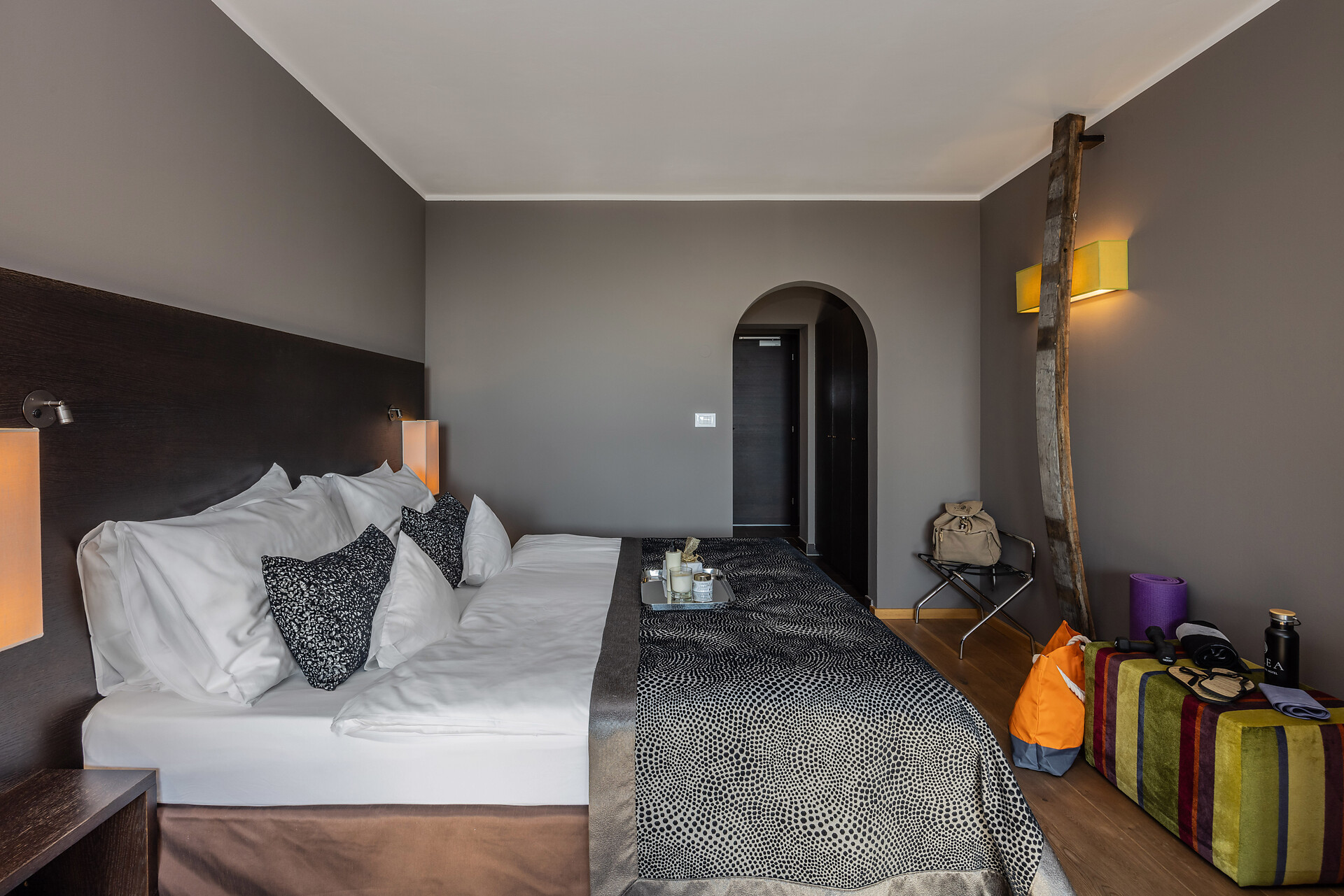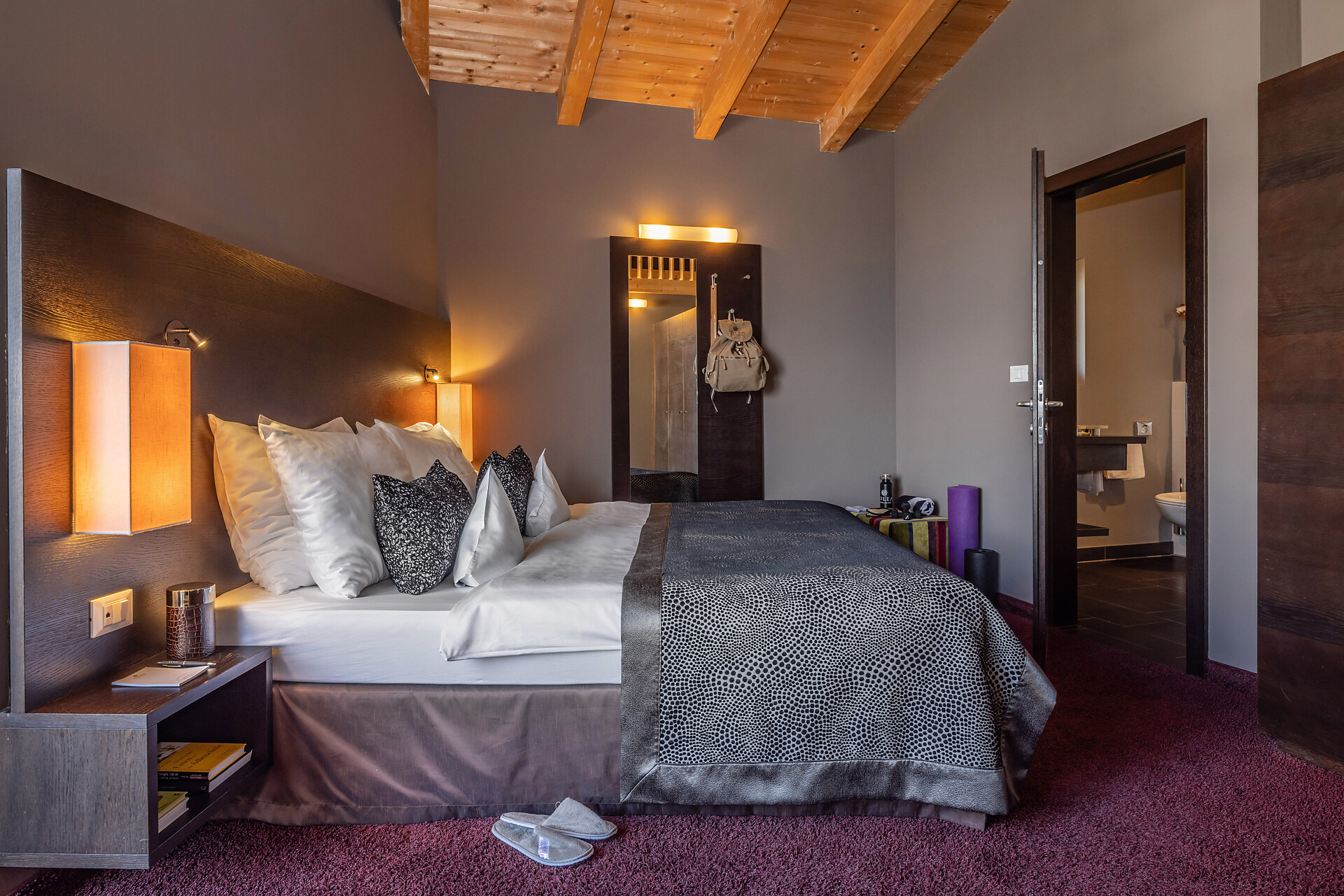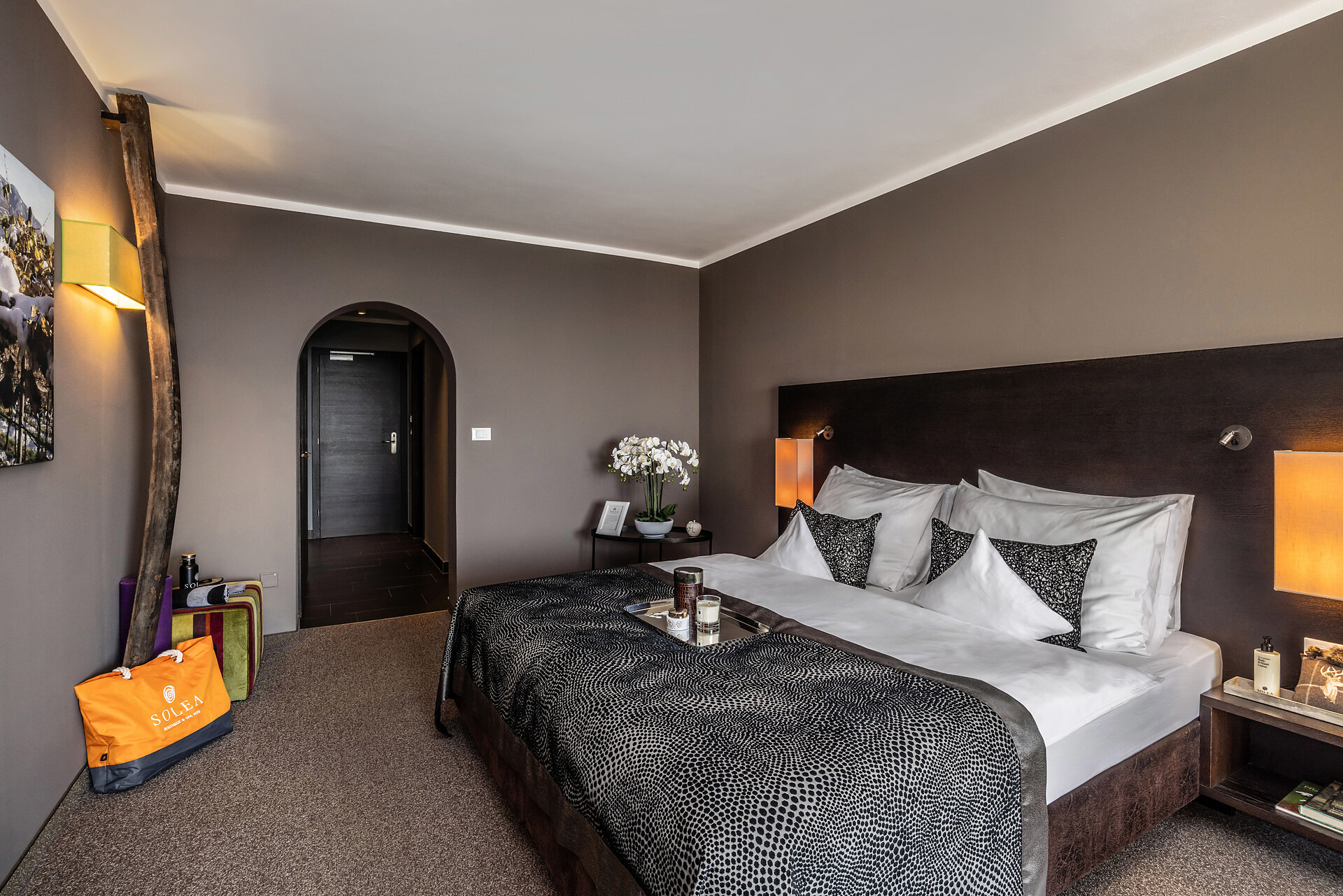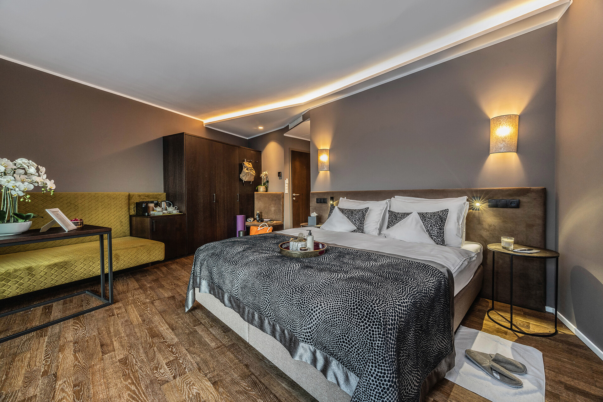 Double bed , Extra bed, Air conditioning, Anti-allergic room, Mini-bar, Safe, Tea/Coffee machine, Shower / Bath tub, Separate WC, Bidet, Hair dryer, Bathrobe, TV, Satellite/Cable, WLAN, Internet access