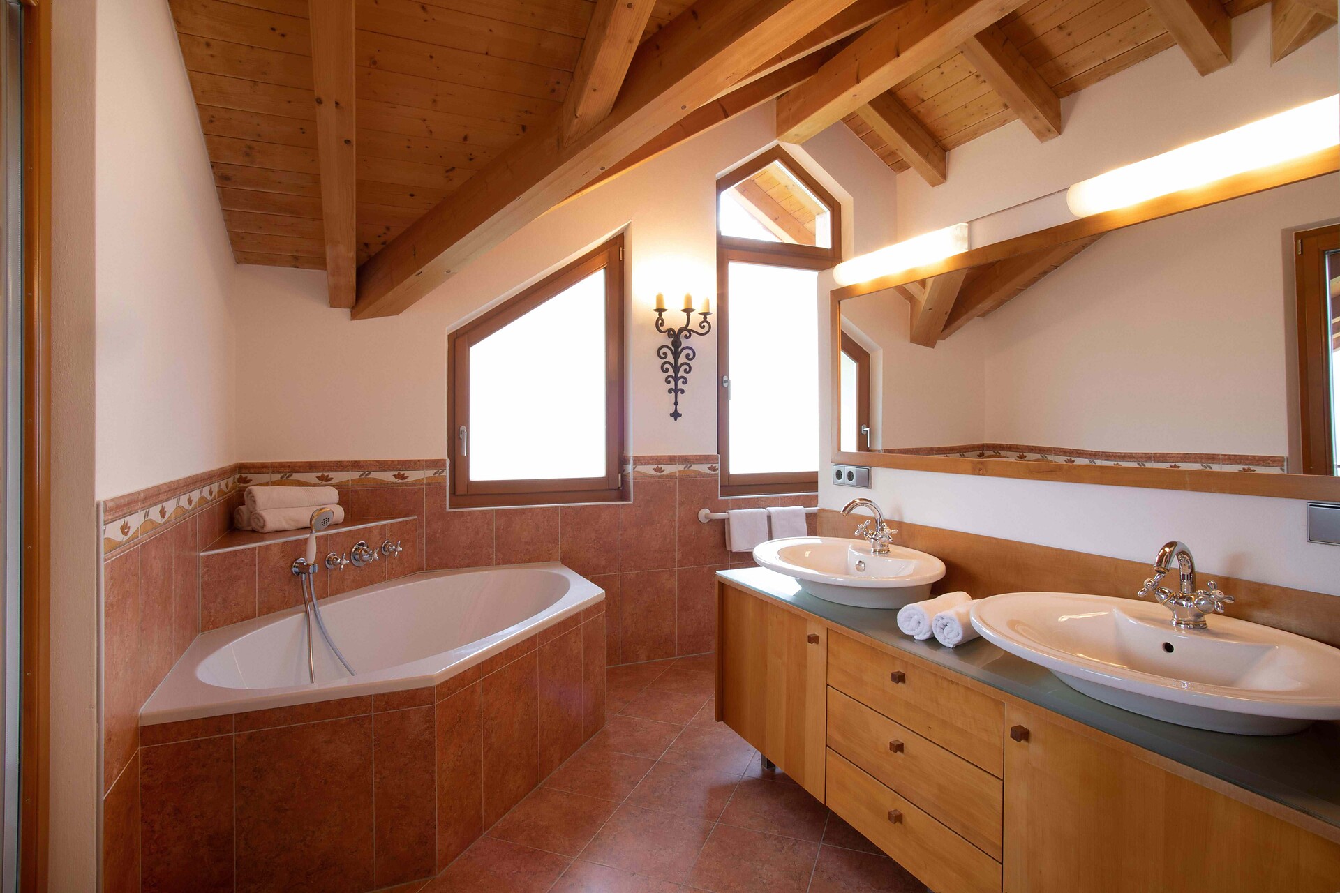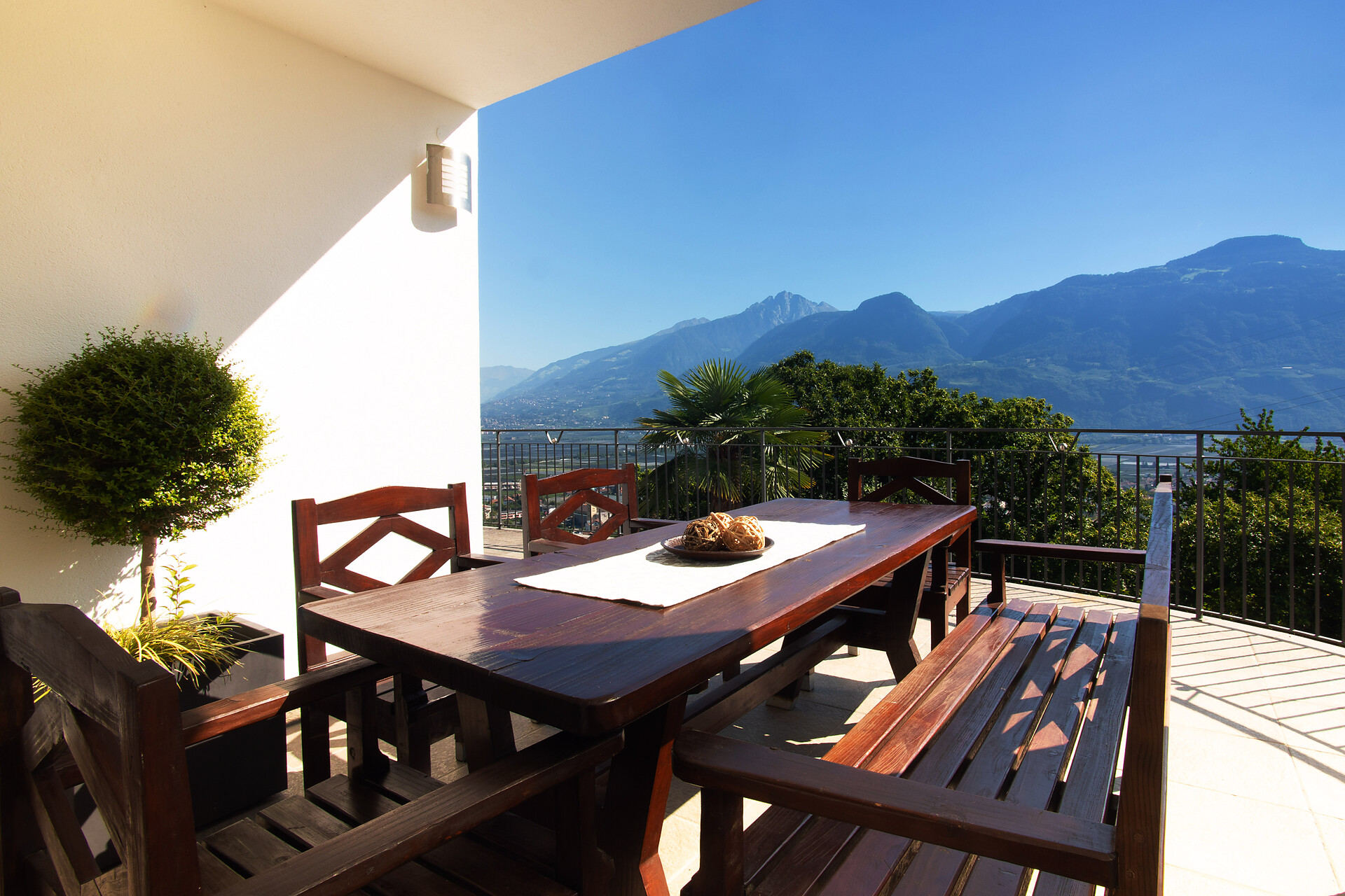 In the private whirlpool and on the three terraces, you can enjoy truly breathtaking views of Lana, Merano, and the entire surrounding mountain landscape.