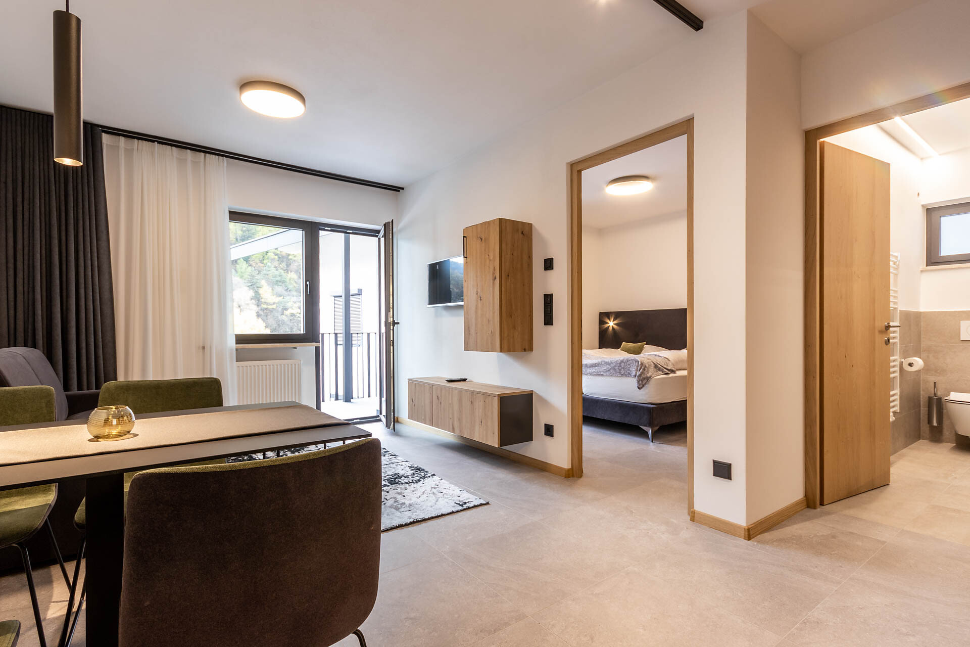 These two apartments no. 3 and no. 5 are located in Tel (Parcines). They are two-room apartments with a sunny balcony and terrace, satellite TV and WLAN.