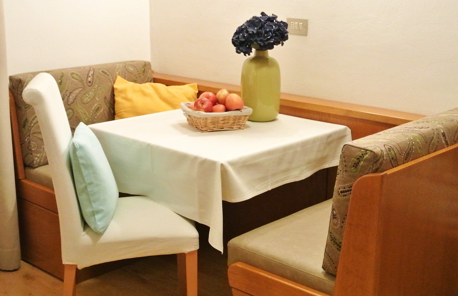 Apartment “Waldblick” with North-Facing Balcony Start your day in a relaxed and flexible way — do something good for yourself. Our well-kept, fully furnished apartments include a fully equipped kitchen with two hotplates, a filter coffee machine, moka pot, egg boiler, … and full linen supply (children’s equipment also available), as well as Wi-Fi, satellite TV, a safe, and a hairdryer. A toaster, small oven, and microwave are available to borrow. Everything is designed to make you feel at home. On the balcony you can enjoy a leisurely breakfast and unwind, or you can relax comfortably in our garden.