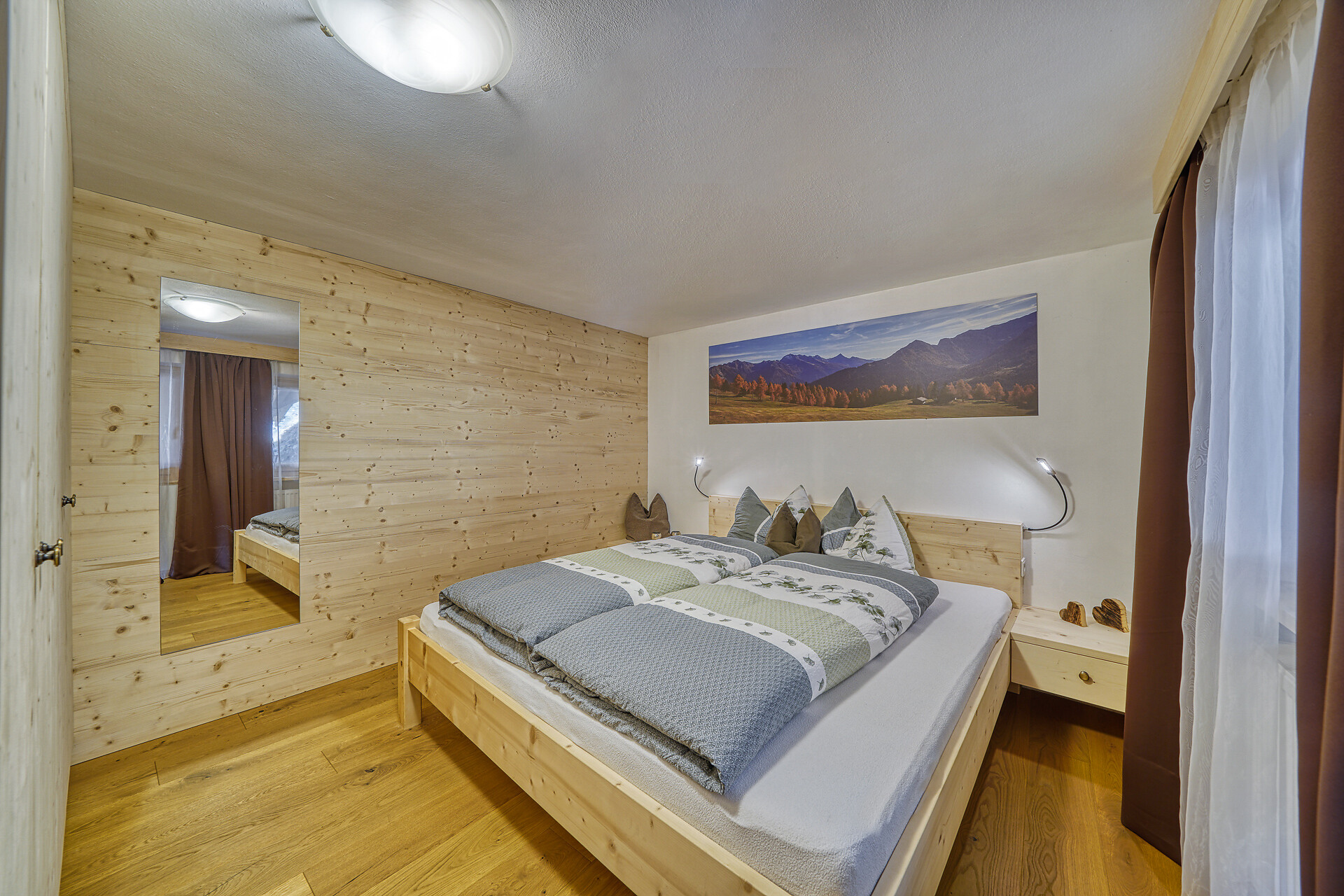 The apartment "Wasserfall" has an own entrance with a wardrobe. Here is also a comfortable terrace with a table and benches. The apartment is composed of the living area with kitchenette and a two big double rooms and a shower/toilet. The living area is made with a lot of wood and the kitchenette is completely equipped (coffee maker and kettle available). There are a cosy sitting area with a dining table, a pull-out couch, TV with satellite connection and a south facing balcony with deck chairs.