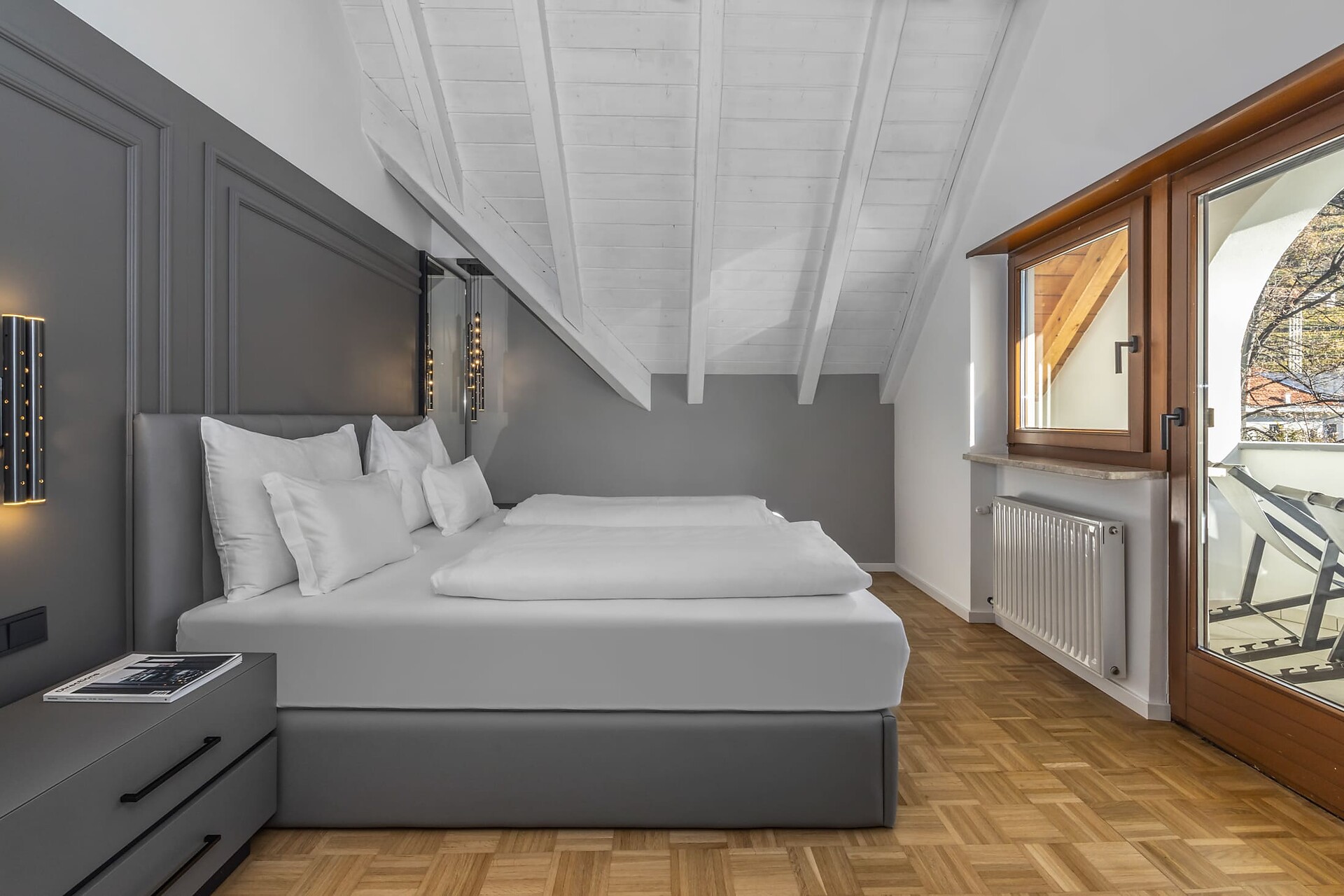 Bedroom with high-quality sleeping comfort, safe, private south-facing balcony
