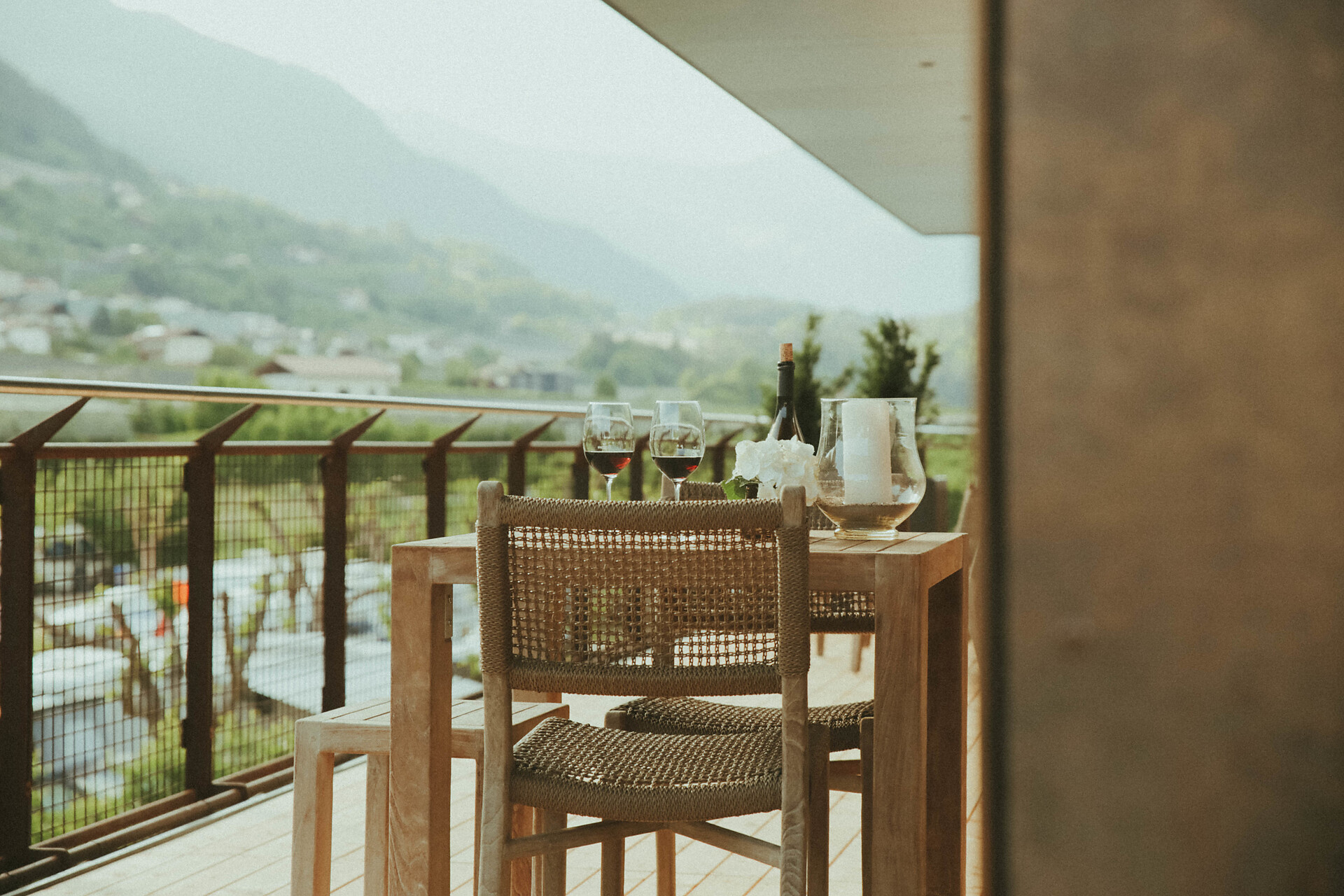 Our new Solterra Poolhouses feature a modern and sleek design, top-quality materials like wood and glass, and comfortable furnishings. Positioned in an elevated location, they offer both privacy and breathtaking views of our pools and sun-kissed lawn, of the picturesque village of Tesimo, of the surrounding mountains up to the peaks of the Texel Group. Our Chalets Solterra stand for quality and lightness and offer a Mediterranean holiday experience right in the middle of South Tyrol’s stunning mountains.