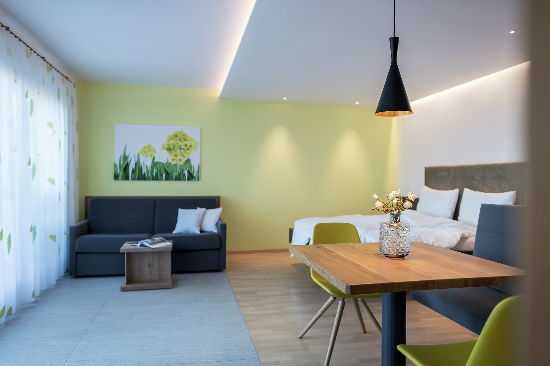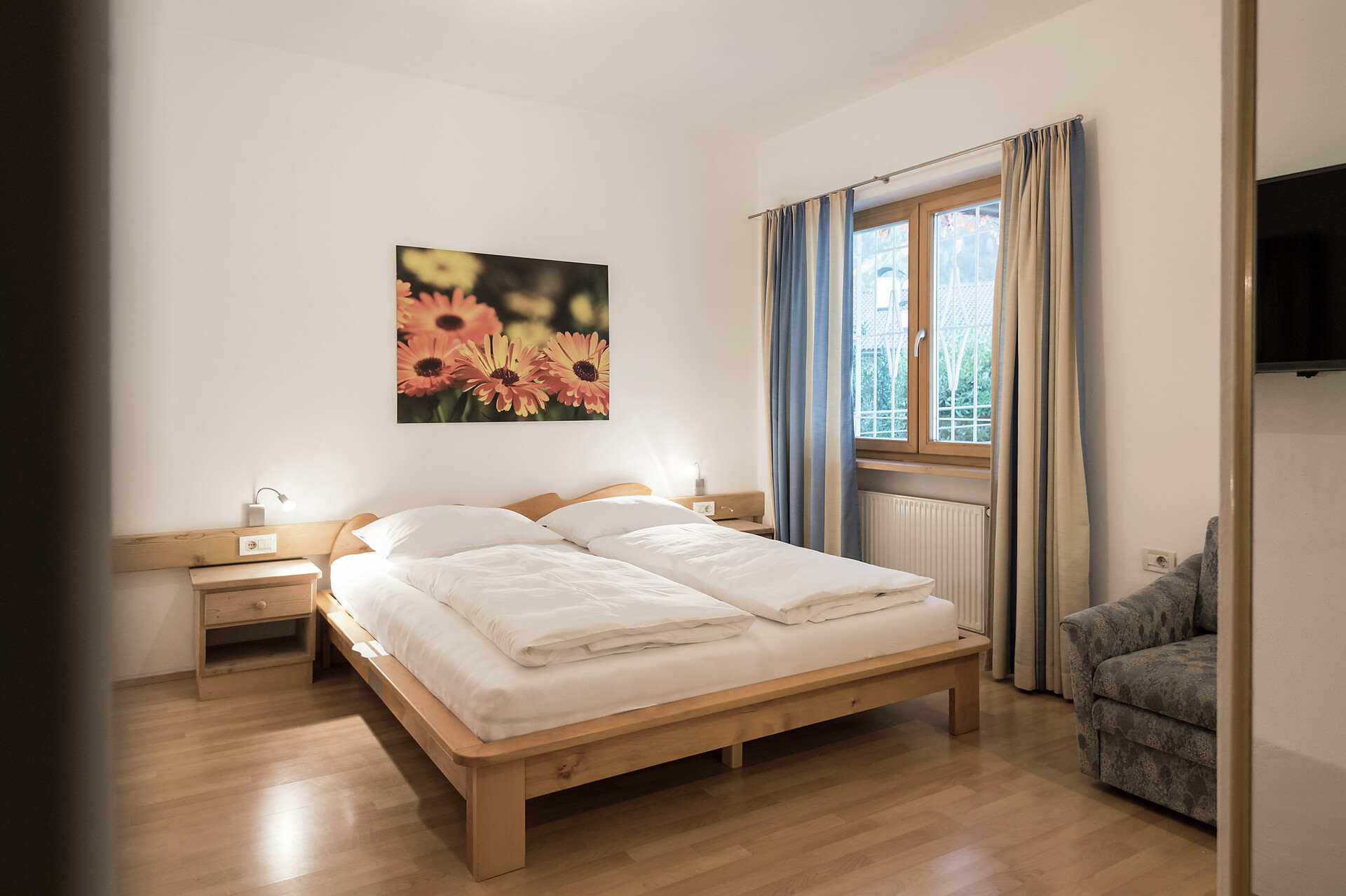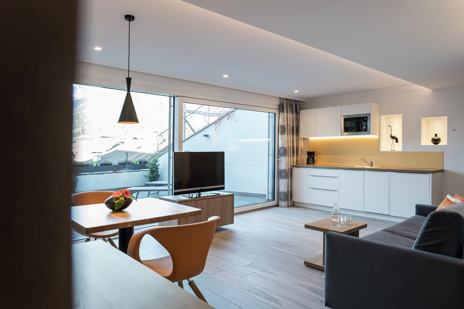 The apartement Primula is 42 qm big, in the second floor, reachable with elevator, the bed- an livingroom is in one, bath and a separate nice kitchenette with an equipment to cook. The terrace has 16,5 qm. For your car we have a garage.