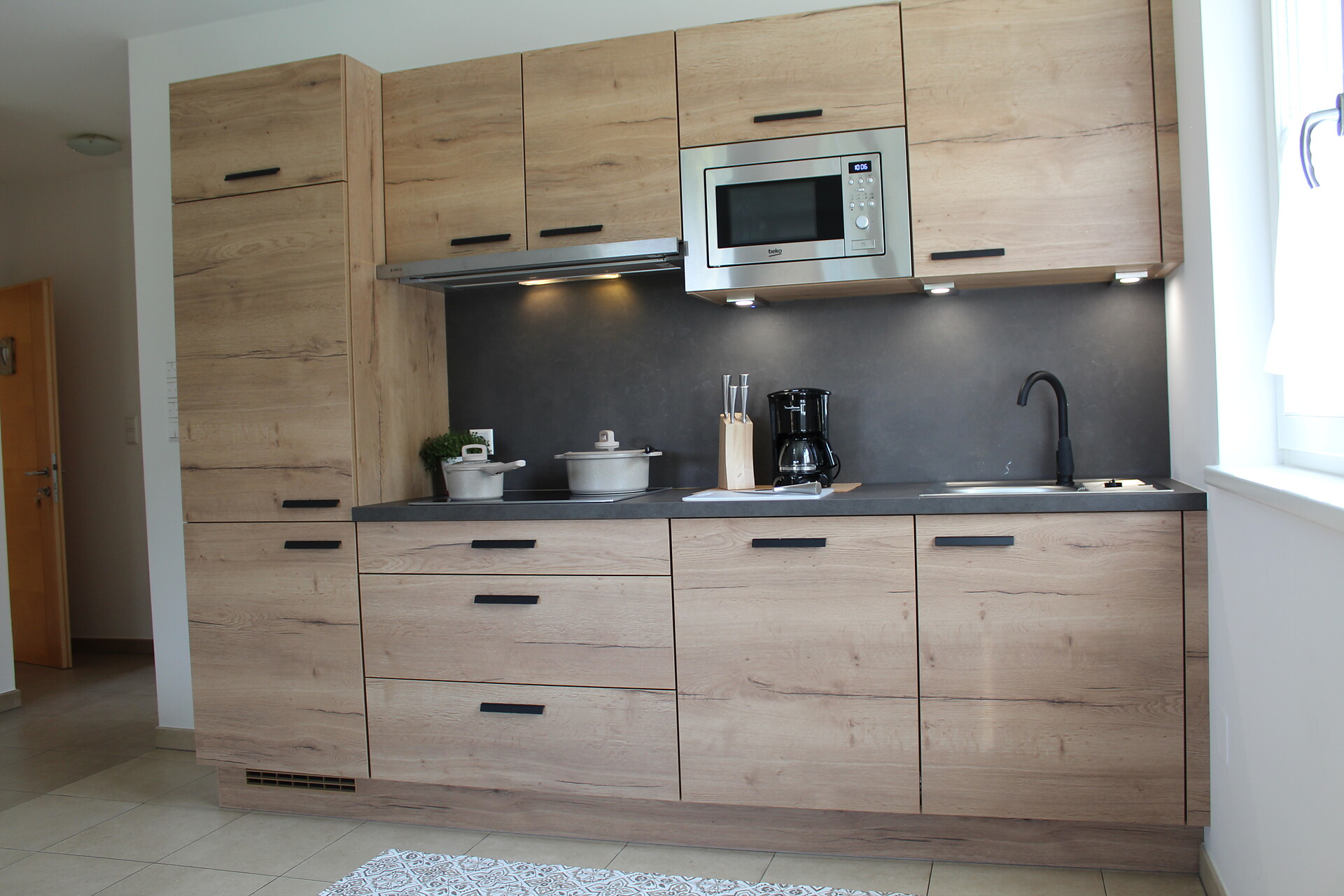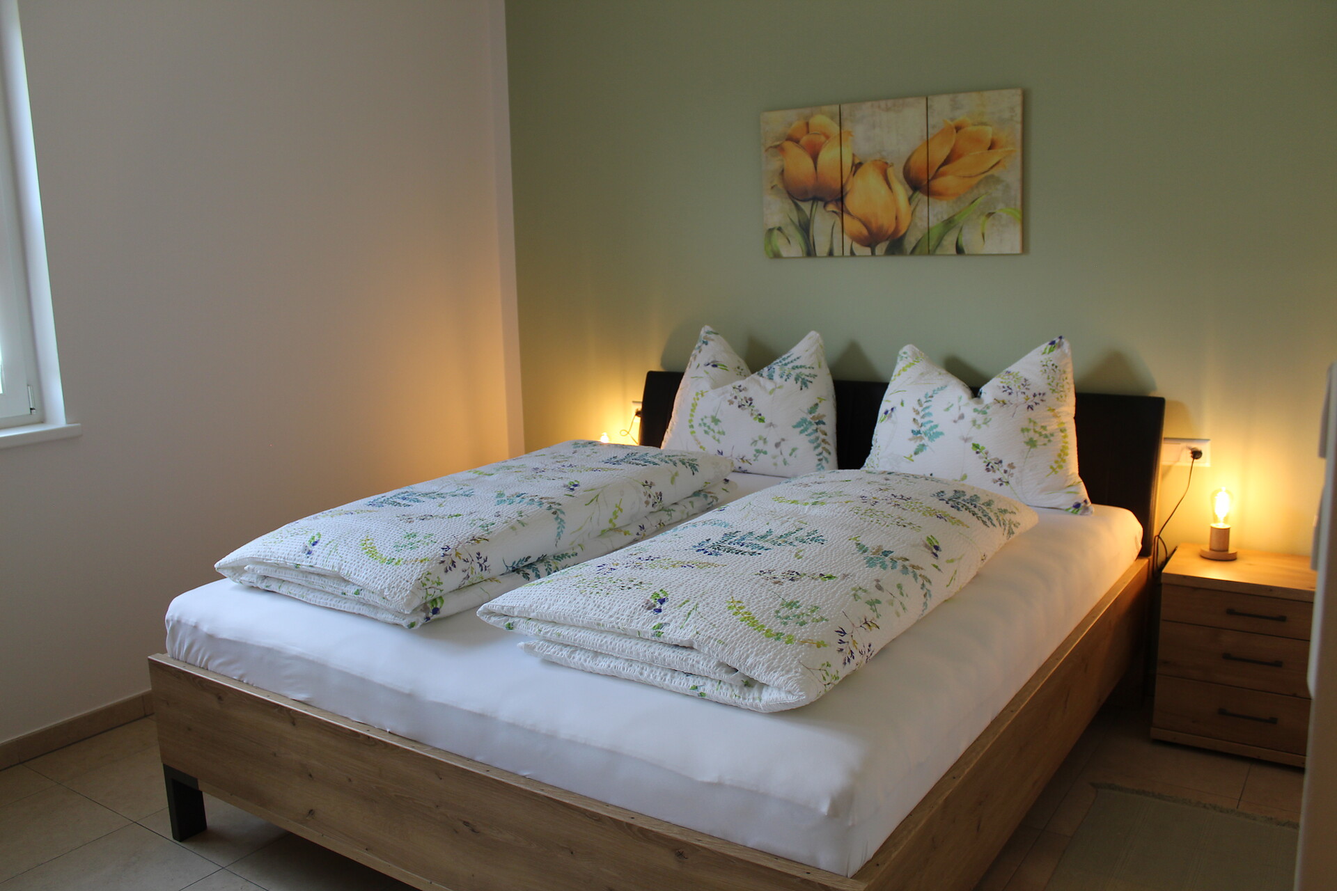 Double bed , Cot, Double sofa bed, Terrace, Garden , Anti-allergic room, Bed linen provided, Non-smoking apartment, Located on the ground floor, Eat-in kitchen, Coffee machine, Dishwasher, Microwave, Cutlery provided, Hob, Water boiler, Shower/Bath tub, Bidet, Hair dryer, Towels, TV, Satellite/Cable, WLAN, Cleaning upon request, Final cleaning included, Main building, Panoramic view