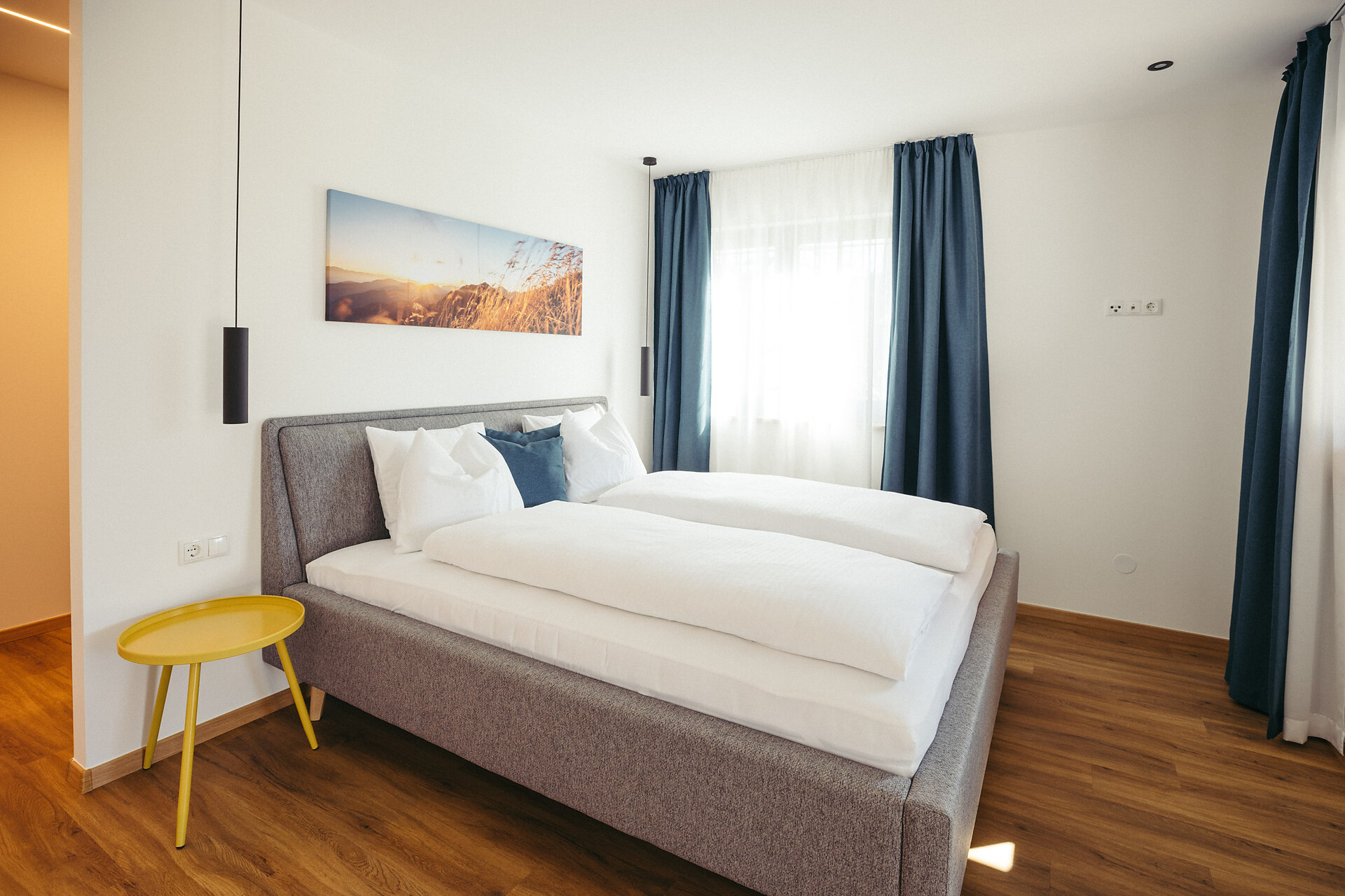 New apartment with dream view, in a quiet location, yet centrally located. 95m² divided into spacious living room with kitchen, 2 separate bedrooms, sofa bed in the living room, bathroom and separate day toilet. Terrace and garden. Own parking space.